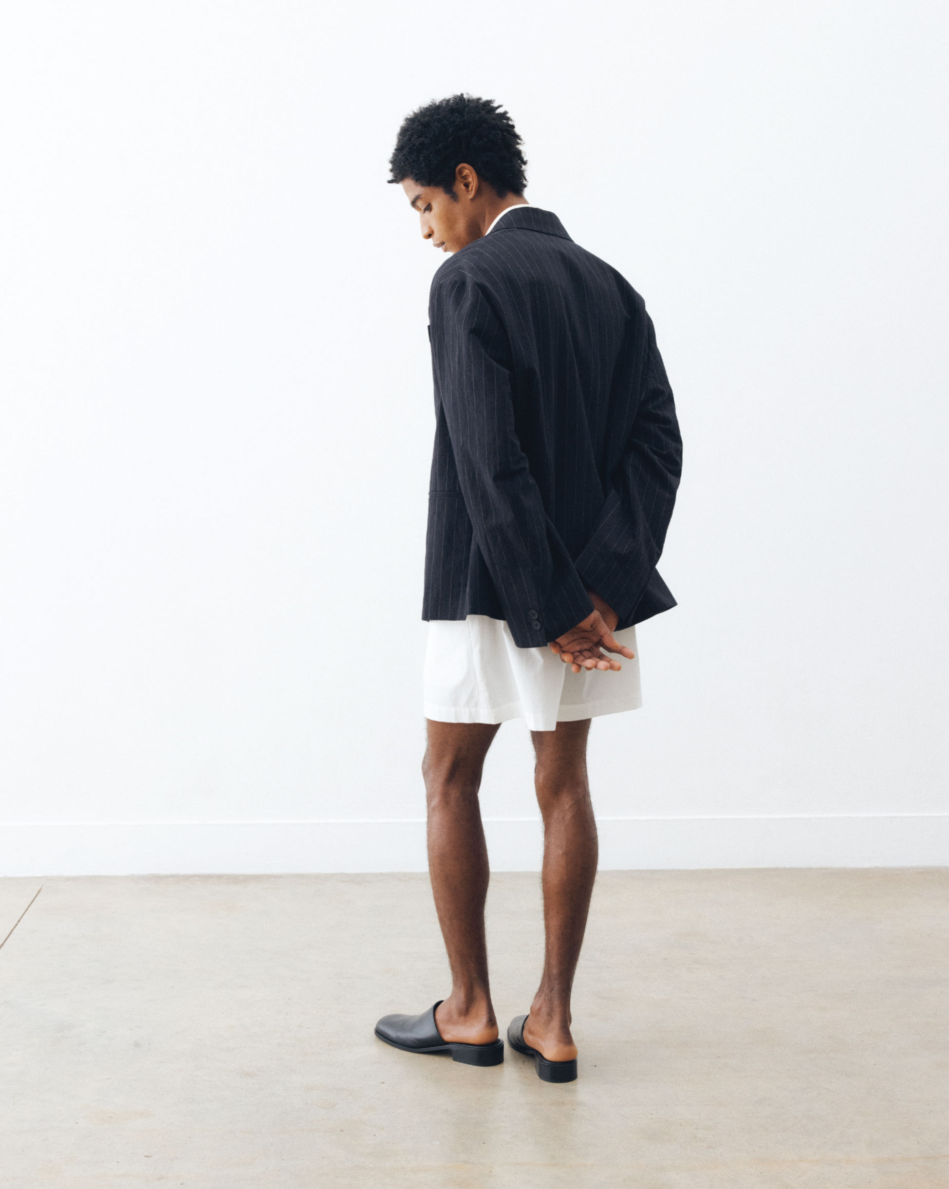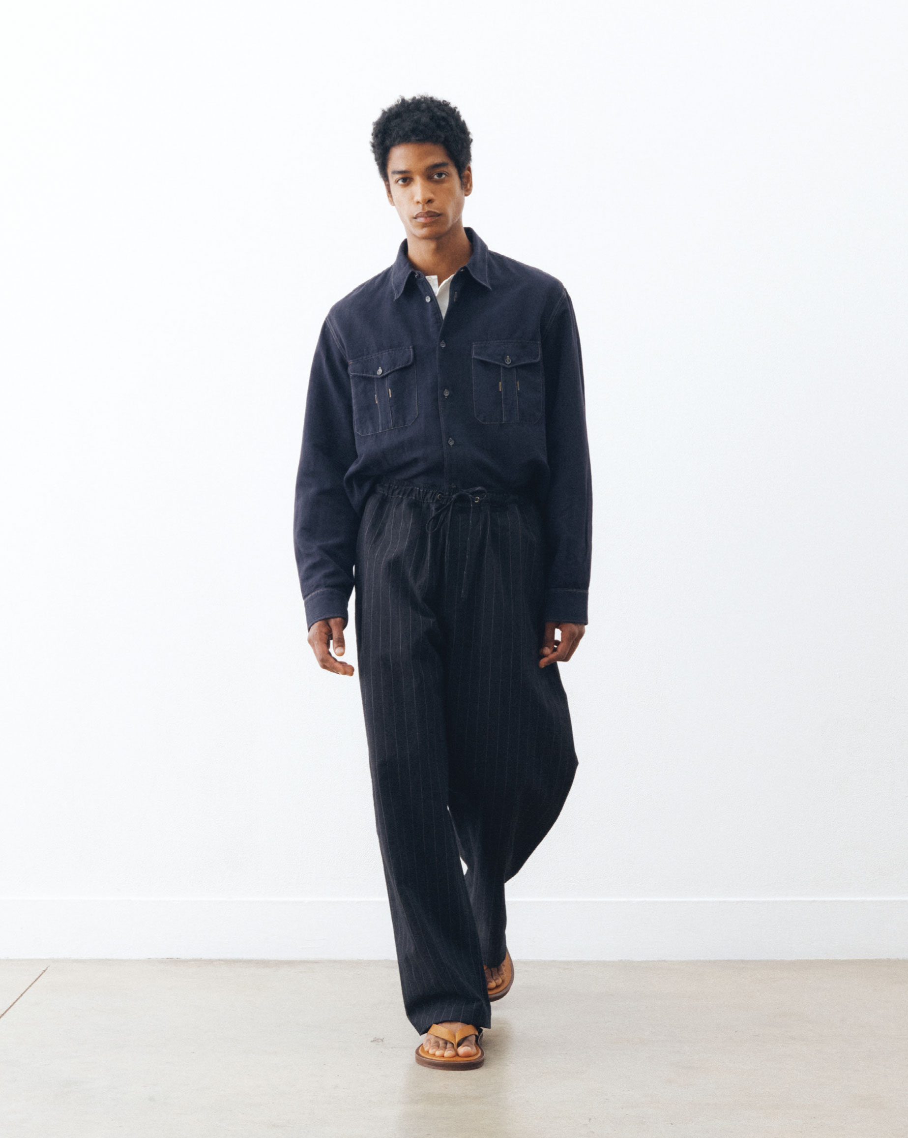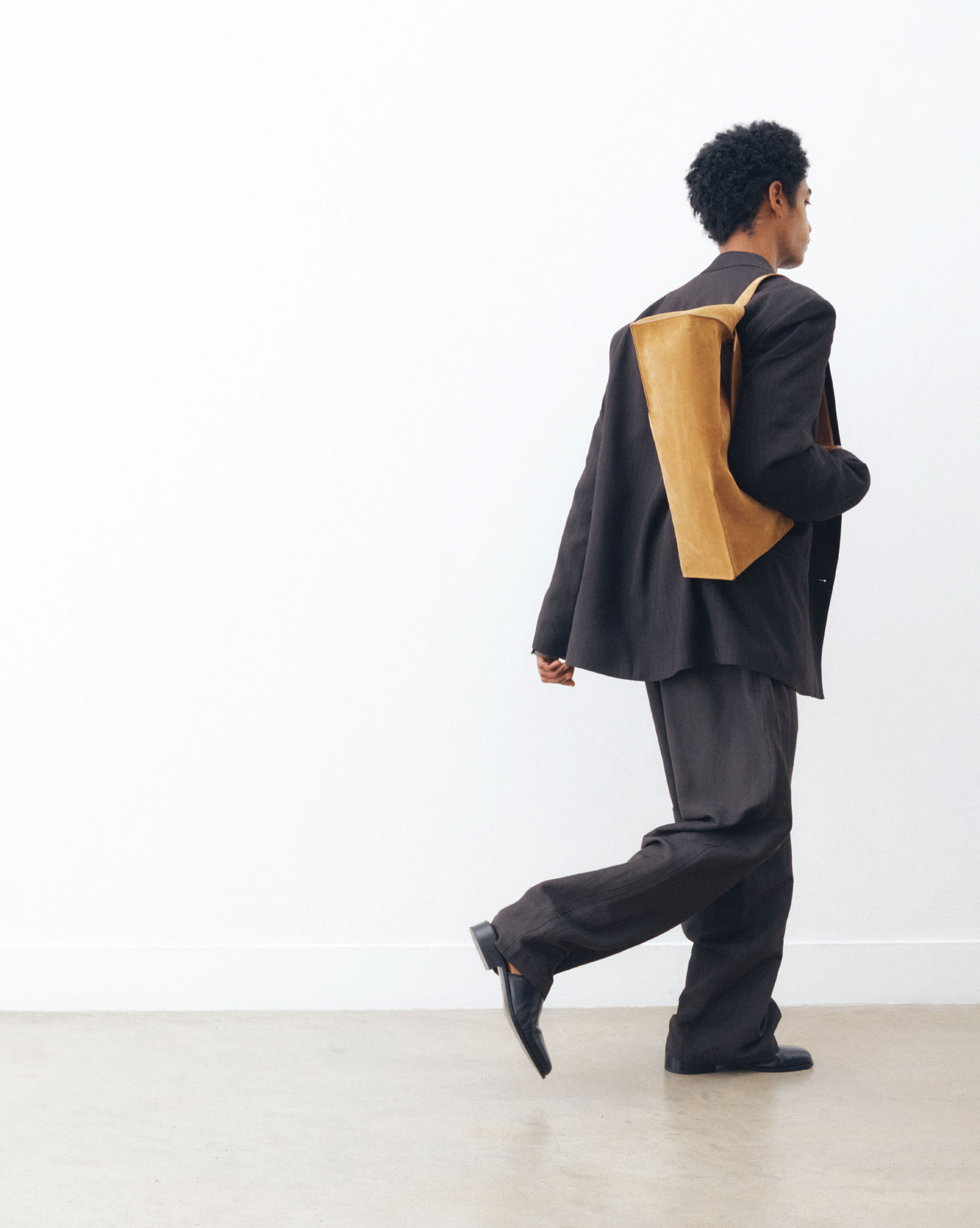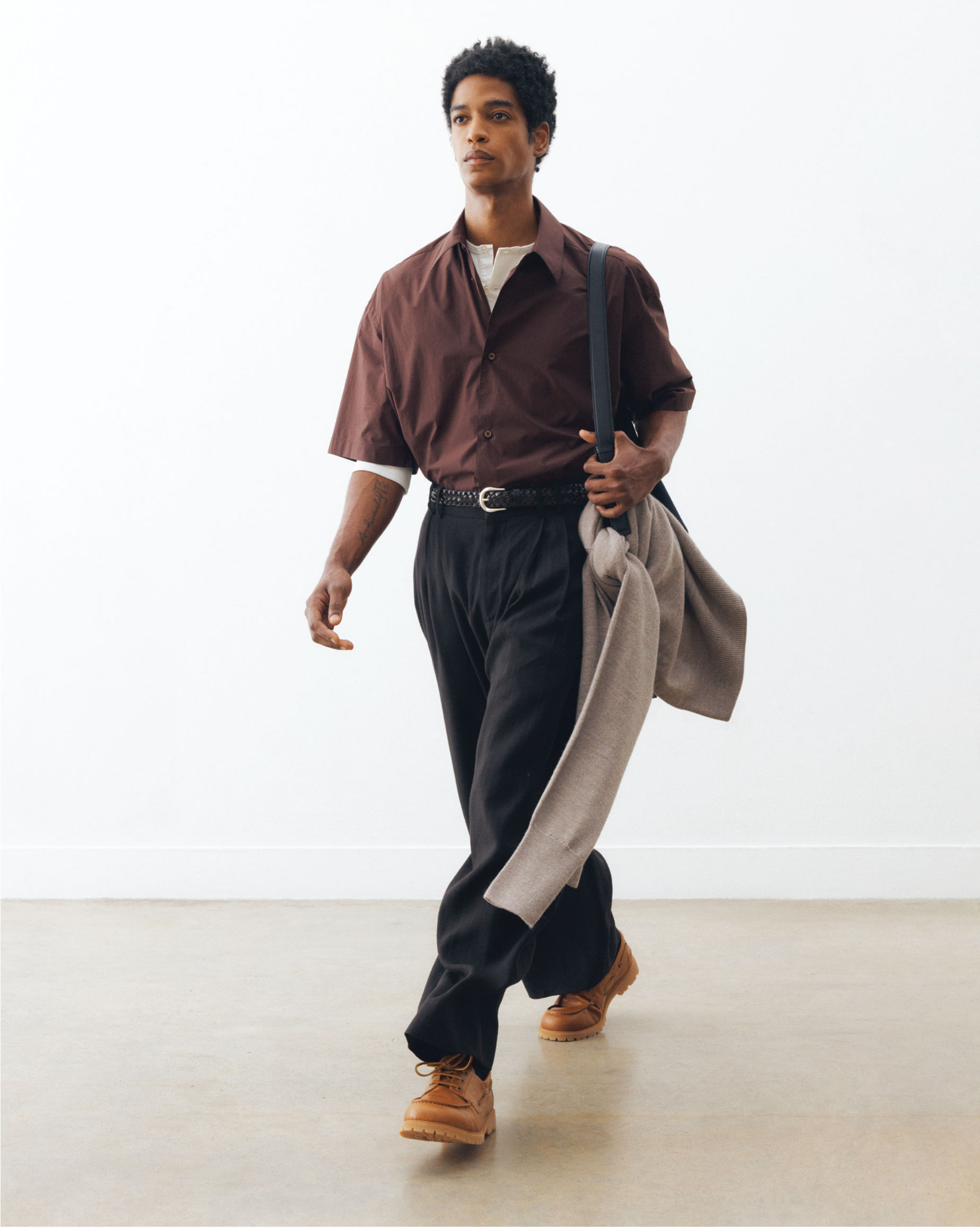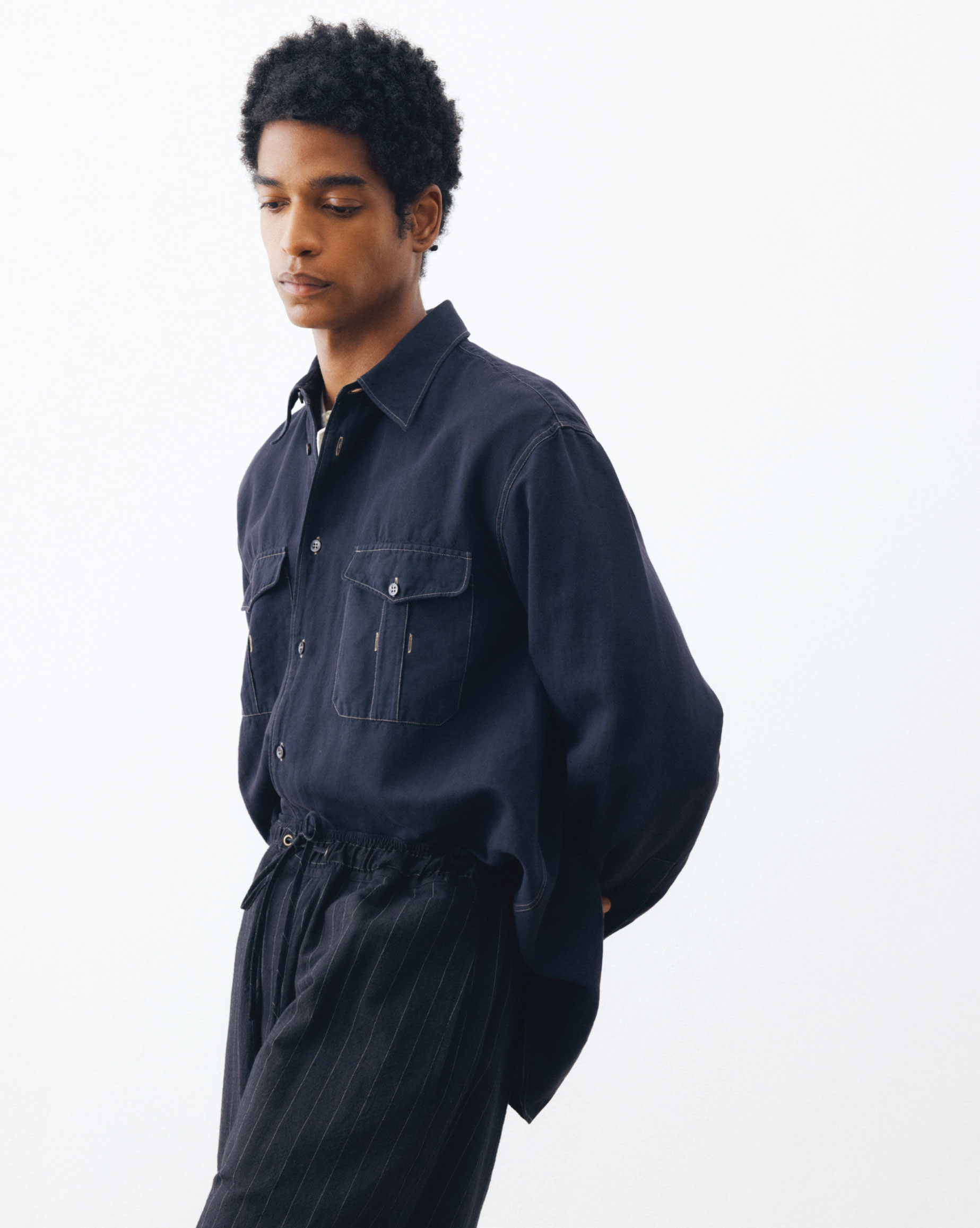 ボーイッシュだけにとどまらぬようジャストフィットサイズ、オーバーサイズどちらにでも、女性本来の体型をベースにだらしなくならないように構築し直されている。ネックラインのバランス、アームホールは細やかにモダンなシルエットへデザインし直され、パンツもウエスト、ヒップともにシルエットをリ・メイドし決してスキニーになりすぎない微妙なゆとりを意識してデザイン。
