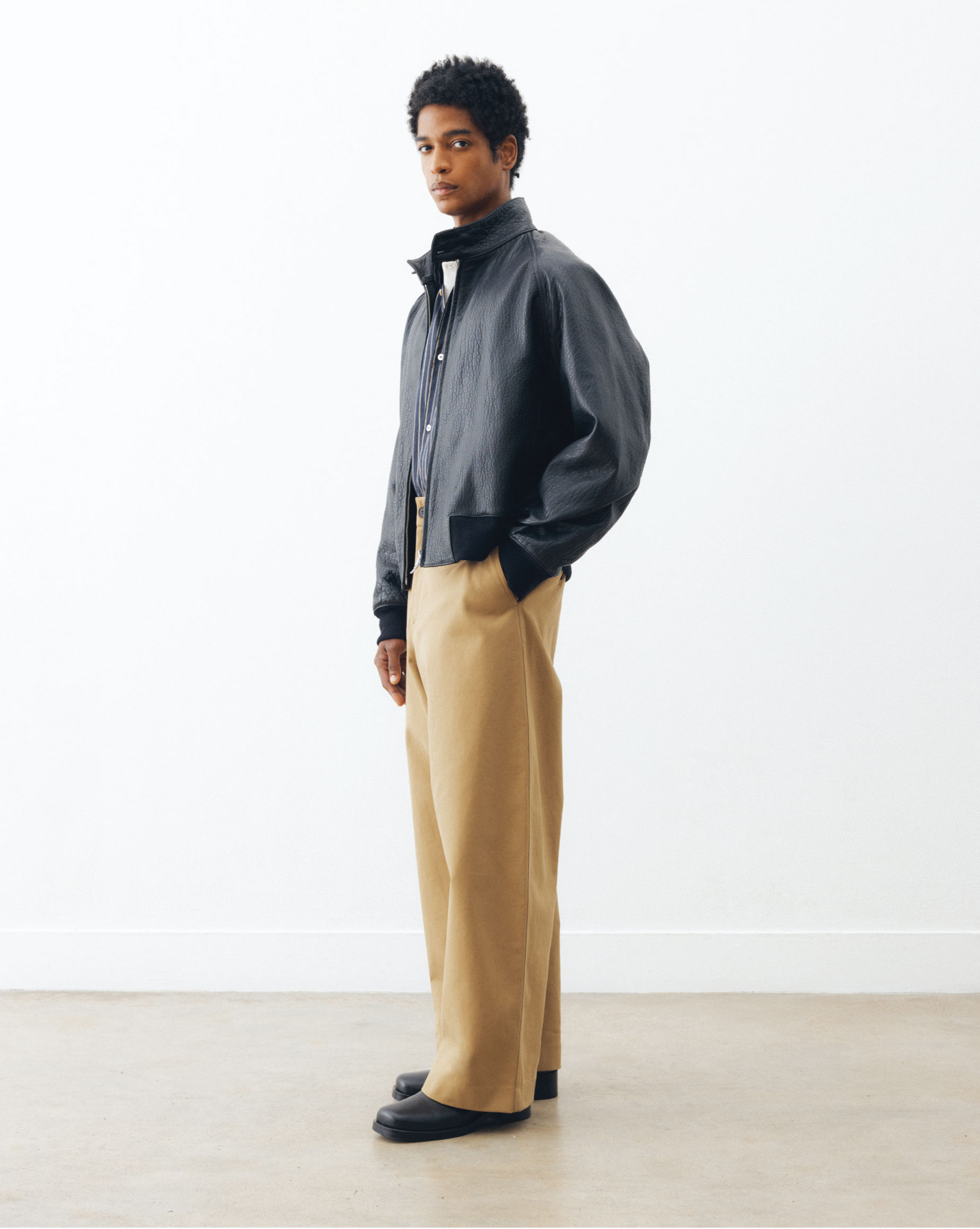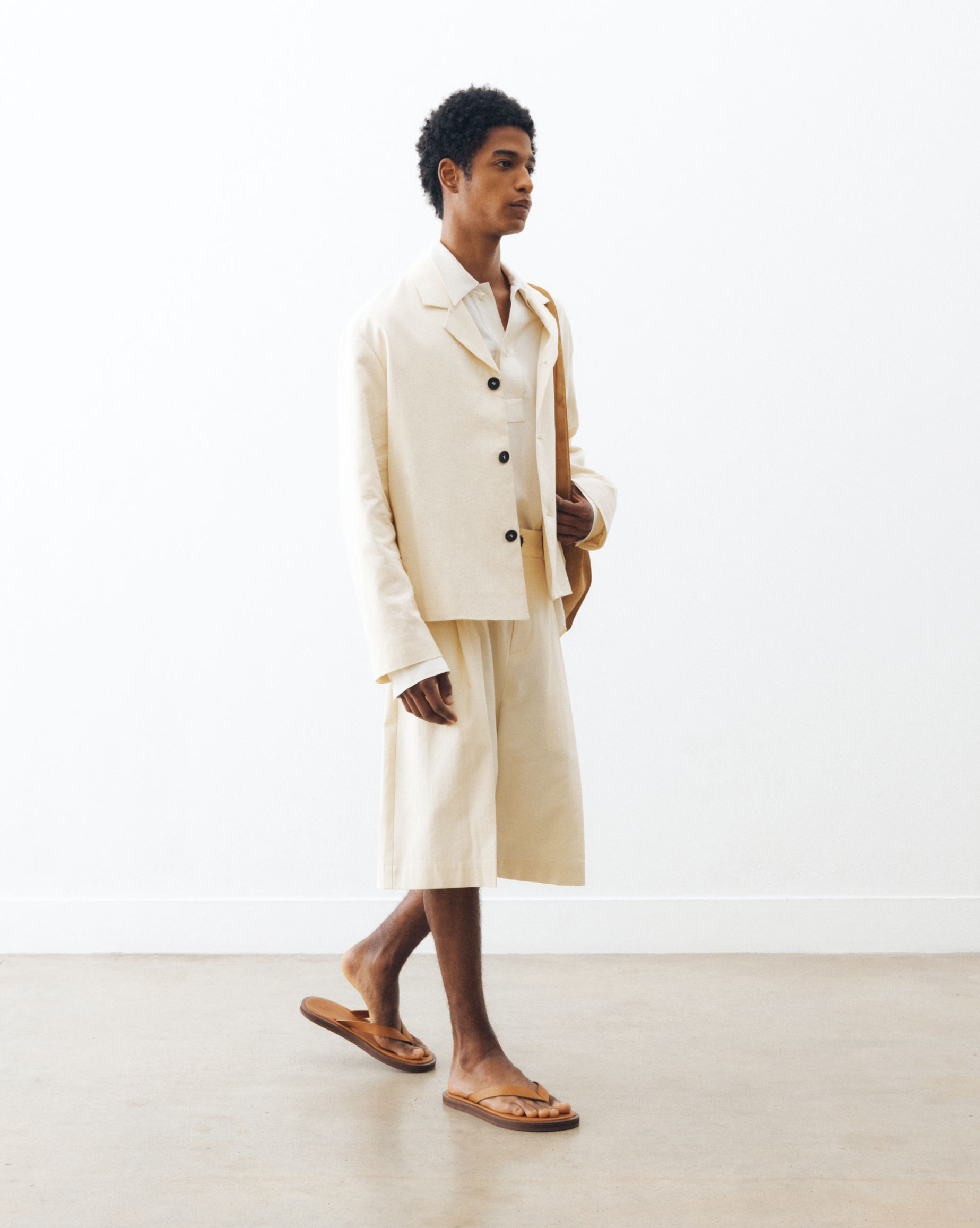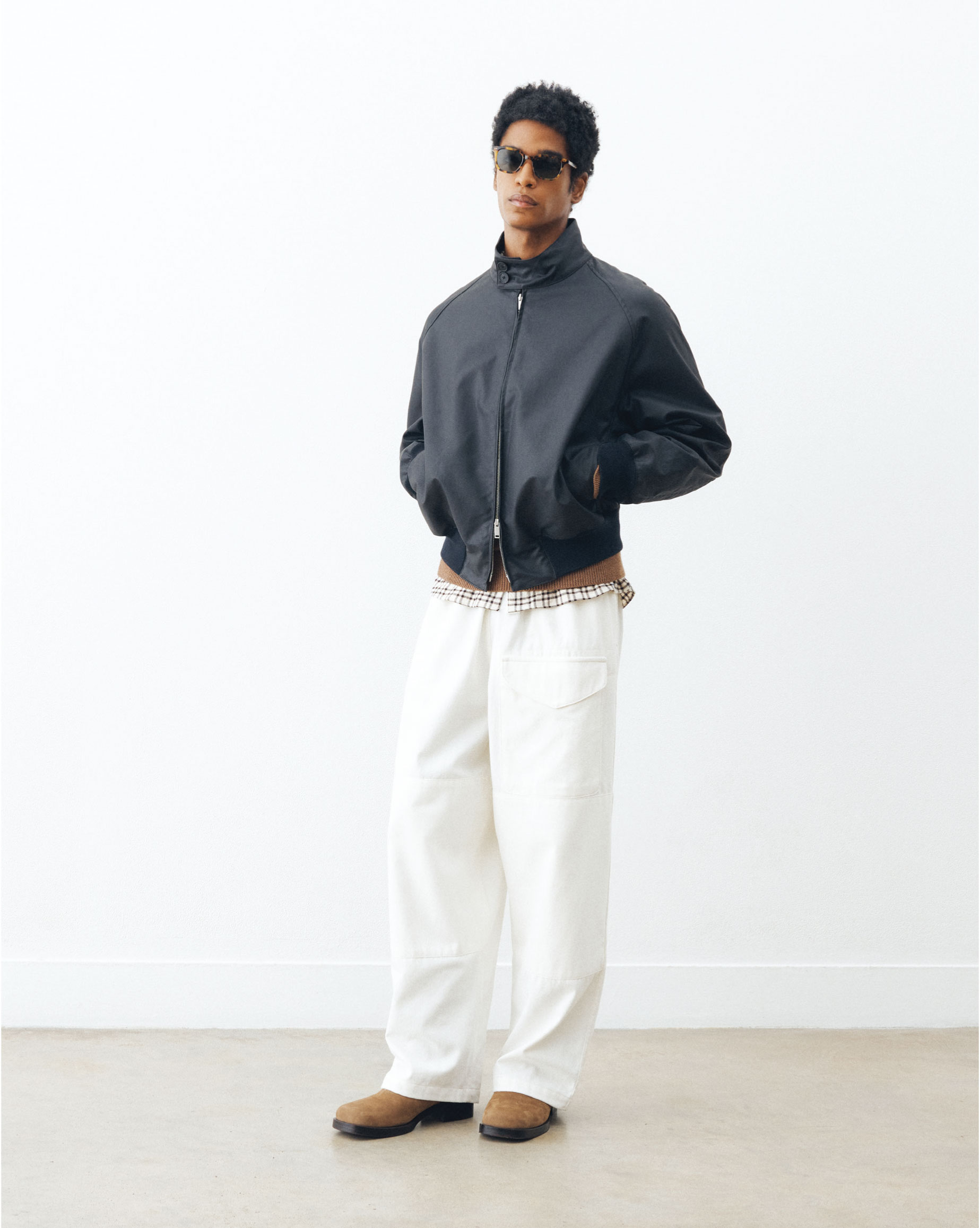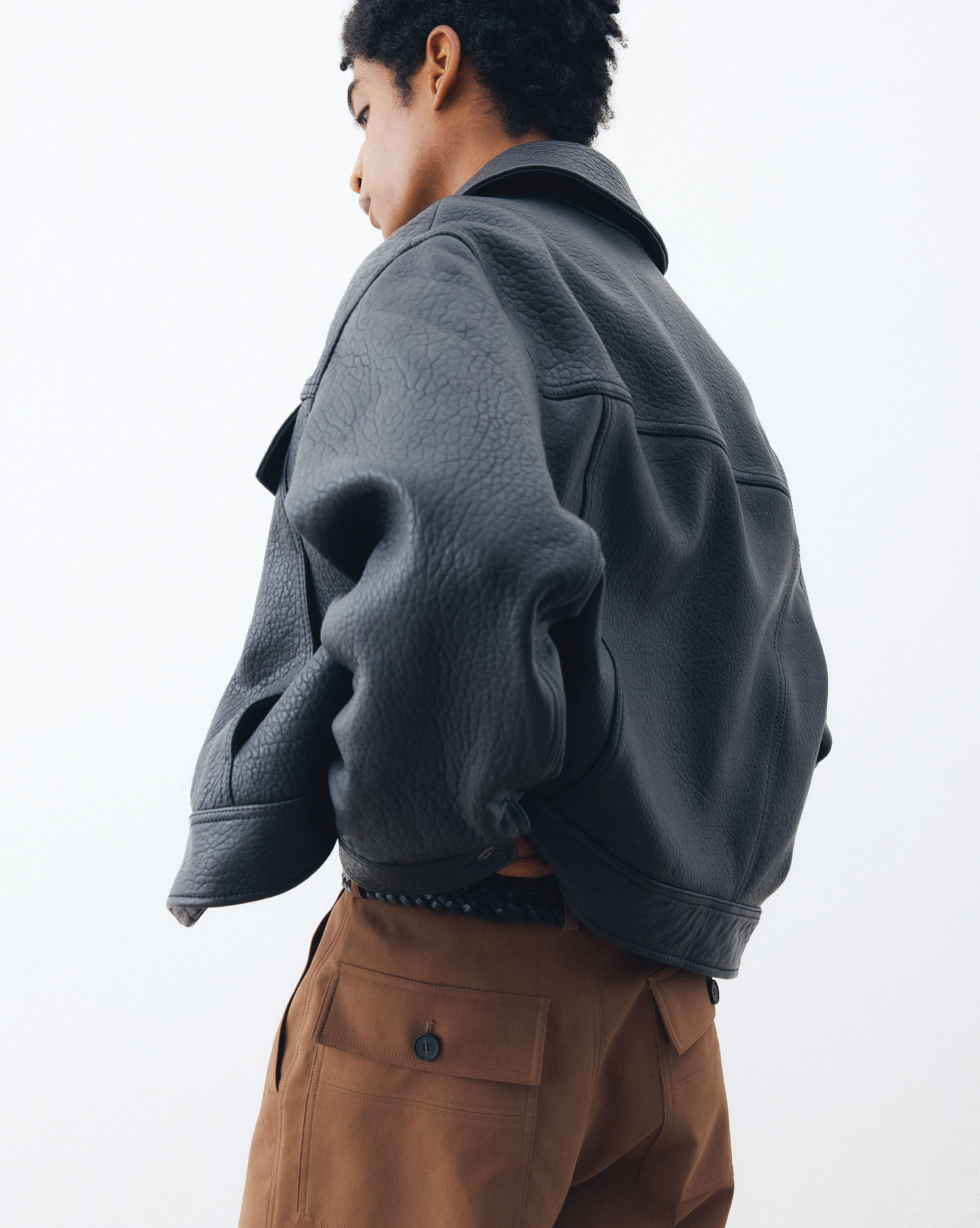 ボーイッシュだけにとどまらぬようジャストフィットサイズ、オーバーサイズどちらにでも、女性本来の体型をベースにだらしなくならないように構築し直されている。ネックラインのバランス、アームホールは細やかにモダンなシルエットへデザインし直され、パンツもウエスト、ヒップともにシルエットをリ・メイドし決してスキニーになりすぎない微妙なゆとりを意識してデザイン。