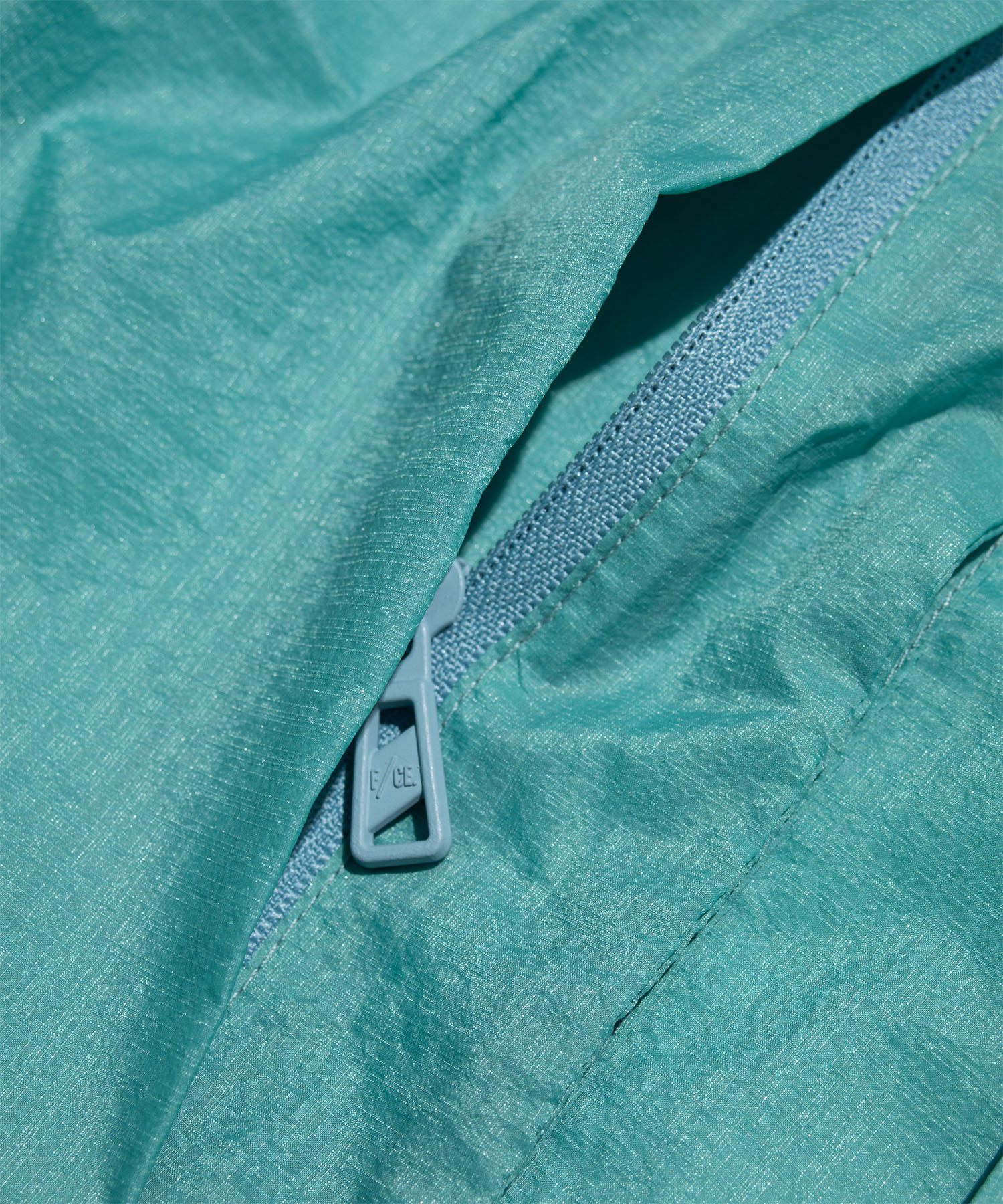 今季は、15Dの極細ナイロンウーリー糸を用いたチェック柄リップストップ素材を採用