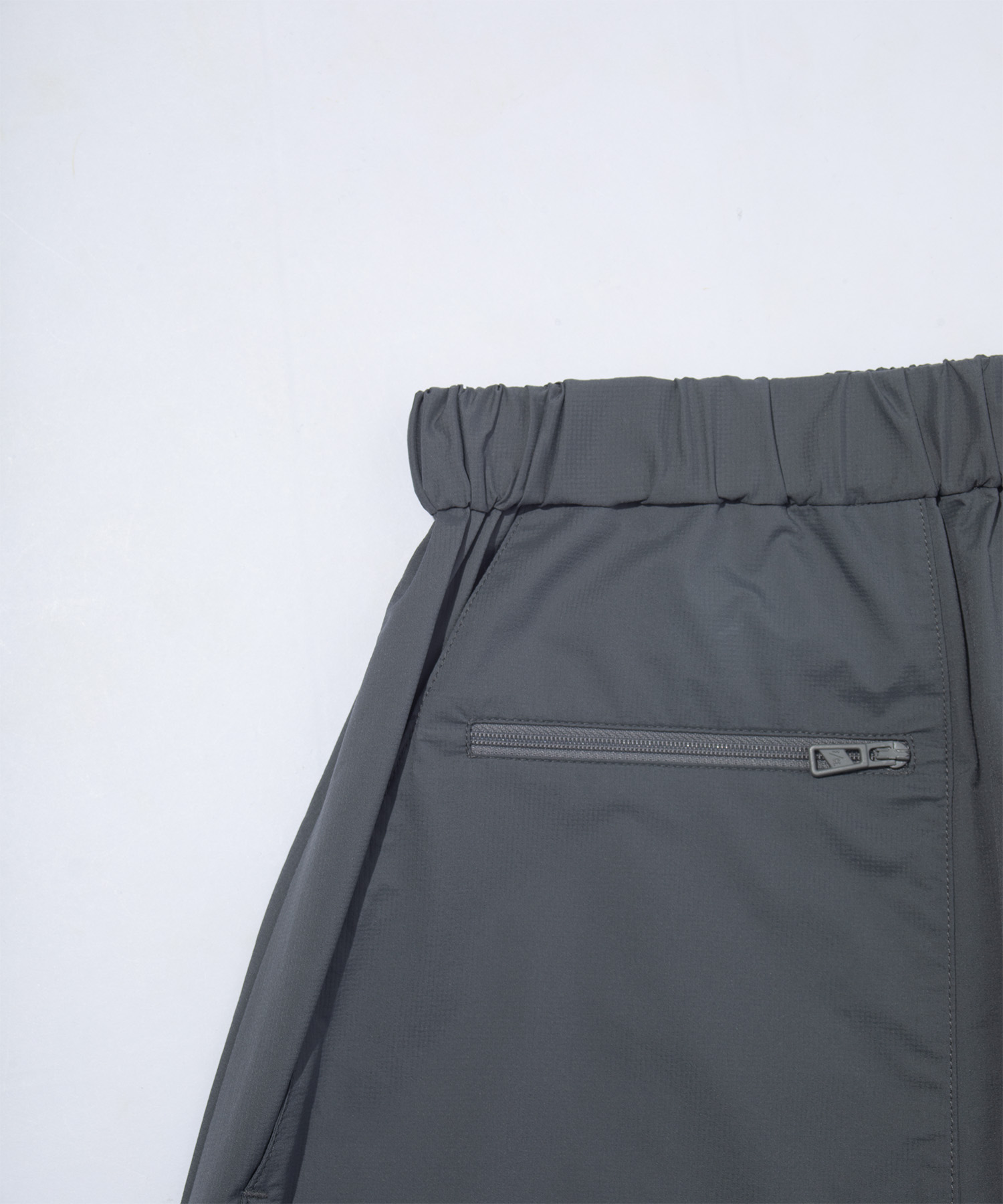 イージー仕様のウエストロープにより、サイズ調整も自在。収納性と通気性を兼ね備えた、ファッション性と機能性の両立が魅力の一着です。