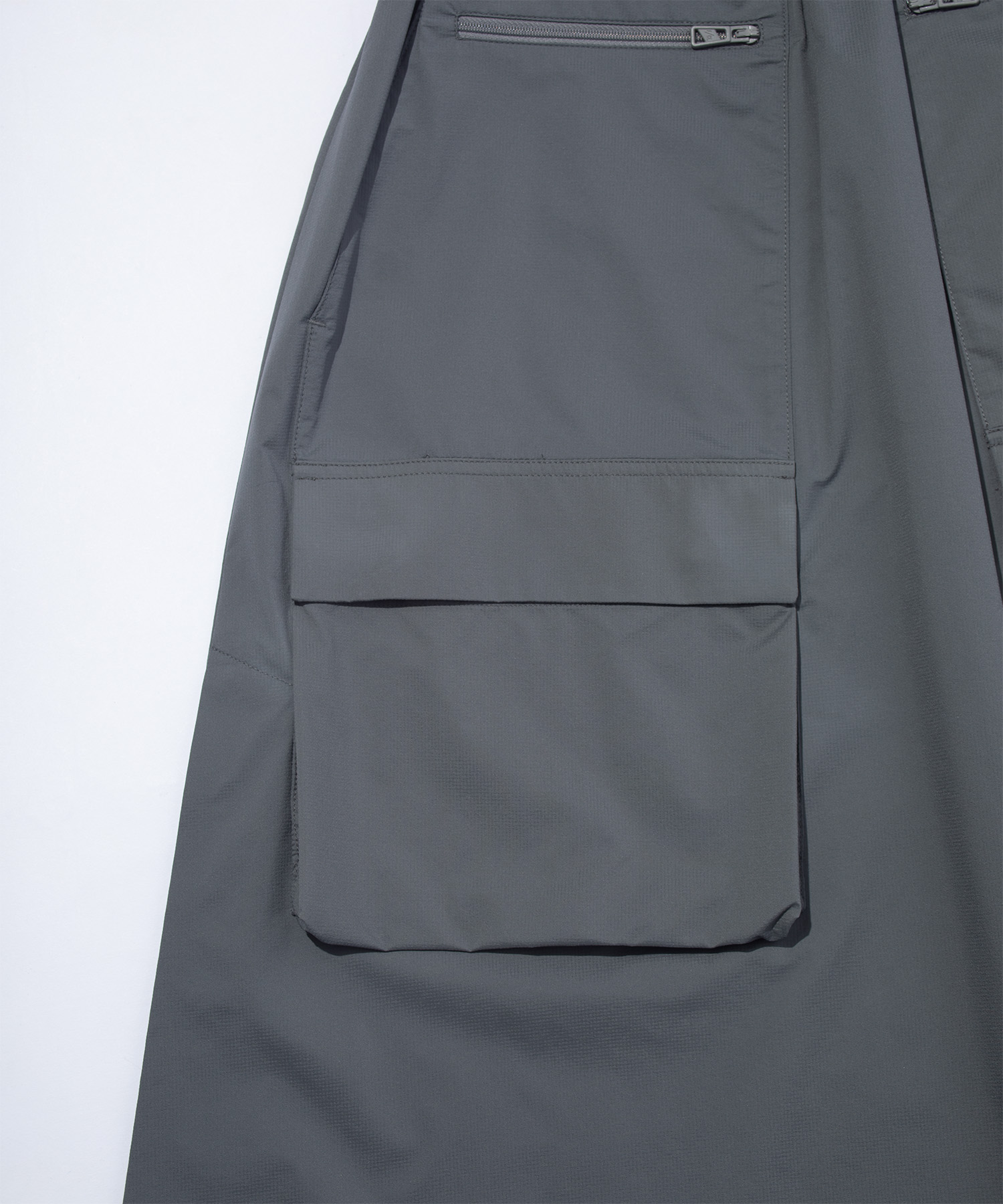 特殊二重織構造のハイブリッド素材 PERTEXR EQUILIBRIUM を使用した、テクニカルなロングスカート。