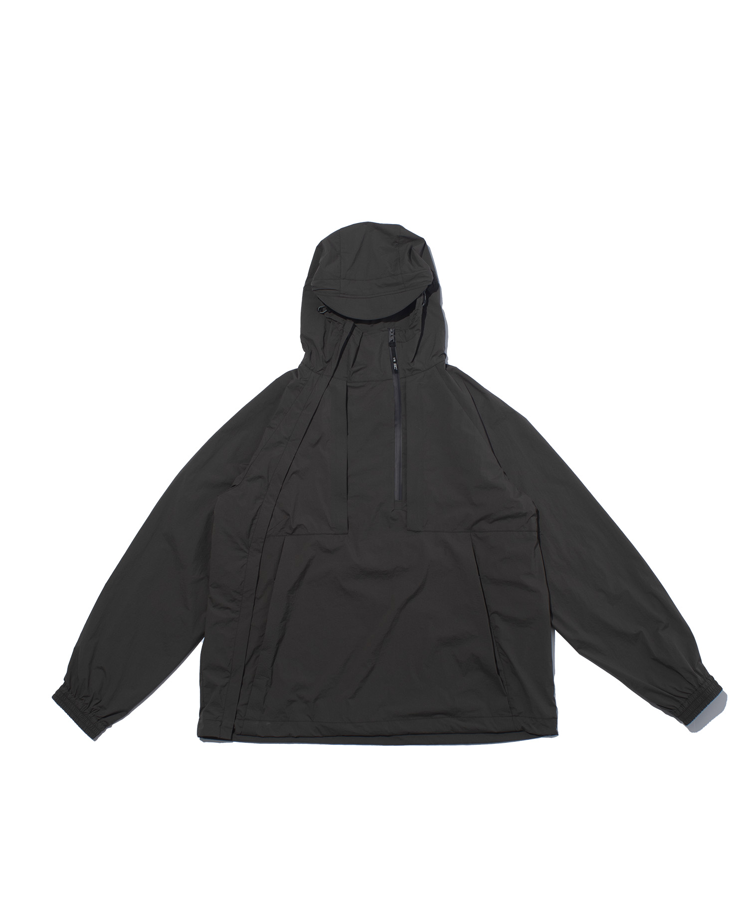 ミリタリーライクなゆったりとした太袖シルエットに、軽量な20Dナイロンタフタ素材を組み合わせた一着
