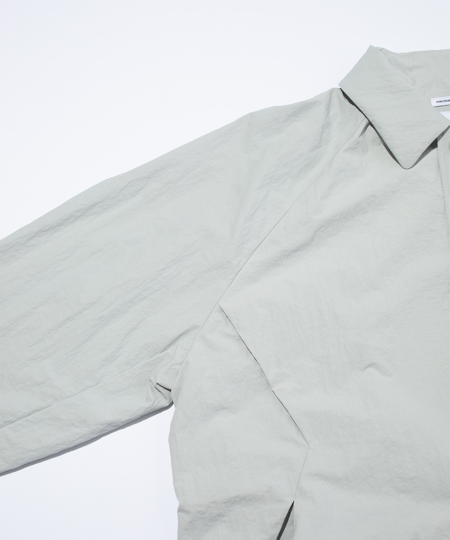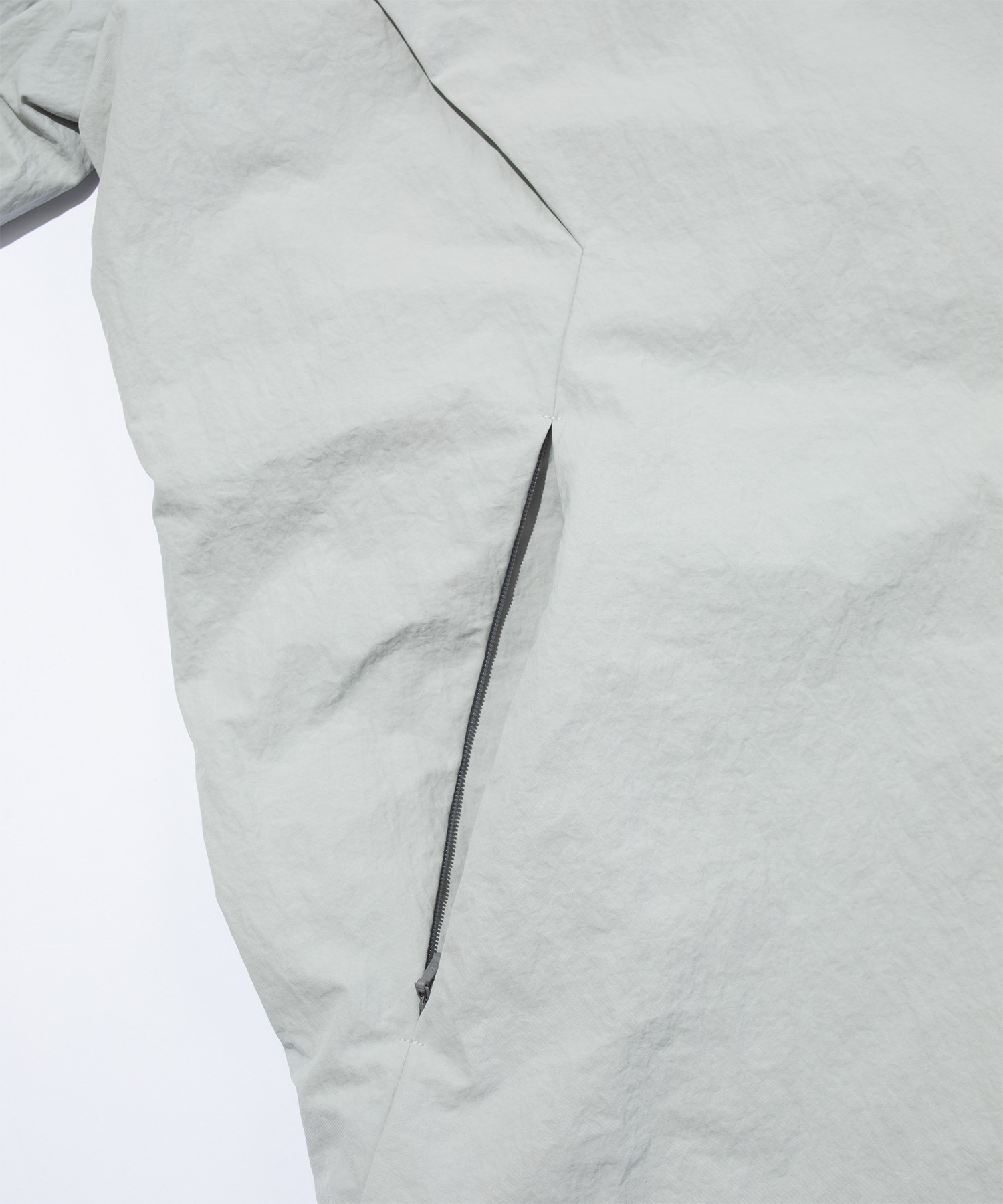 コンシールファスナーやホットメルト仕上げの前立て・カフスが、ミニマルな印象を生み出しながら機能性も確保。