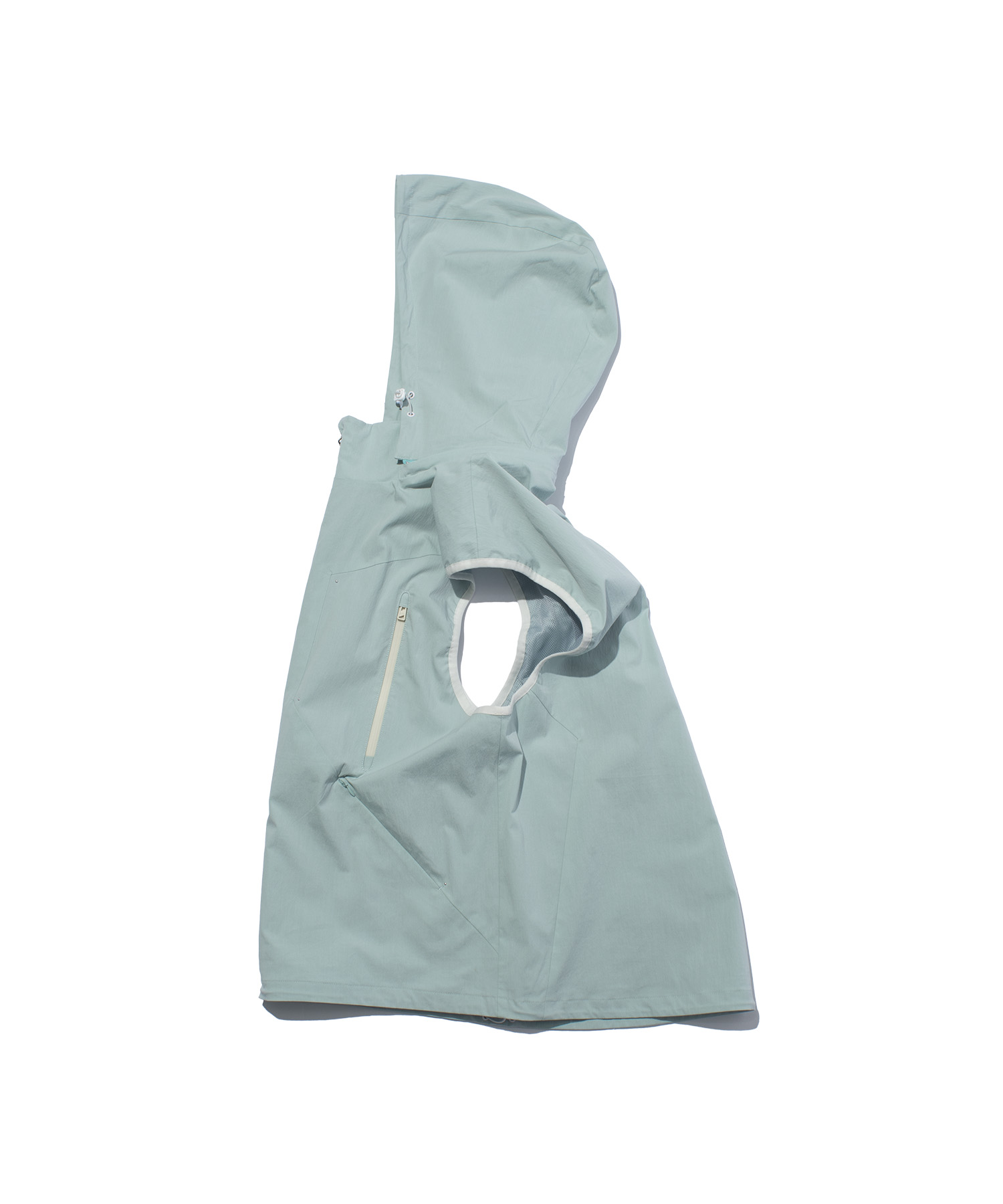 デタッチャブル仕様のフードは、スタンドカラーとしても着用可能で、スタイリングの幅を広げます