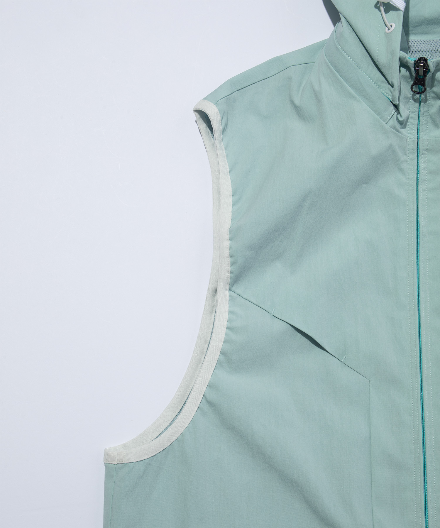 背面にもベンチレーションファスナーを配し、動きに合わせた通気性を確保