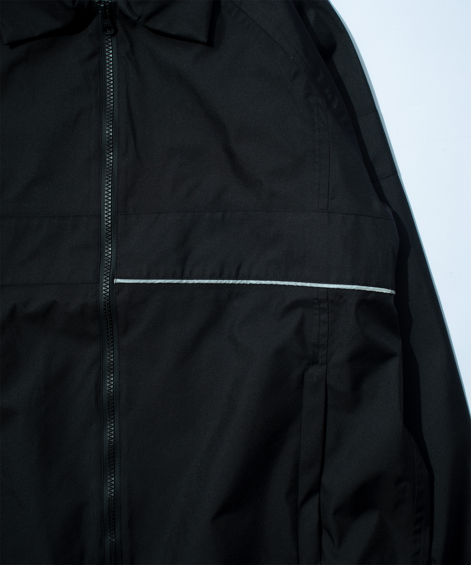 形は80年代の廃品回収用ユニフォーム・ジャケットをベースにしている。このスタイルは以前のコレクションの一部だが、内側にライニングを施した2Lライトドリル防水生地で作られたのは今回が初めて。胸に反射パイピング。フルタップド