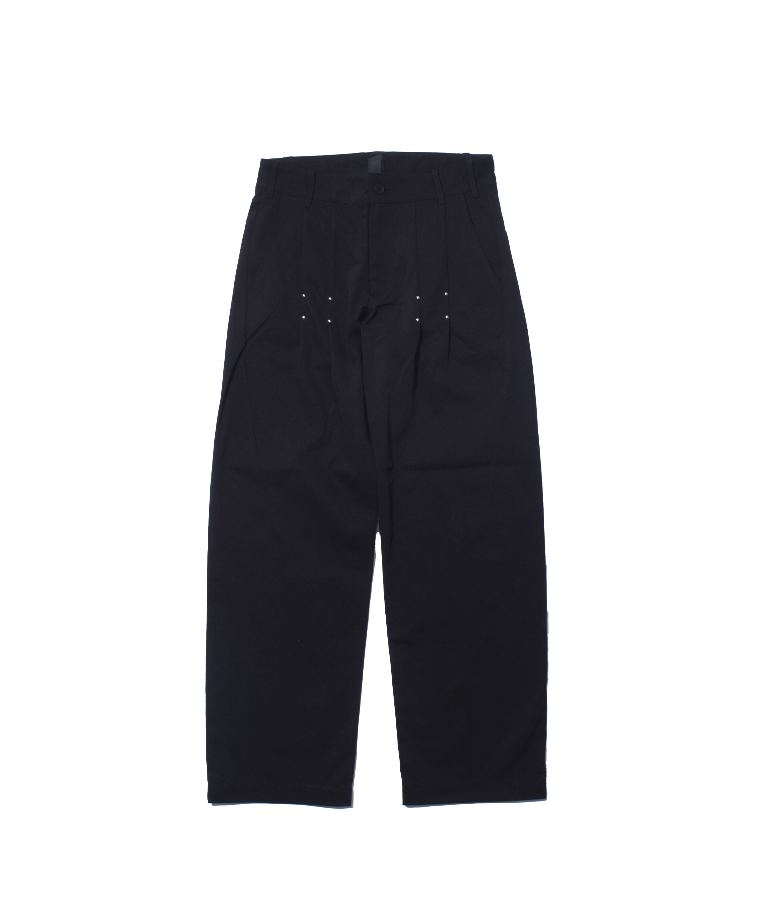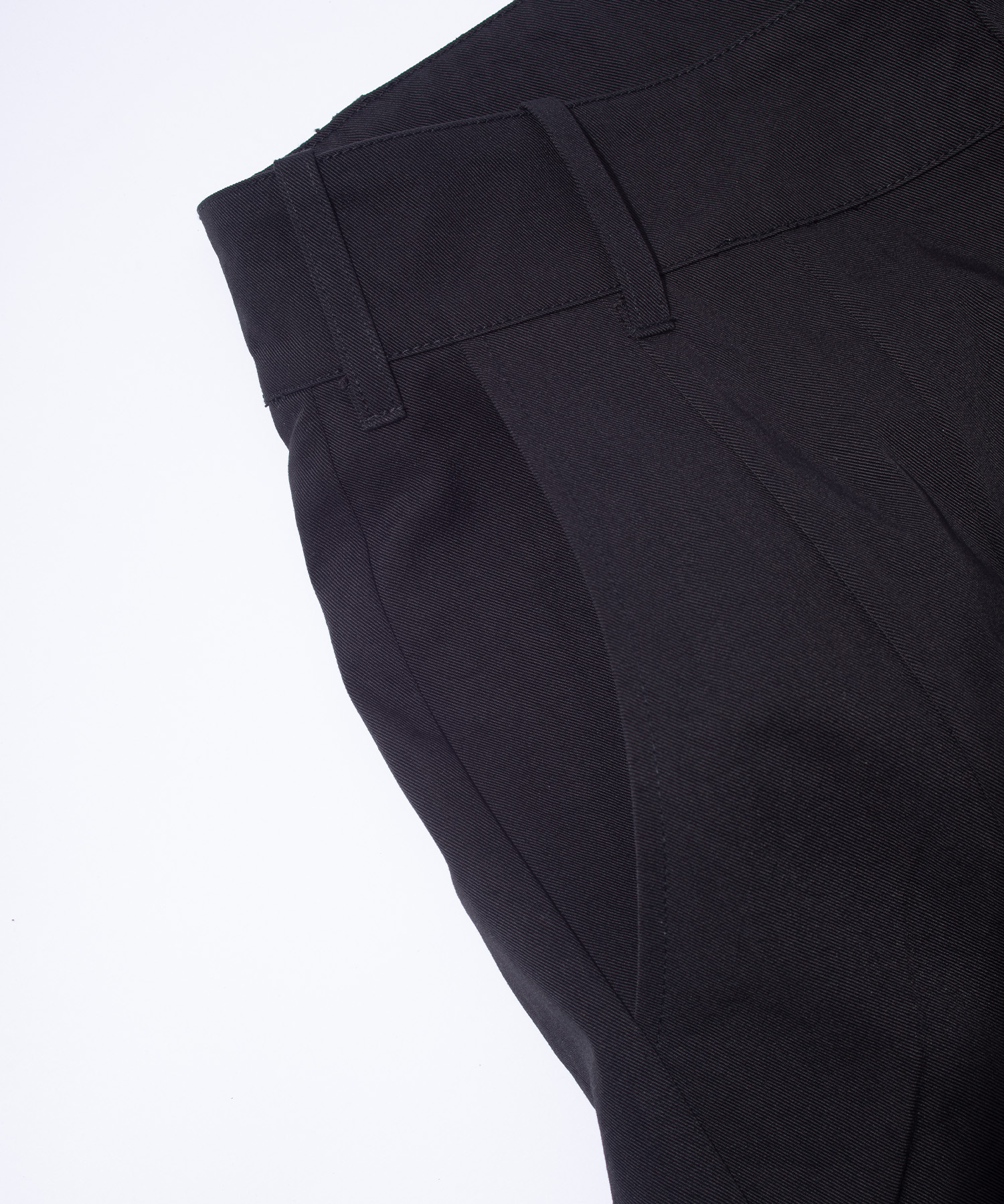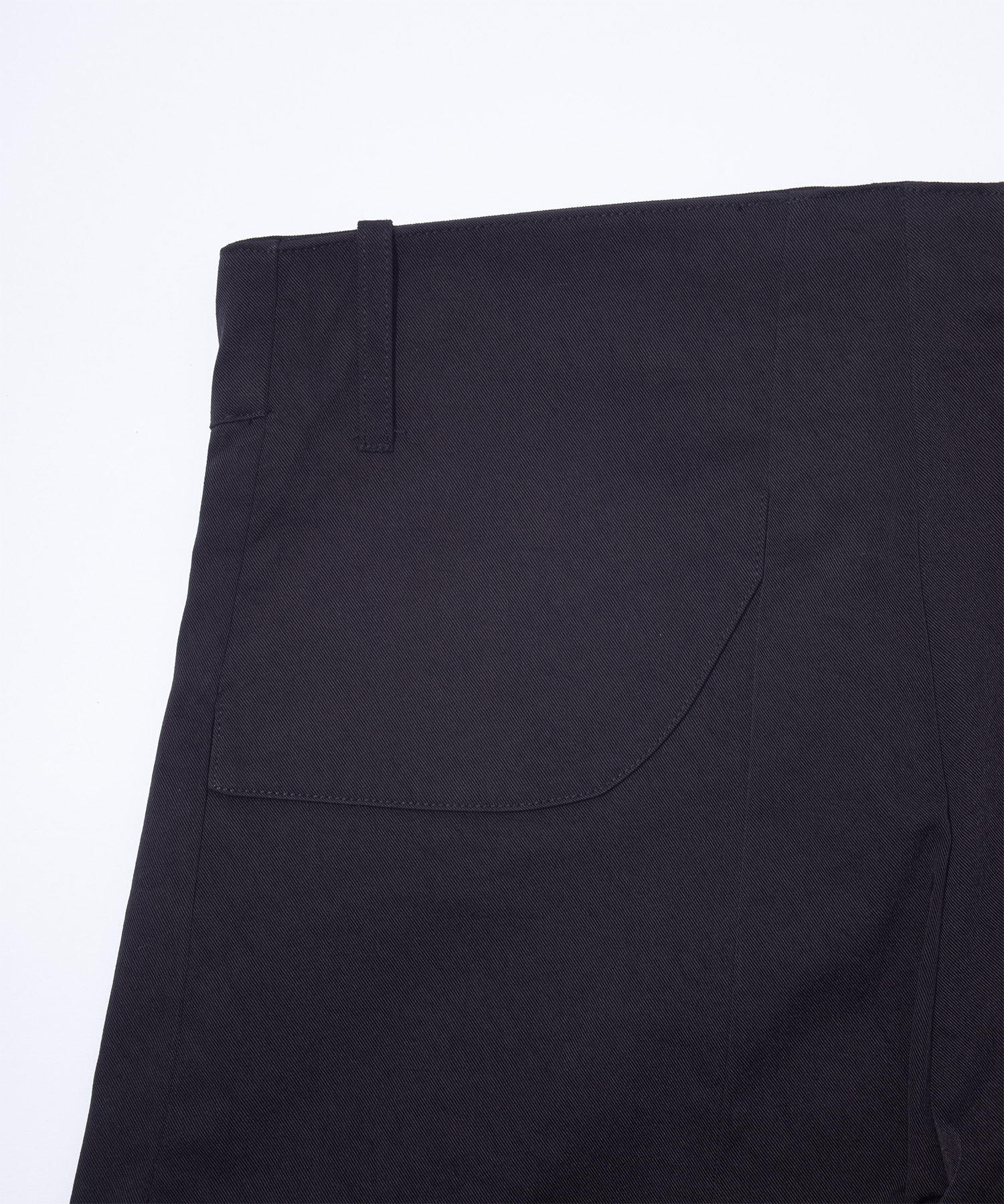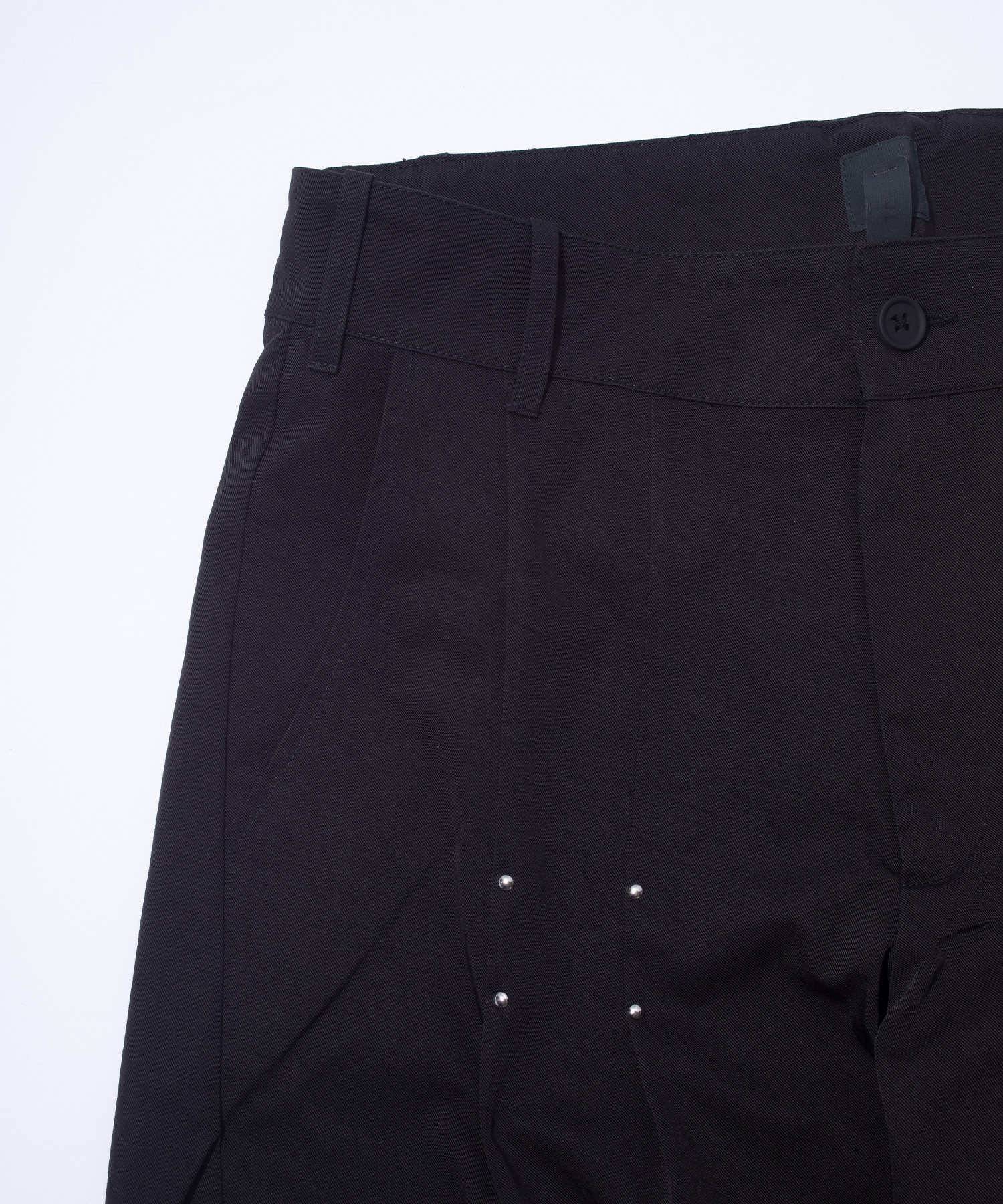 ナチュラルな手触りのナイロン100%素材を使用したドラーグ・トラウザーは、一体型のダーツ入りレッグ構造、サイドエントリー・ポケット、ダーツのディテールを施したリア・フラップポケットが特徴。フロントプリーツはツインスタッズ留め。