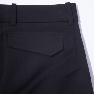 ソフトで構築的な二重織りのメランジ素材を使用したUvasトラウザーは、サイドエントリーのウェルトポケットが特徴で、プリーツで一部を隠すことでさりげなくワイドなシルエットに。後部のウェルトポケットは角ばったひさしの下に隠されており、ブランドの特徴的なデザイン言語を反映している。
