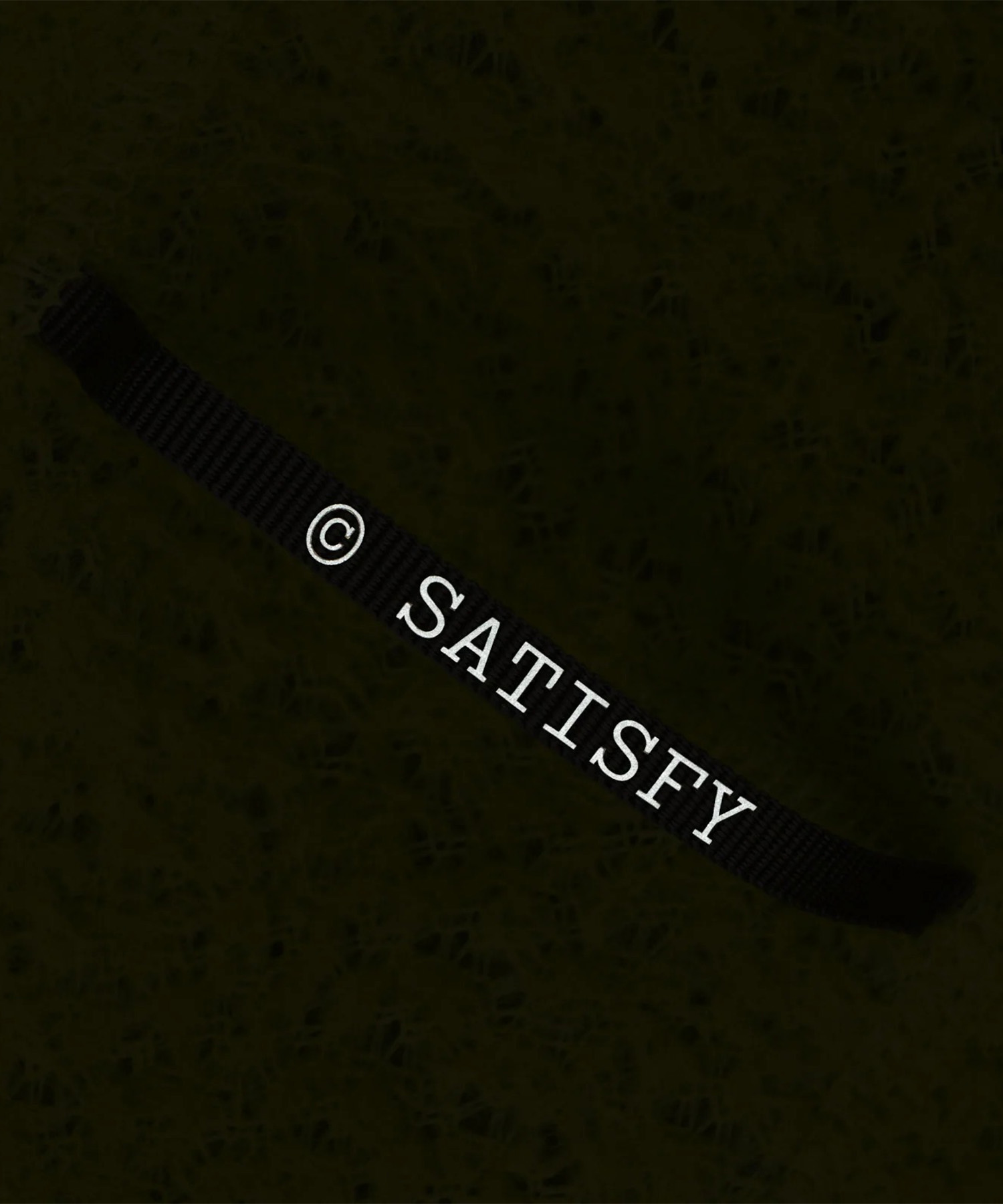 ・暗がりでの視認性を確保するステルスリフレクティブ仕様の SATISFY ロゴ