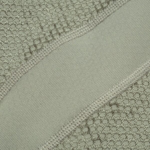 凹凸のあるテクスチャー面を外側に出すことで自然な通気路を生み出し、余分な熱を放出しながら保温性を確保します。