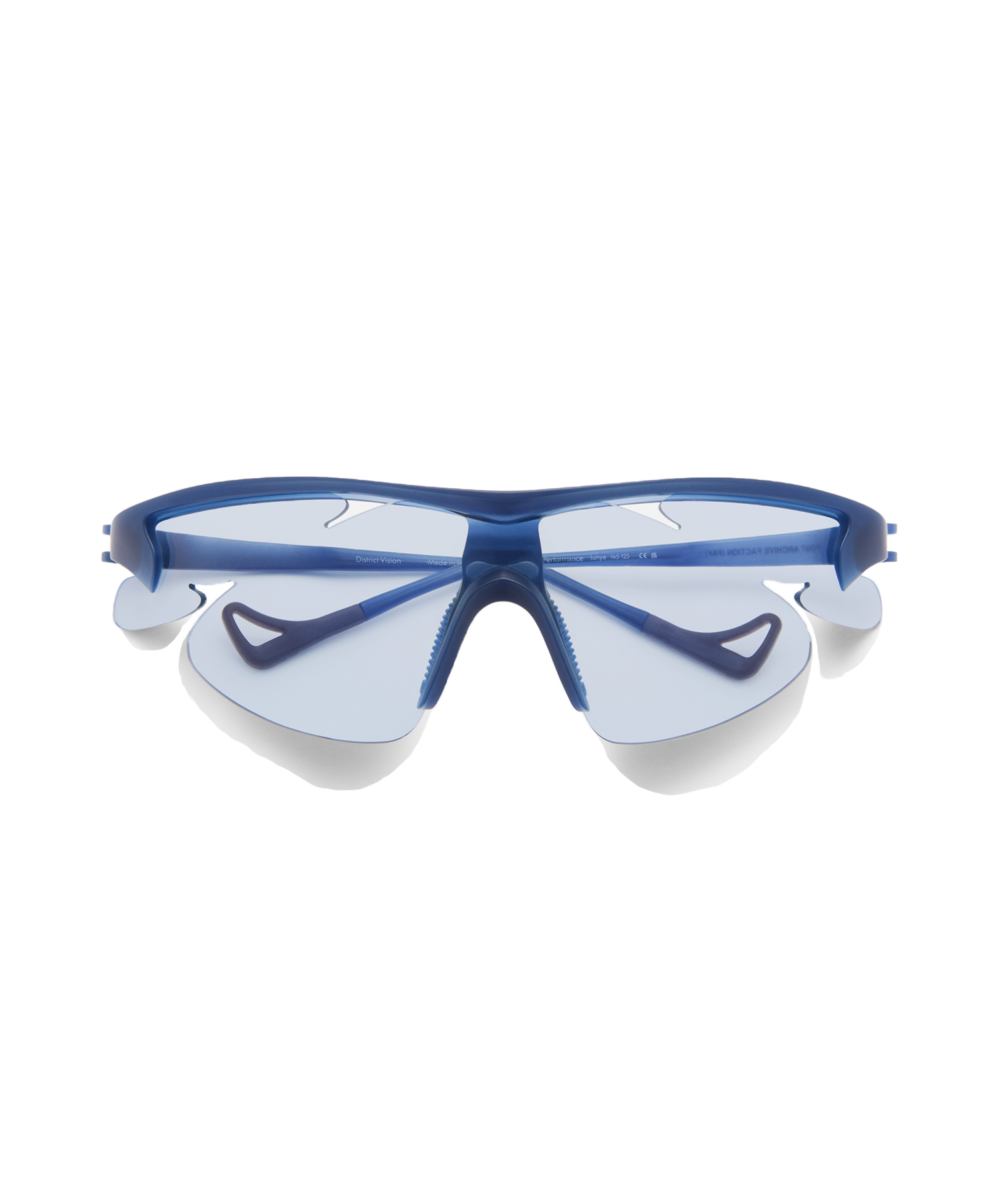 Post Archive Faction(PAF)Junya Racer は、本コラボレーションのために独自開発されたカスタムレンズカットを採用しています。鳥や蝶の羽の軽量構造から着想を得たこの造形は、必要な部分の素材のみを残すことで軽量化を実現しつつ、安定性を維持しています。この生体模倣的アプローチにより、動作時に顔まわりの空気の流れを導く、さりげない空力的特徴が加えられています。素材を削減していながらも、CE、UKCA、ISO の保護基準を完全に満たしています。