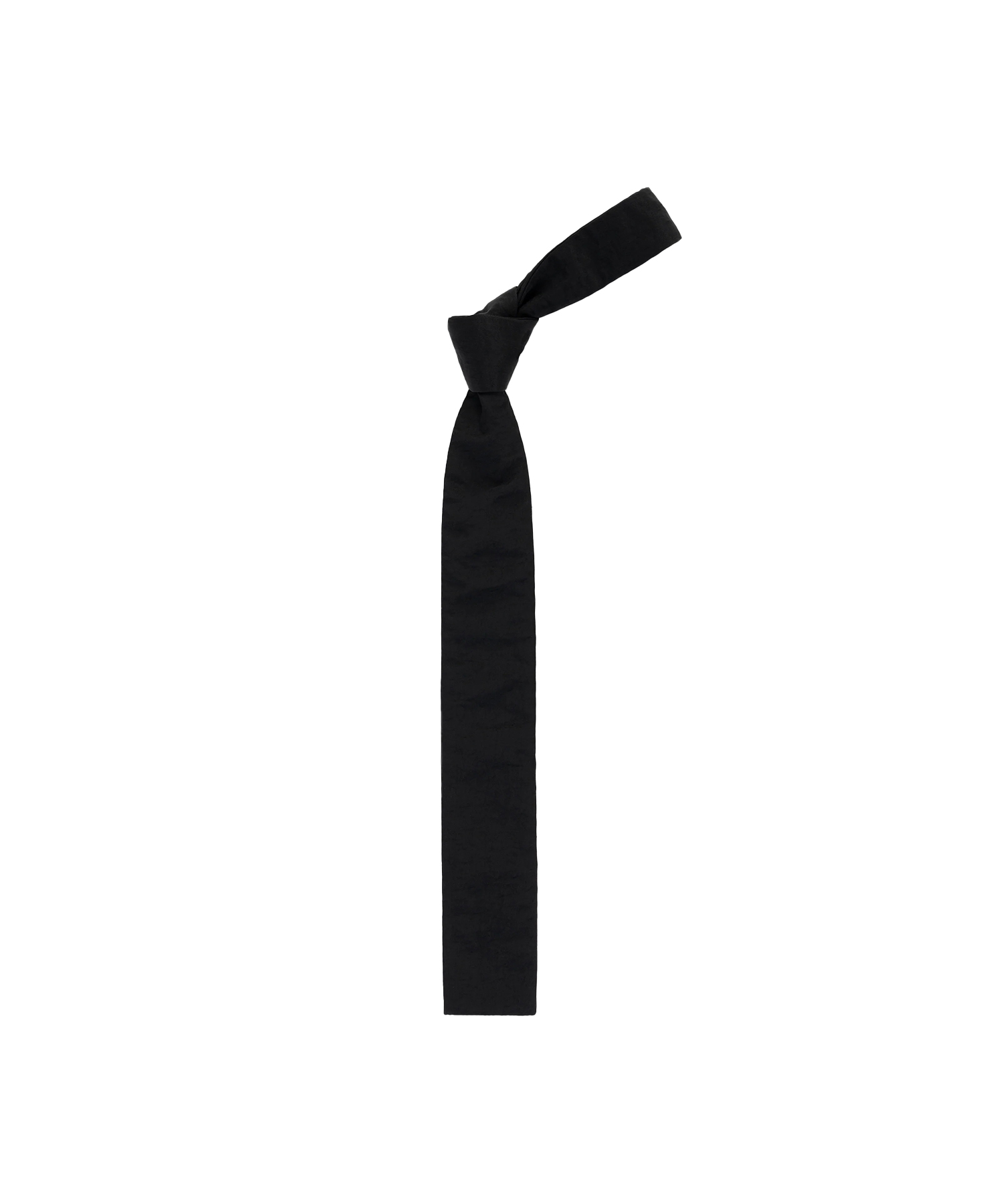 スクエアヘッドのテクニカルタイ。細い端に革新的な円形ポケットディテールを採用し、動きの中でもタイを固定。都市空間での移動時に最適な安定性を実現。