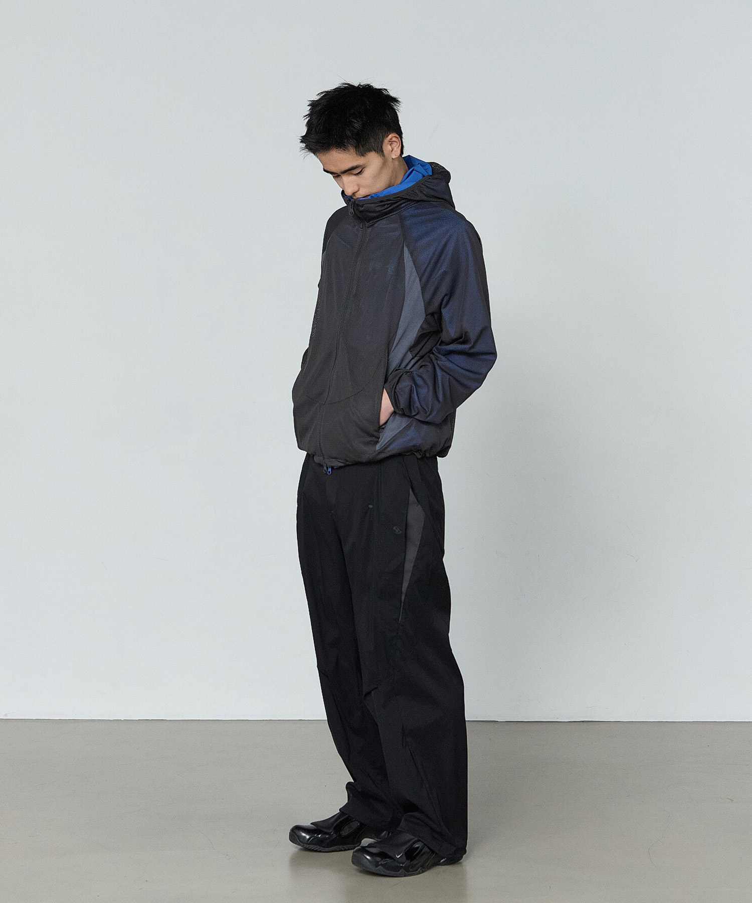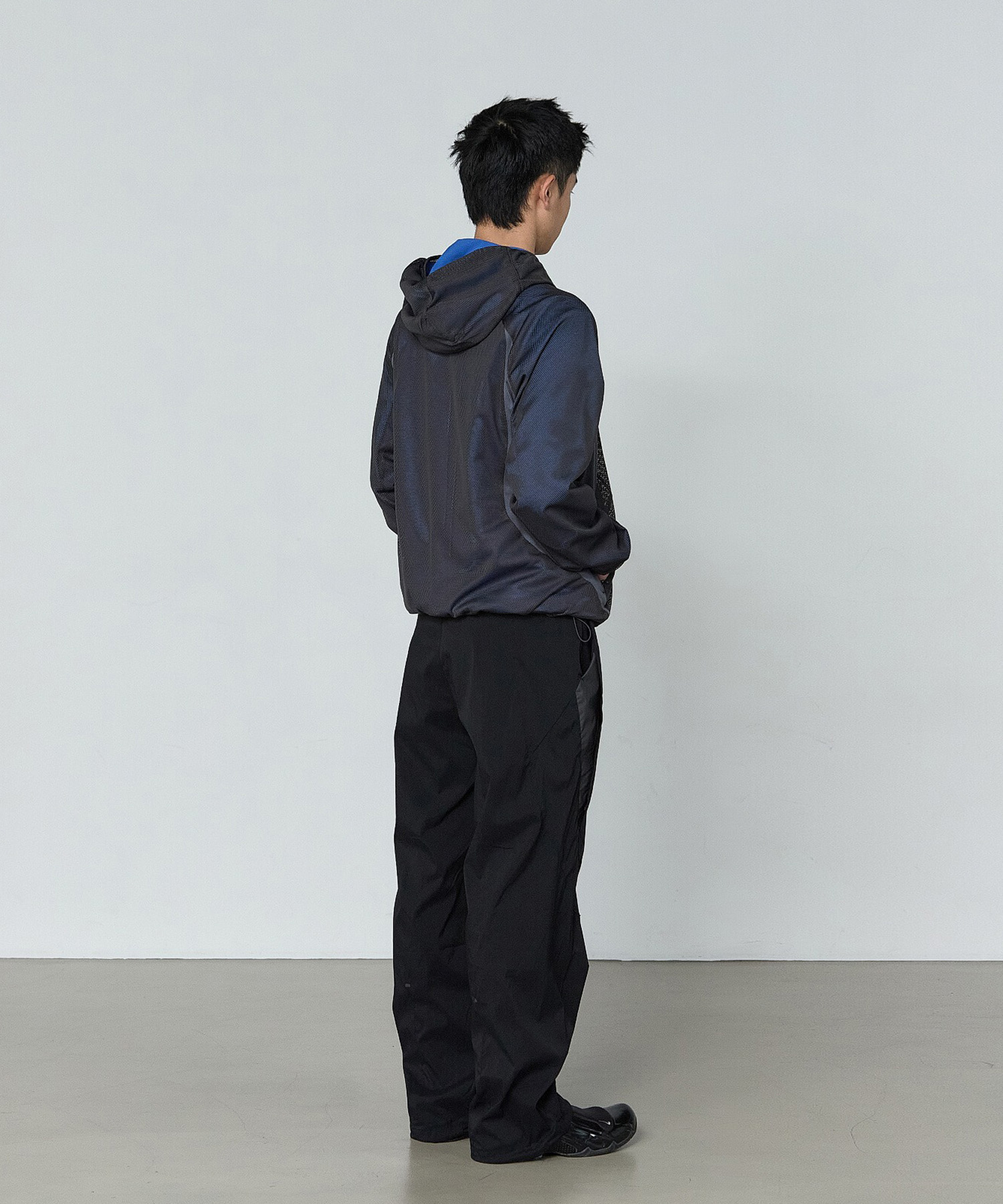 フードにはイヤホンの使用を考慮したスリットディテールを配置し、実用性を向上。