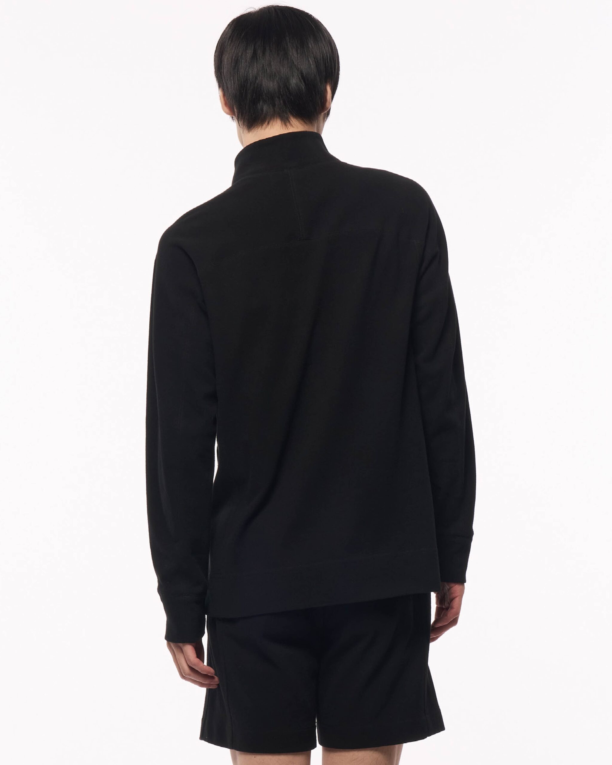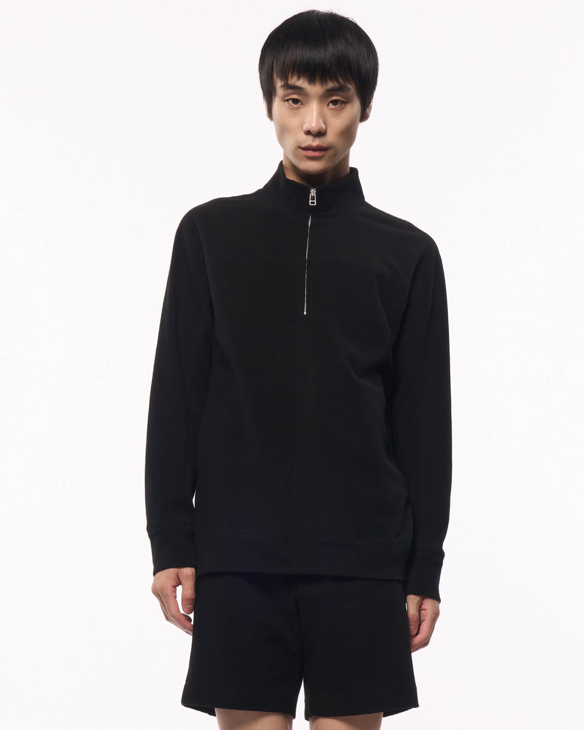 スタンドカラーと3/4ジップ仕様で、すっきりとした印象の軽量トップス。