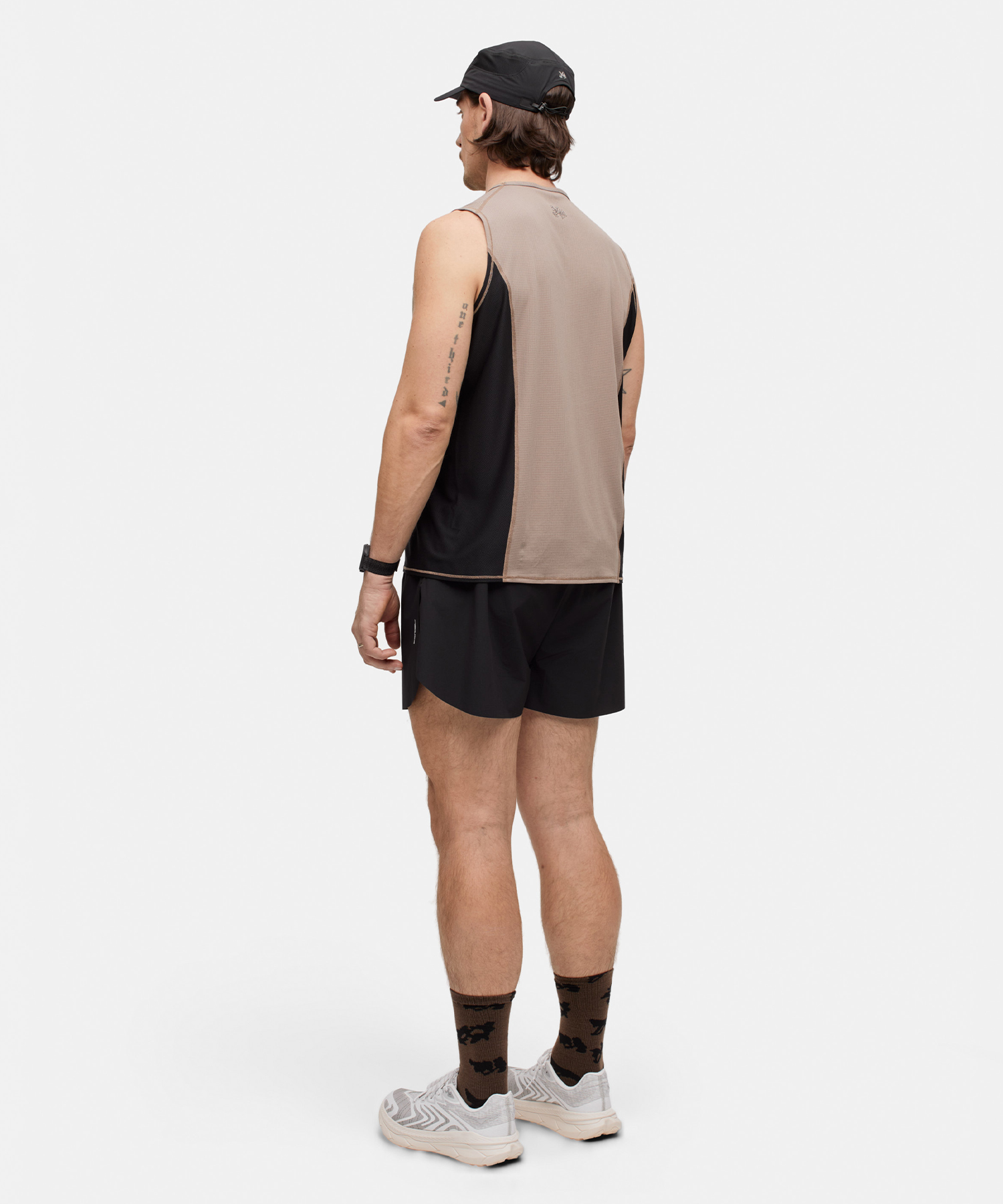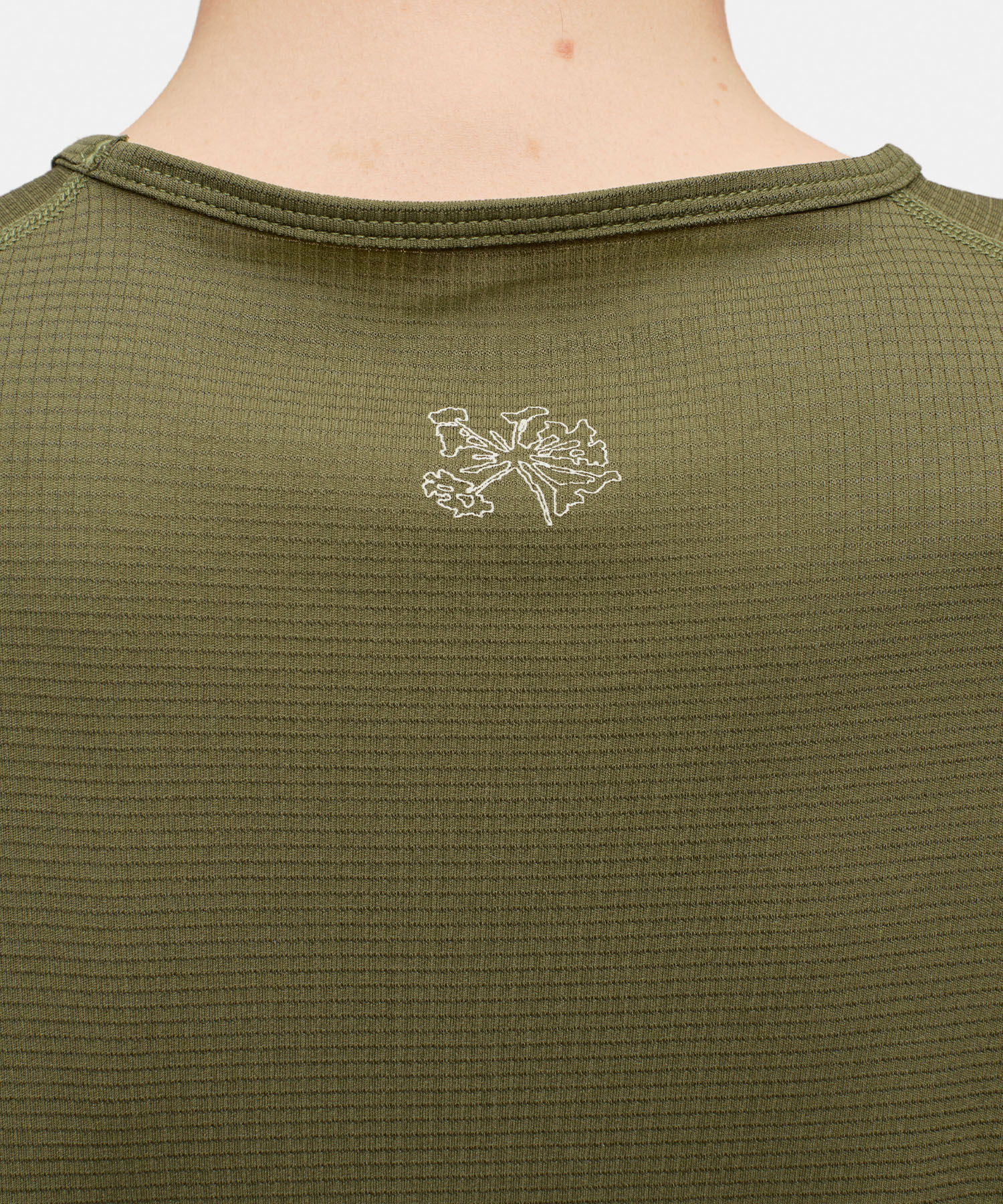 Polartec Gridline Delta素材を使用し、高温環境でもドライで涼しい状態をキープ。アンダーアームのコントラストメッシュが通気性をさらに向上させています。