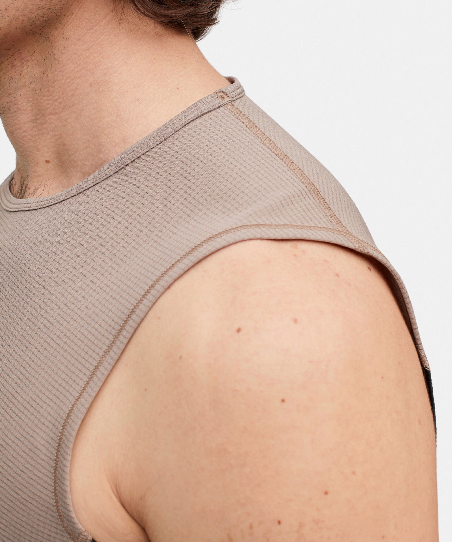 暑い環境下での素早い動きを想定した軽量タンクトップで、メッシュパネルにより高い通気性と快適性を確保しています。
