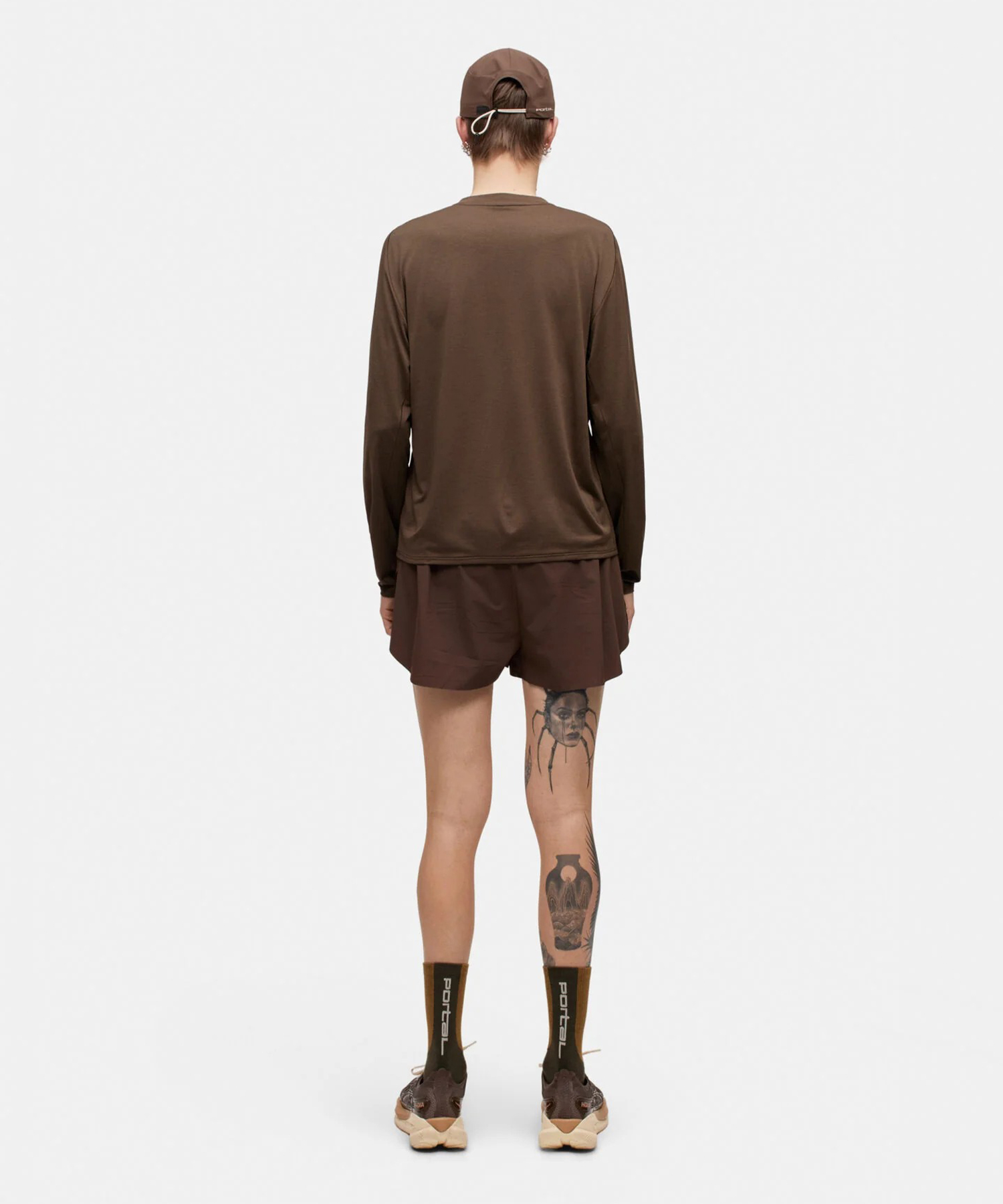 縫い目にはメロウステッチを採用し、摩擦を軽減。ややクロップド丈のフィットがアクティブシーンとデイリーの両方に対応します。