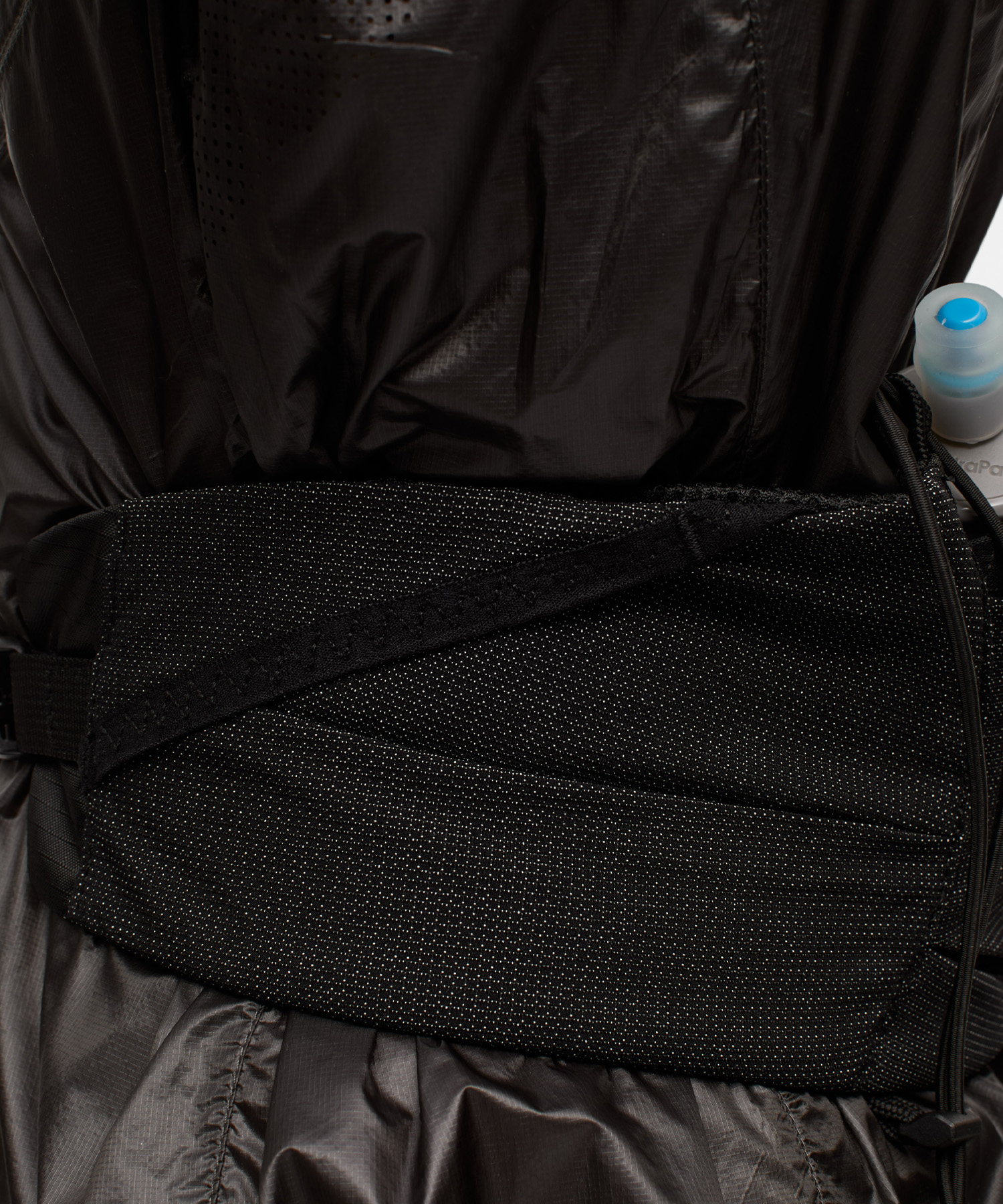 フロントとサイドポケットにはUHMWPEグリッドメッシュを採用し耐久性を強化。500mlソフトフラスクやスマートフォン、フード、キー、ジャケット、ポールなどを安全に収納できます。