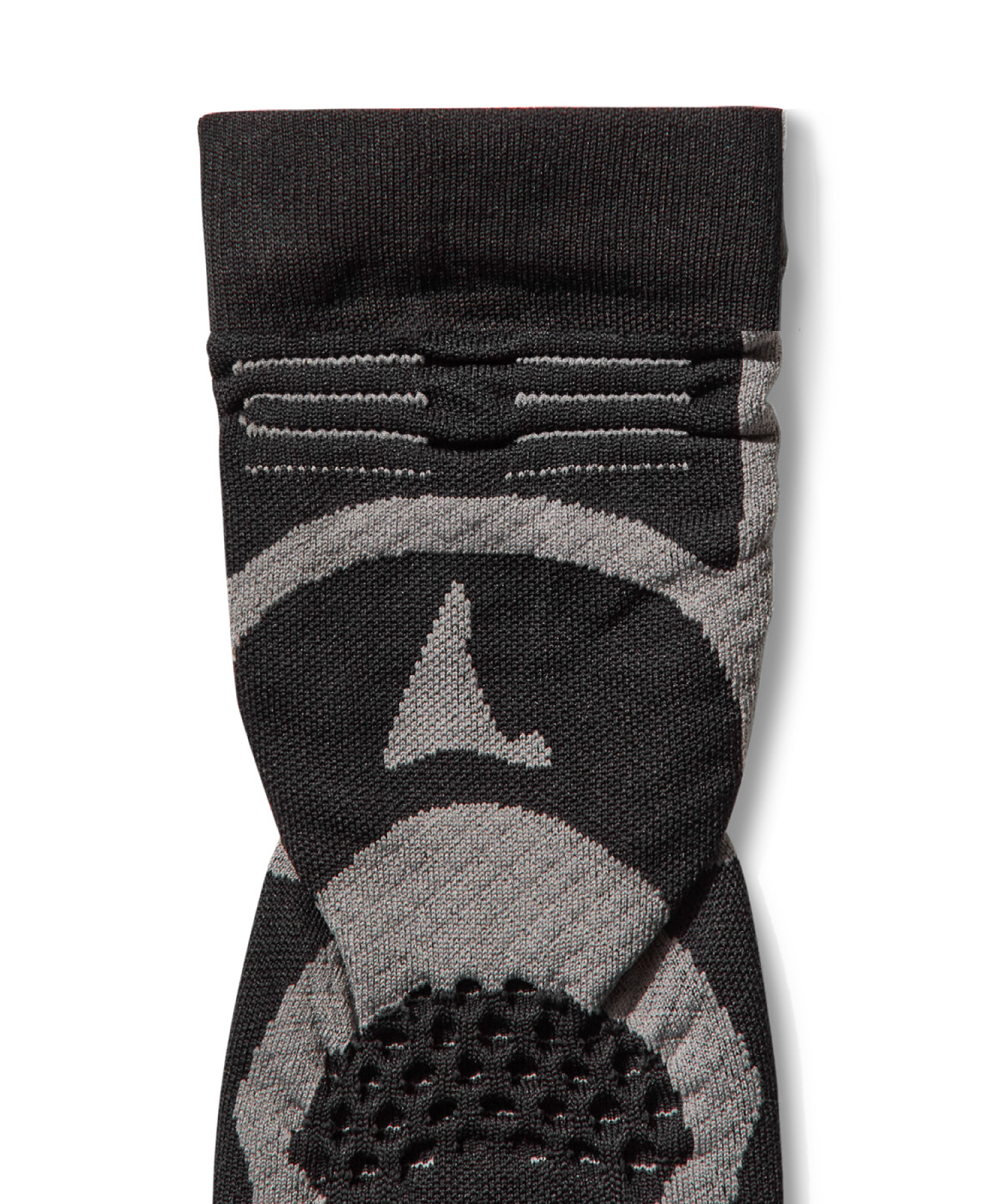 ブラックカラーのテクニカル カーフハイ クルーソックス。