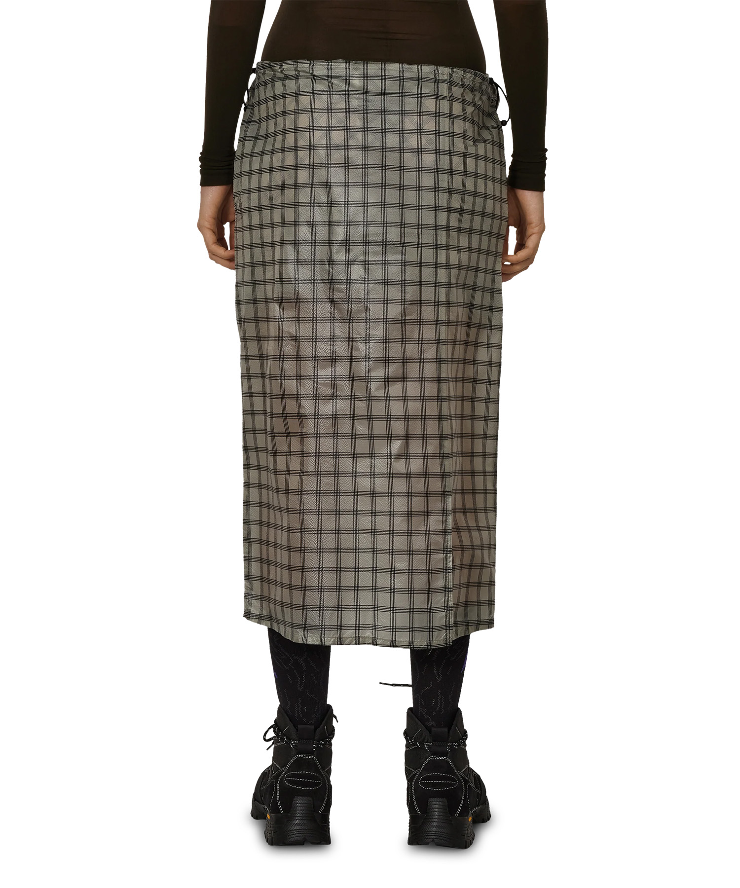 軽量の10Dマイクロリップストップナイロンに控えめなチェックプリントを施したスカートです。