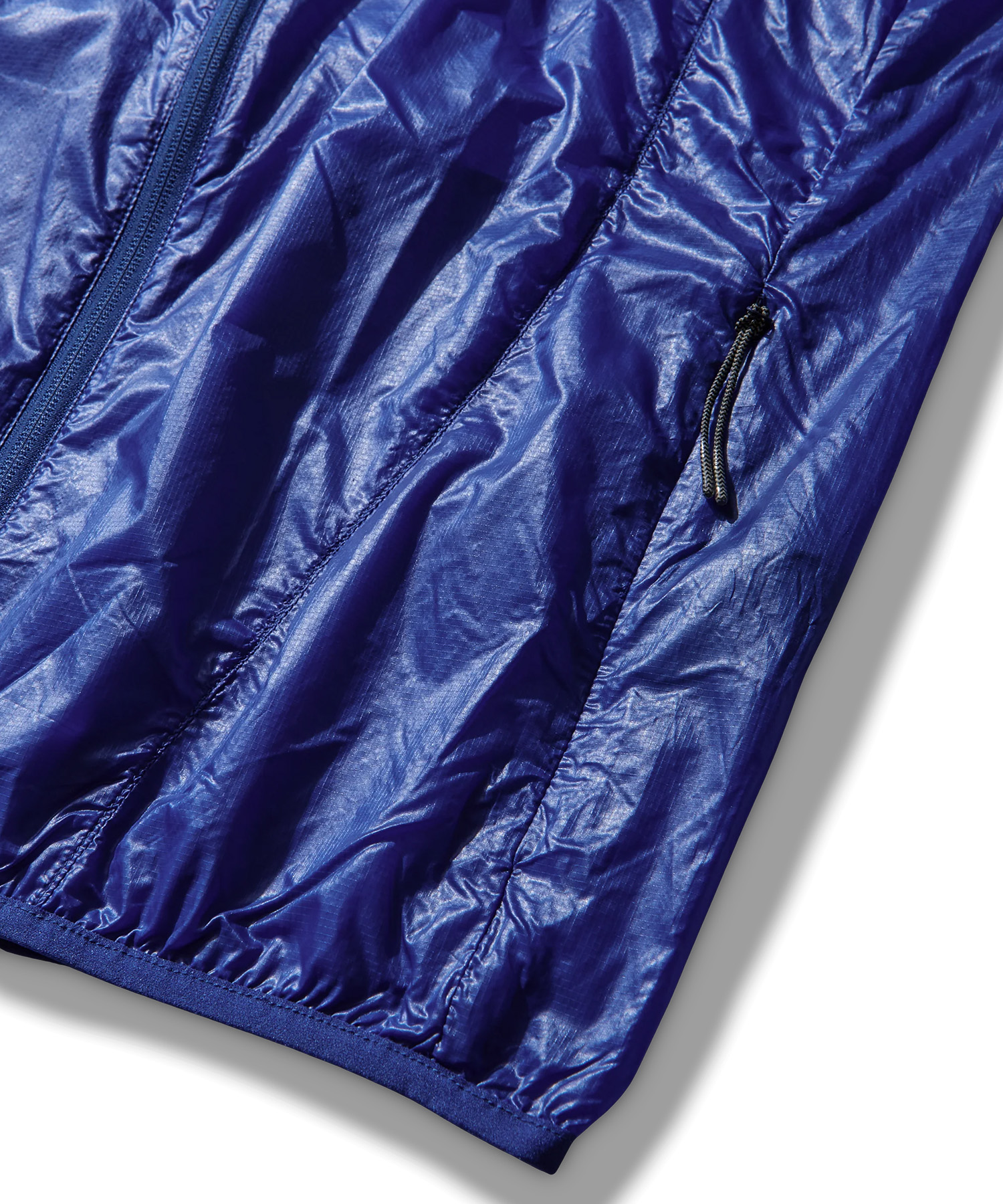 10Dウルトラライト マイクロリップストップナイロンを使用し、防風性と撥水性を兼ね備えています。