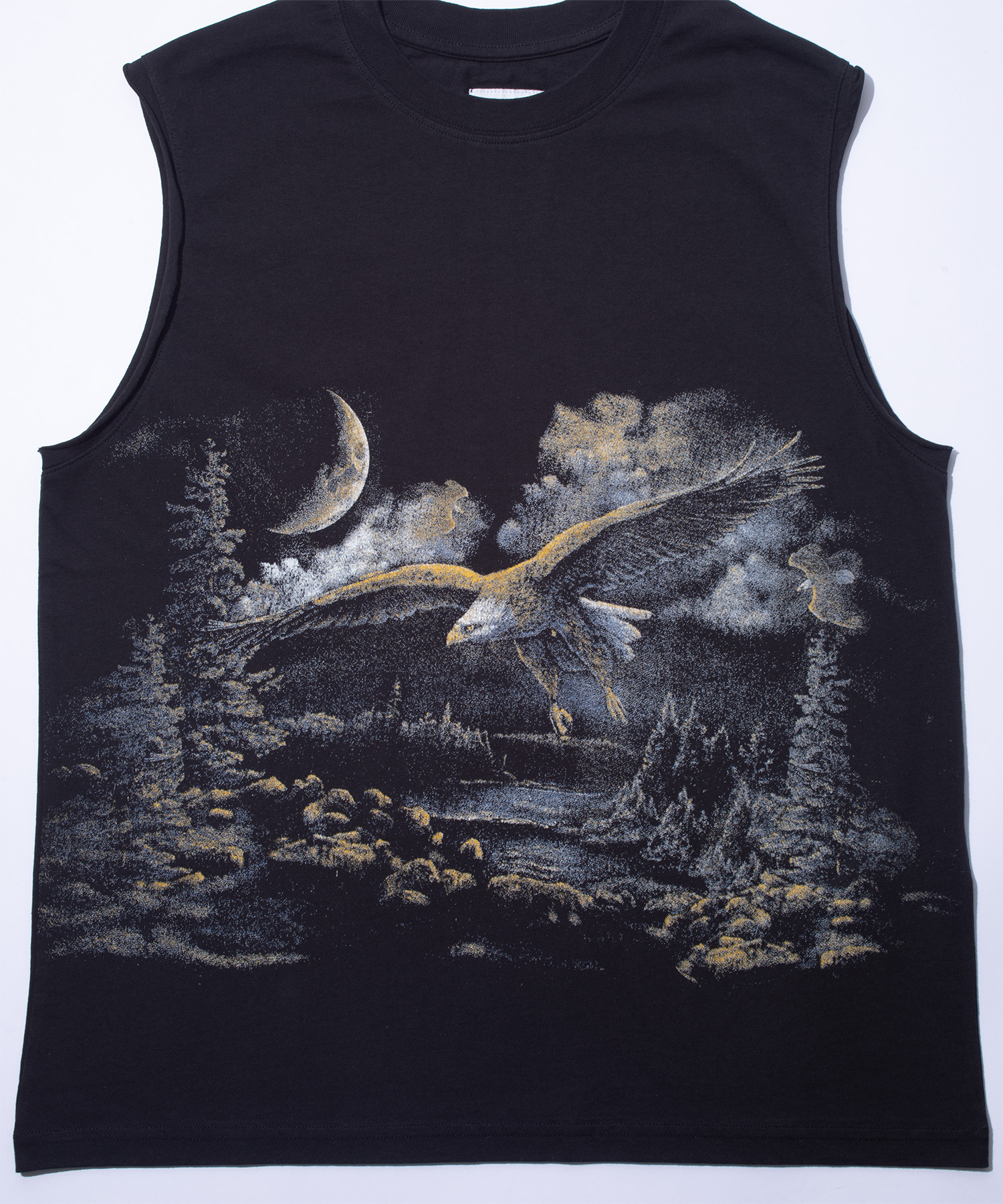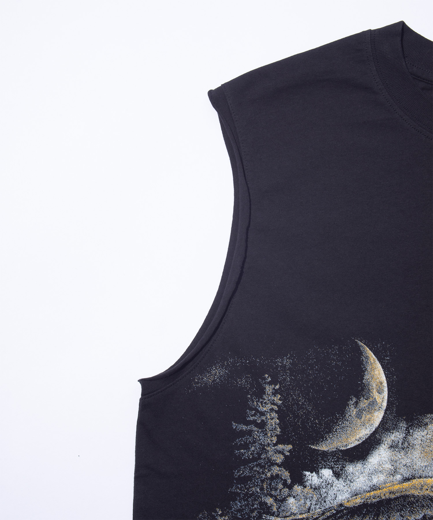 オーガニックコットンジャージー製のノースリーブTシャツ(ウォッシュドブラック)。