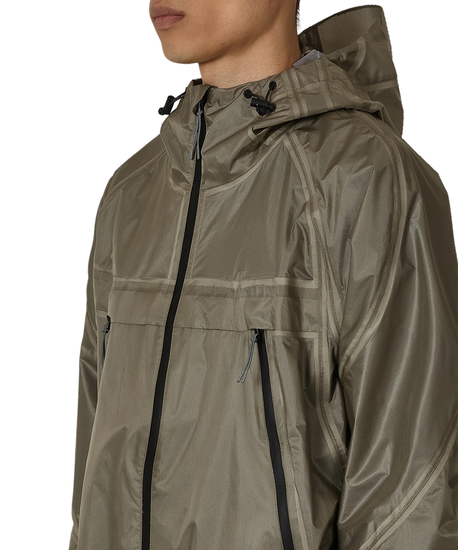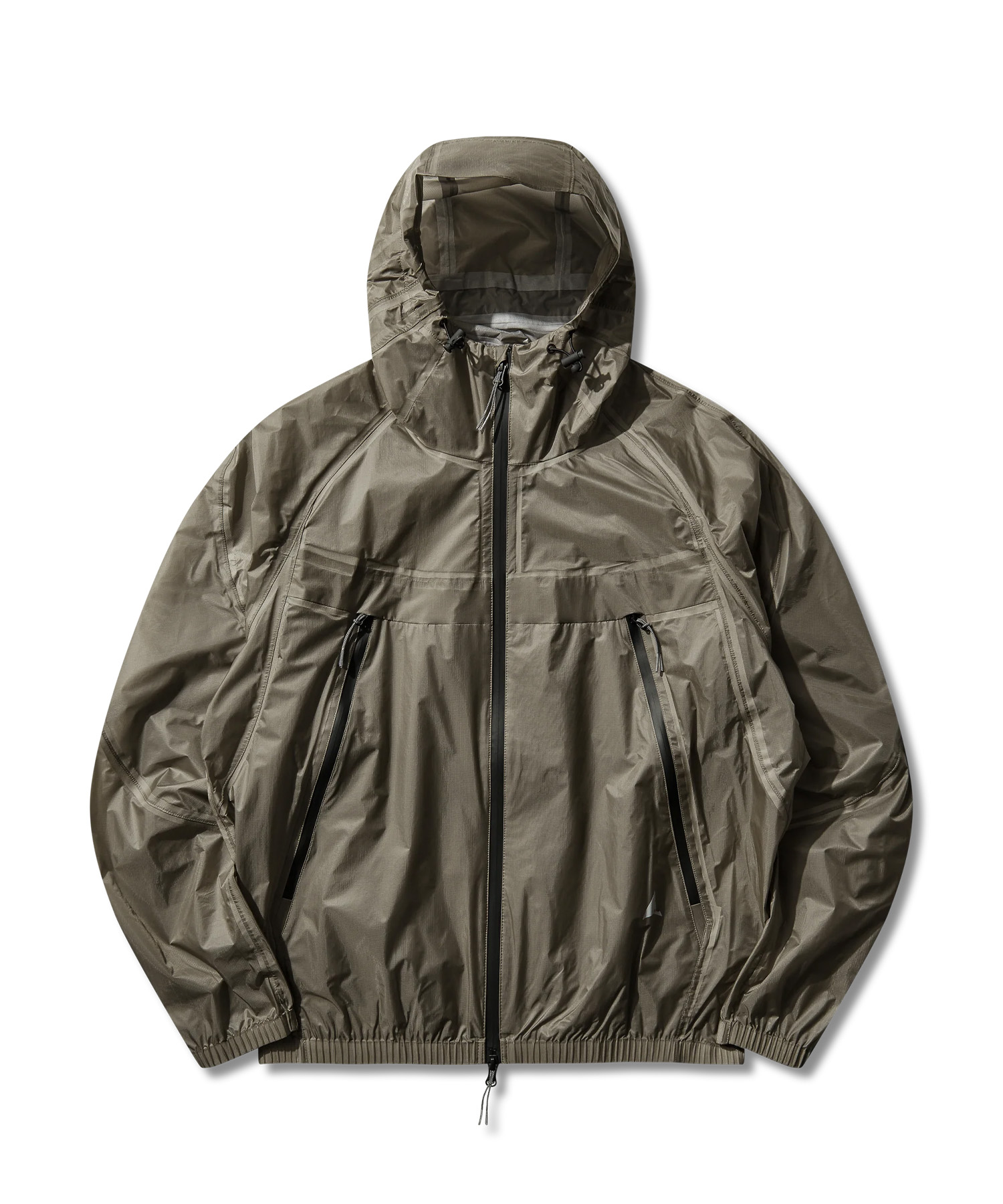 全面テーピング加工により水の侵入を防ぎ、調整可能なフード、