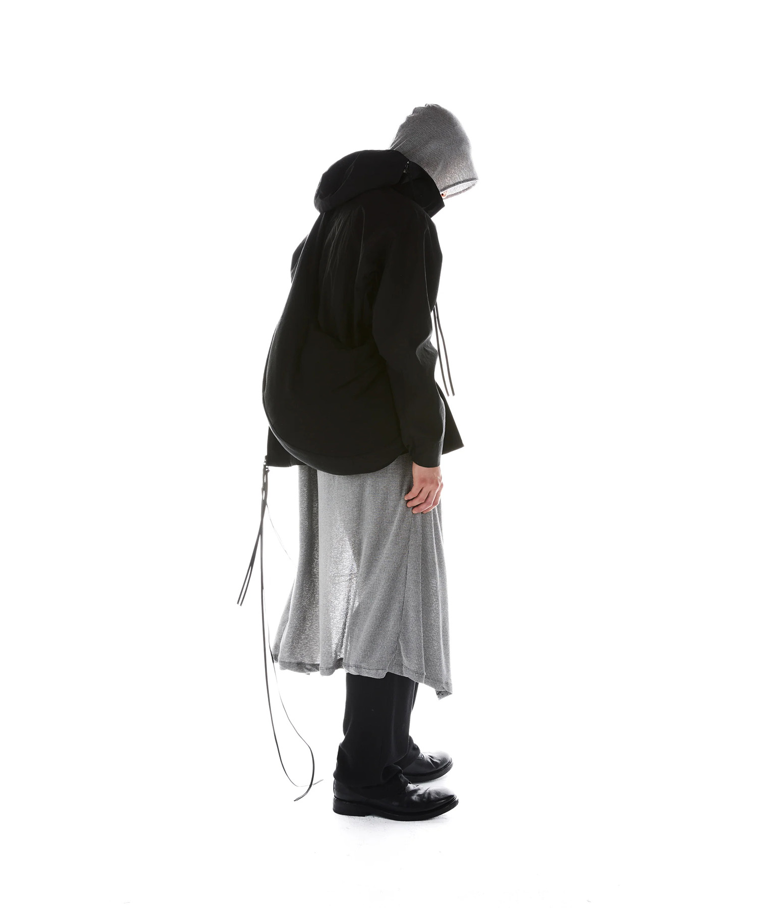 中綿入りのボディは軽量ながら保温性を備え、カーブを描く構造が身体に沿う自然なドレープを生み出します。