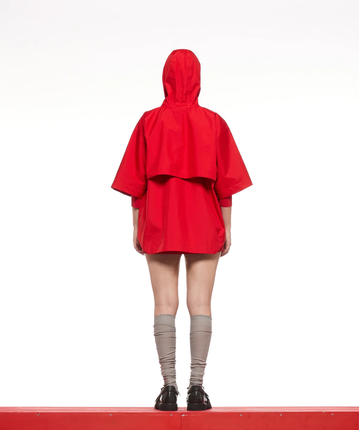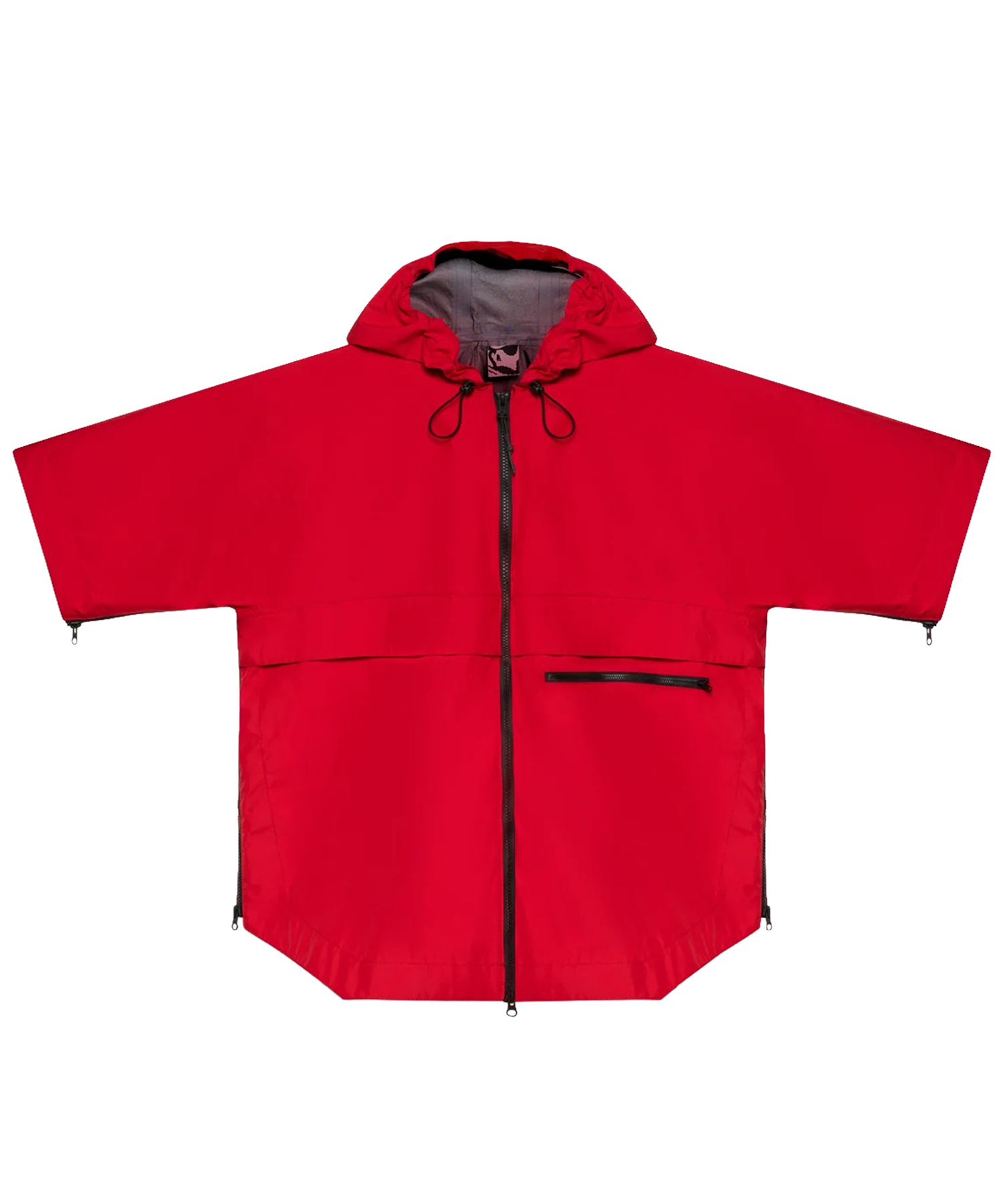 ショートスリーブ仕様の防水ポンチョ。 サイドはフルオープン可能な設計で、可動域とレイヤリングの自由度を確保。 フロントのジップポケットが立体的なシルエットを形成し、縫い目はすべてシームテープ処理を施している。 DETAILS ・ラバーディッププラー付き2WAYジッパー ・フロントジップポケット ・DuraflexR フードアジャストシステム ・サイドジップクロージャー