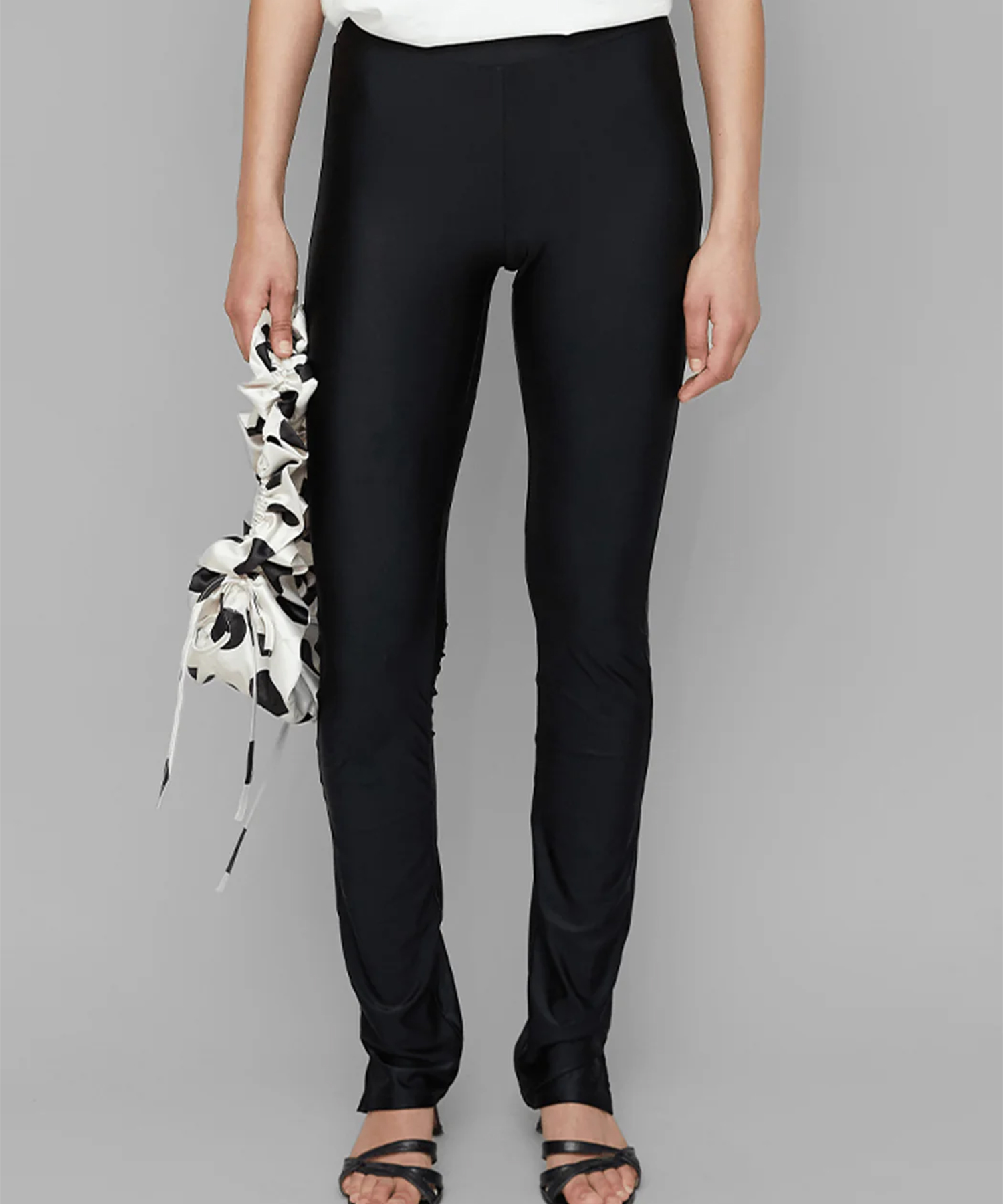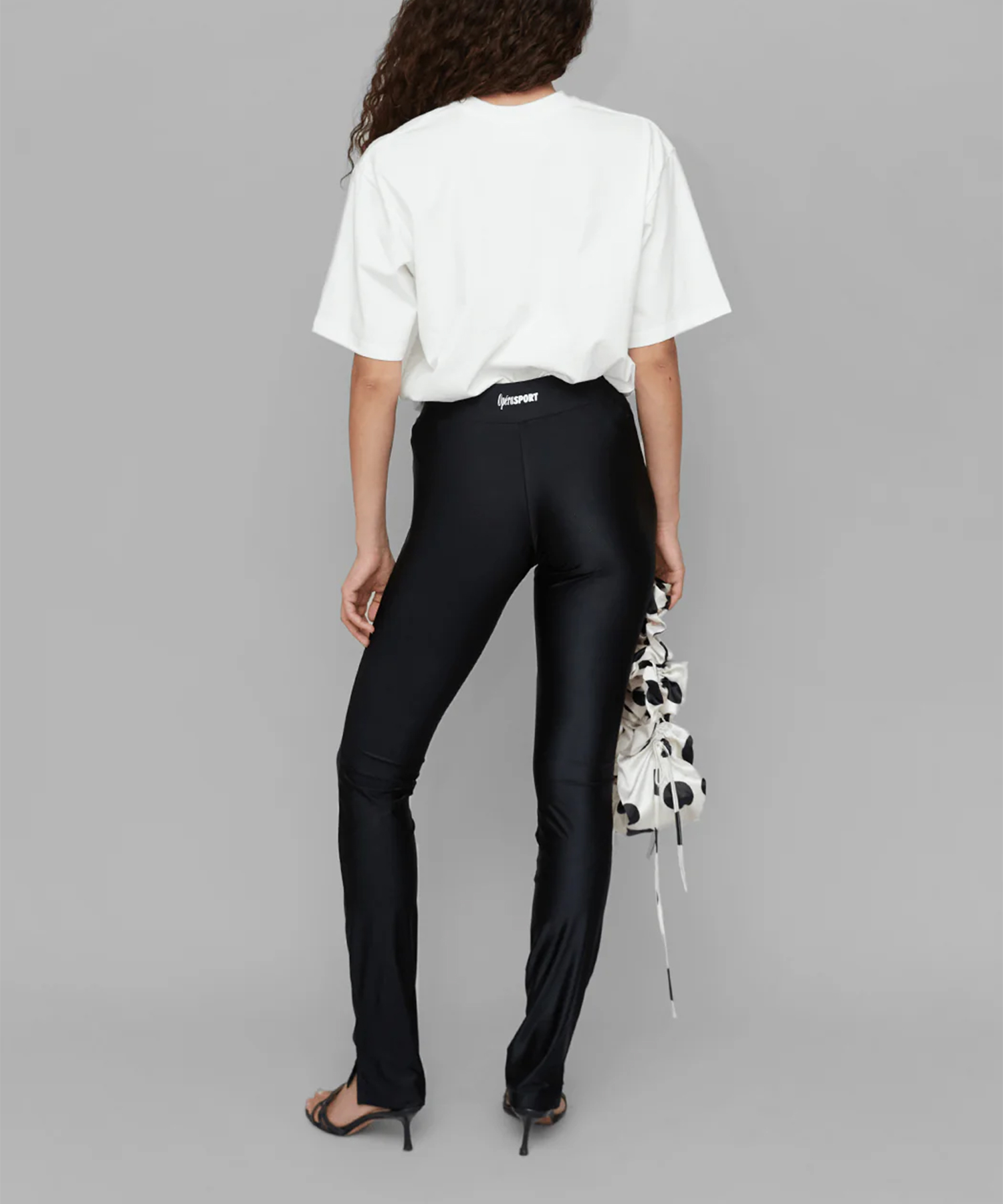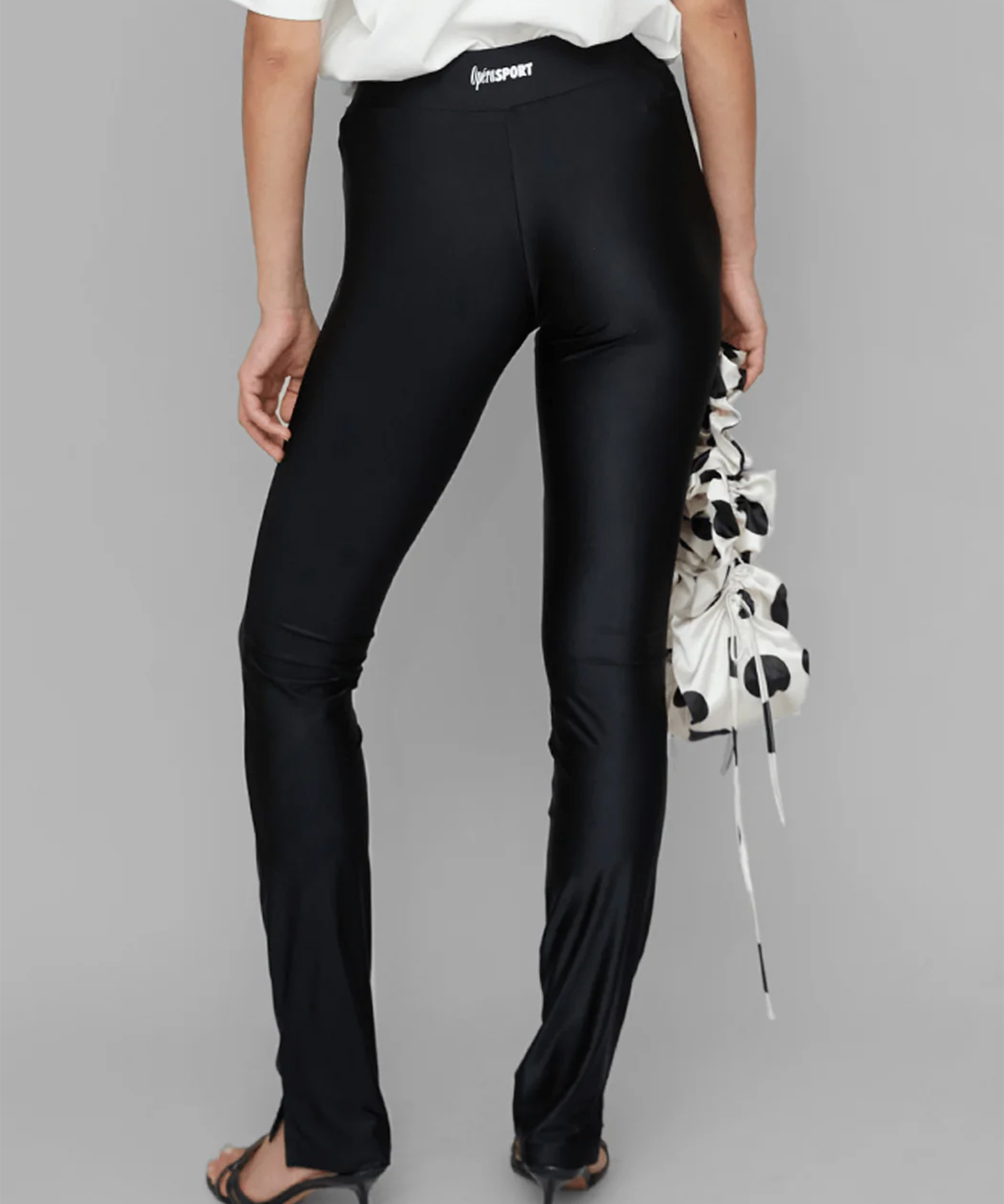 ブラックを基調としたデザインで、ハイウエストとスリムレッグのタイトフィットが特徴です。