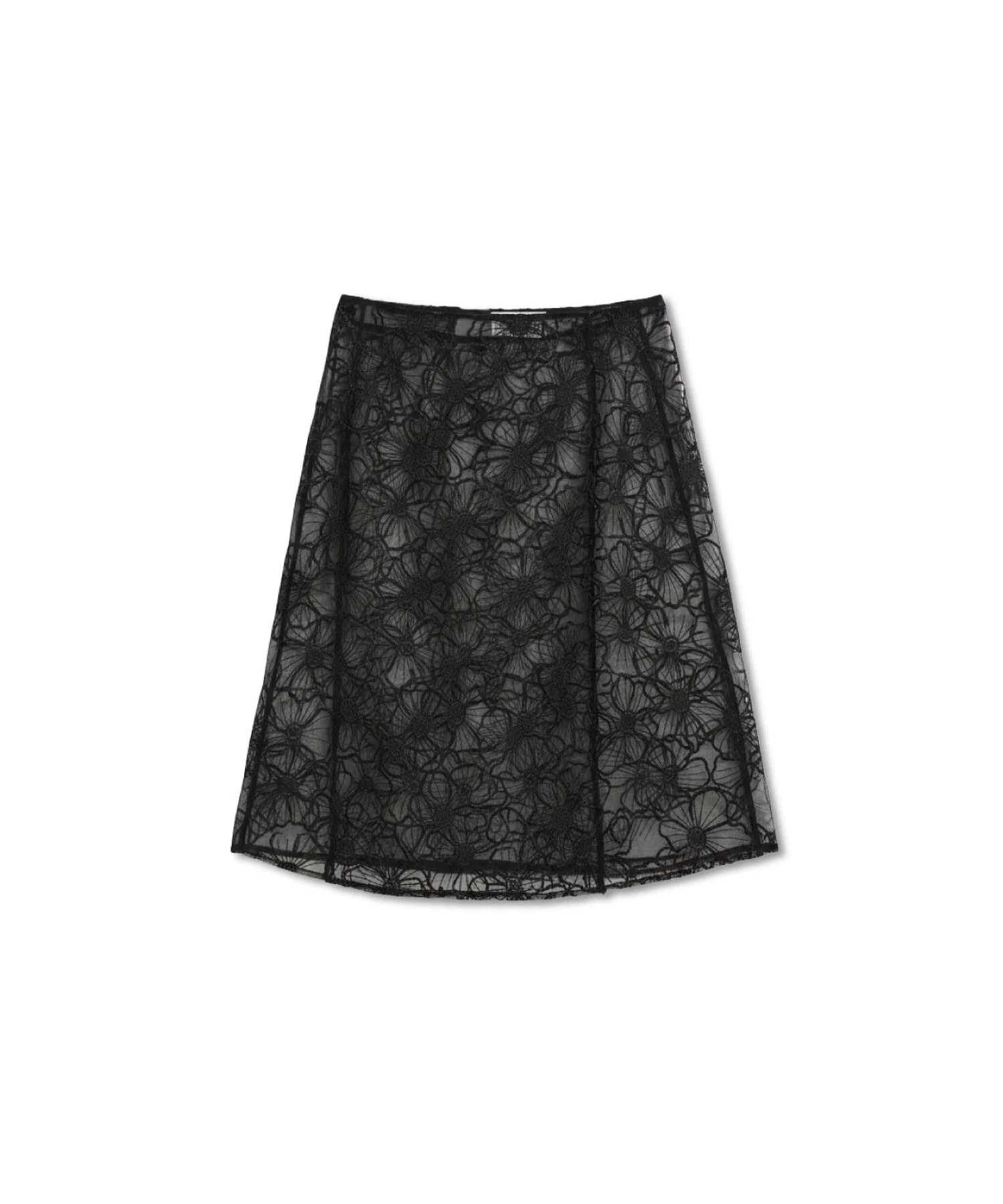 ホワイトのレース素材を使用したロングスカート。リサイクルポリアミド90%、リサイクルポリエステル10%のサステナブル素材で仕立てられています。