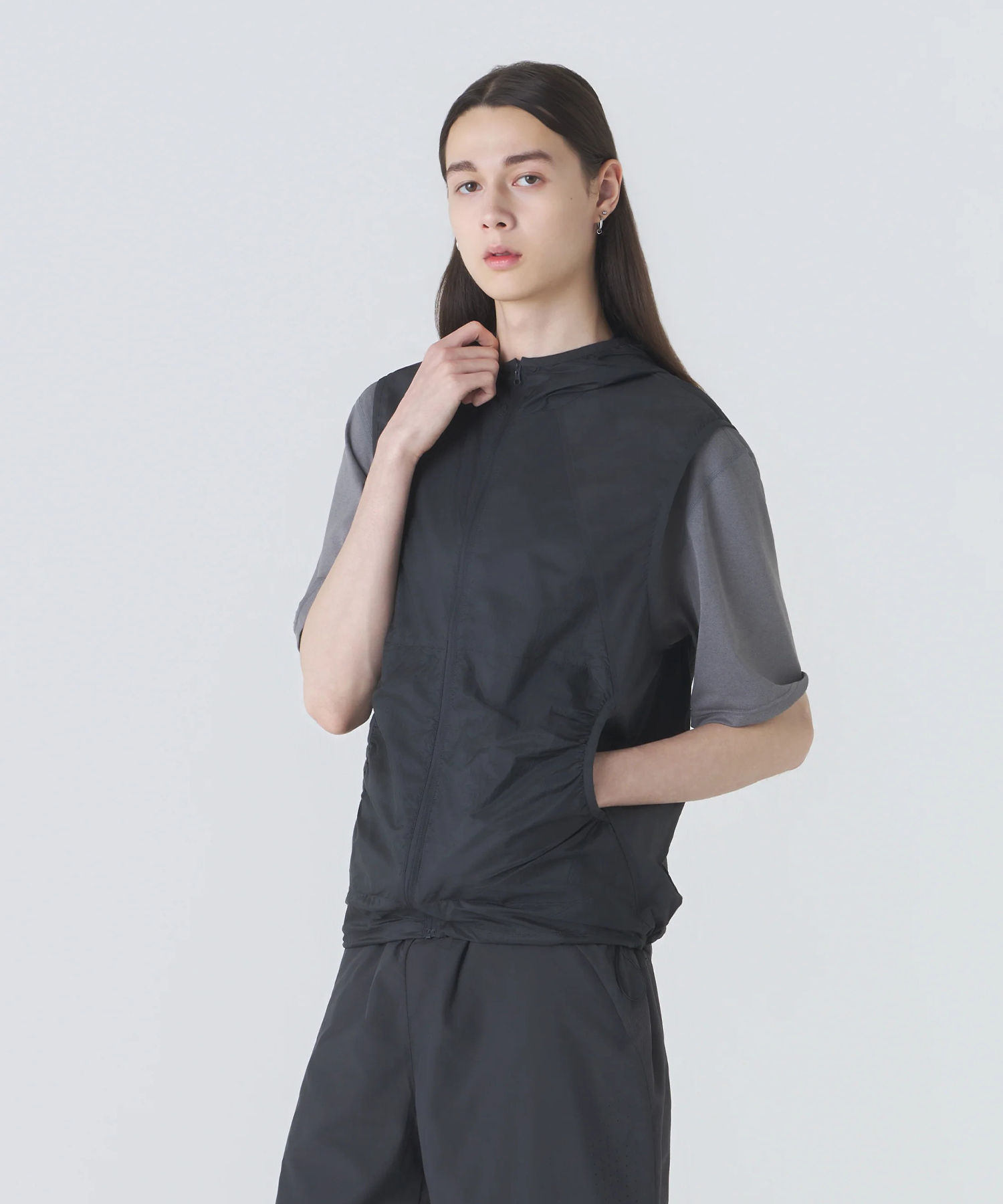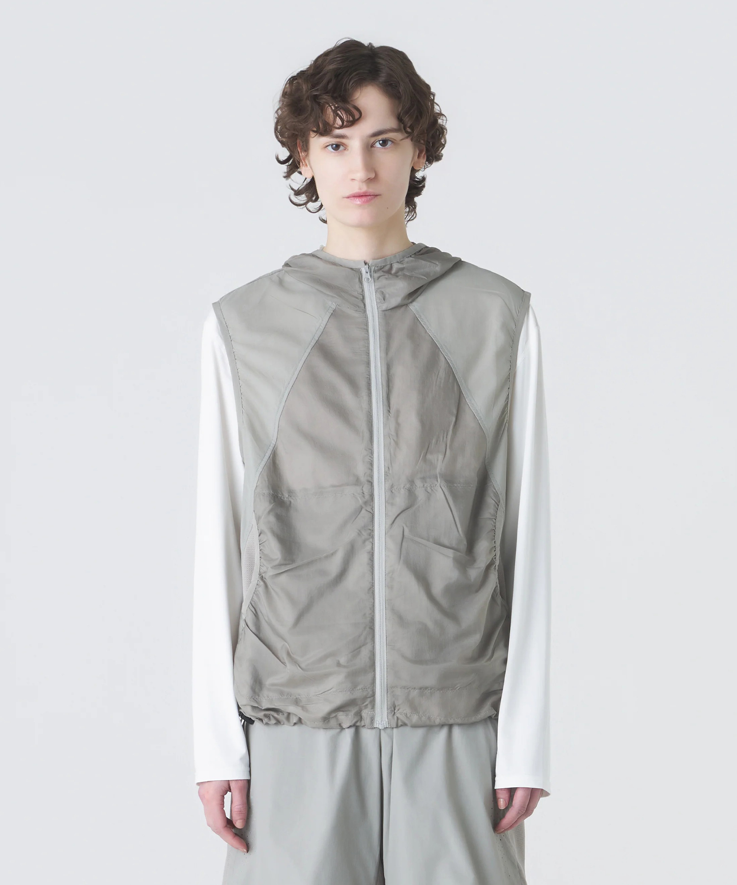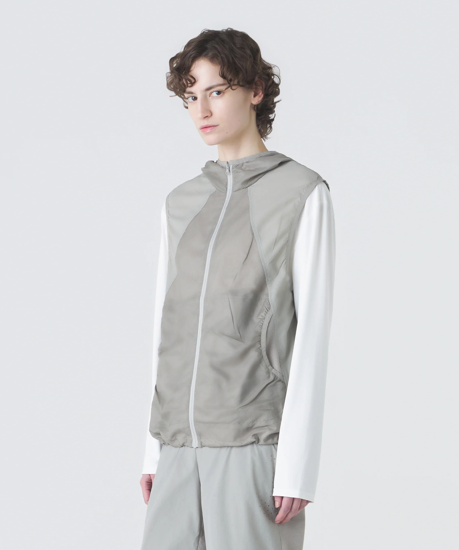 オービット LT テクニカルベストは、軽量なレイヤリングアイテムとして設計され、水に強さと通気性を両立するマルチファブリック構造を採用しています。