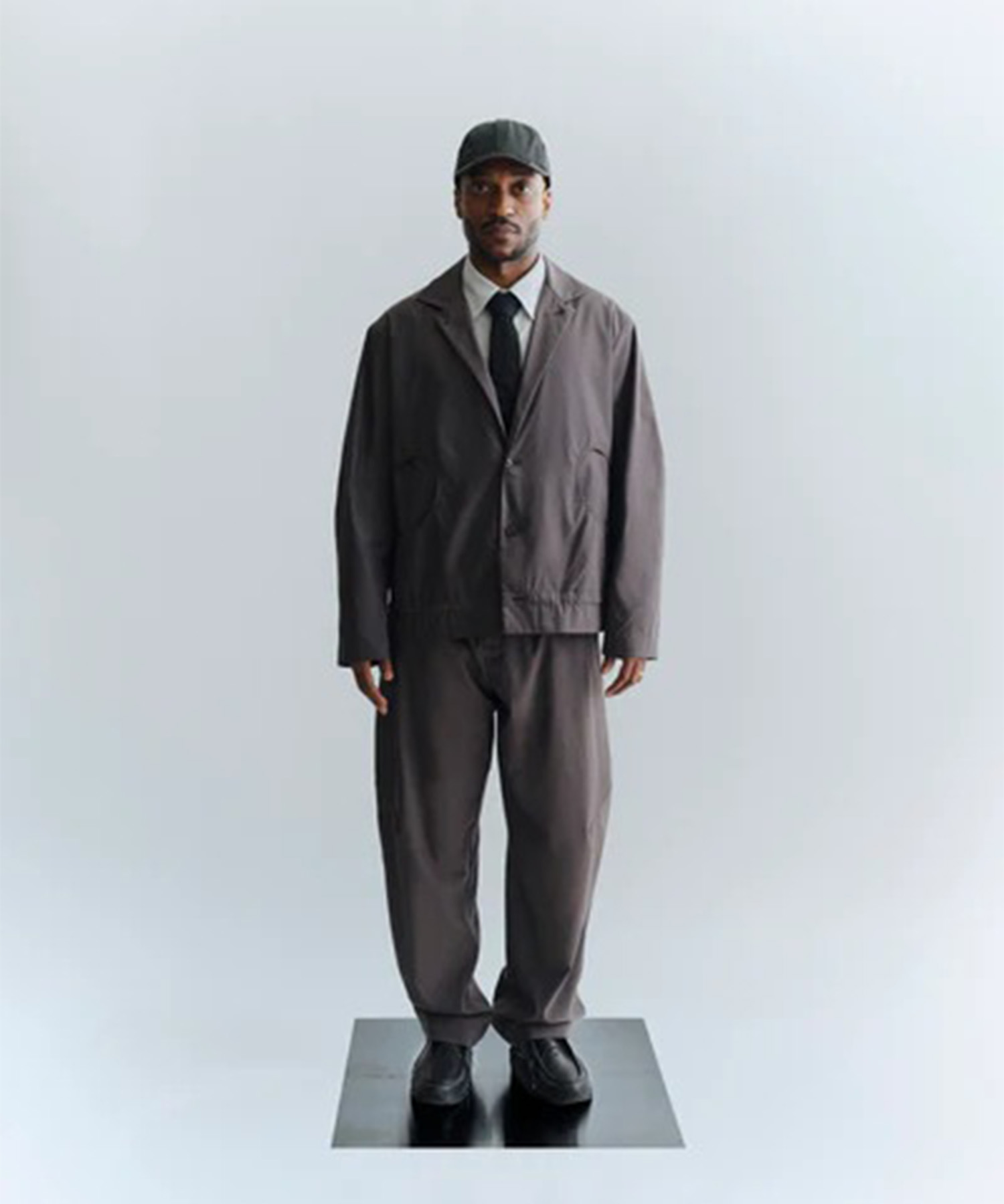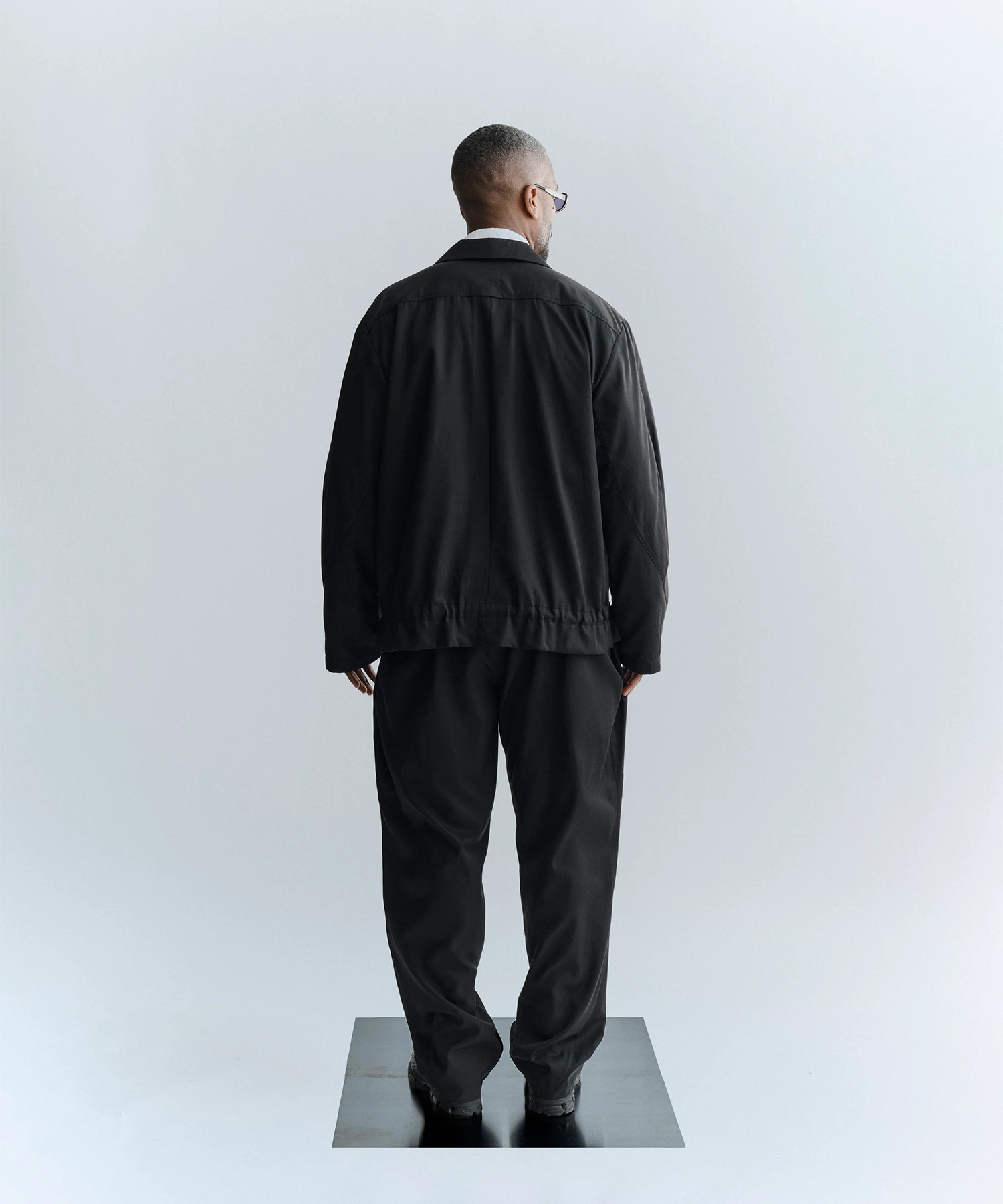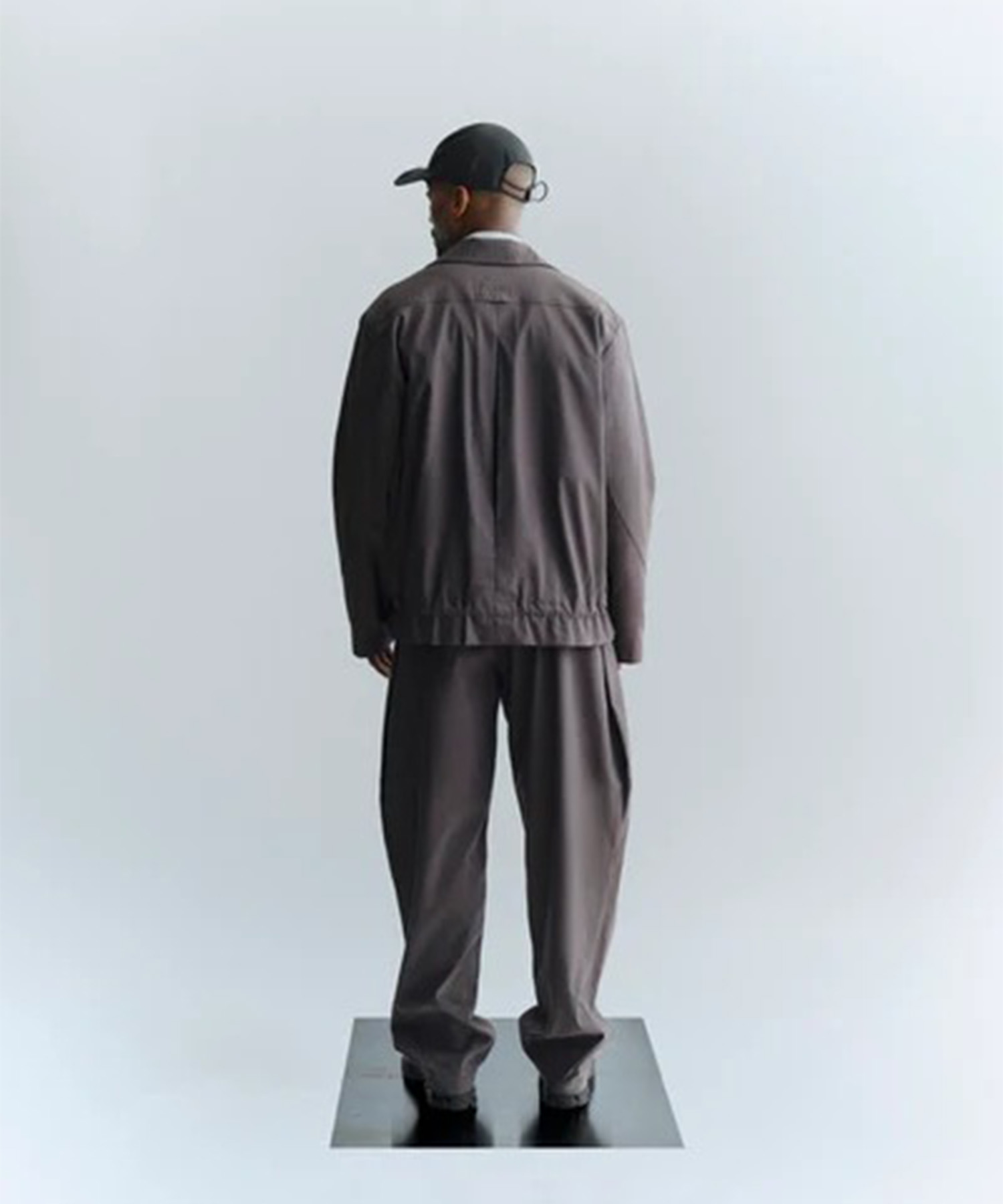 シグネチャーのロッカーループや、裾まで伸びるインバーテッドボックスプリーツにより可動性を高めています。