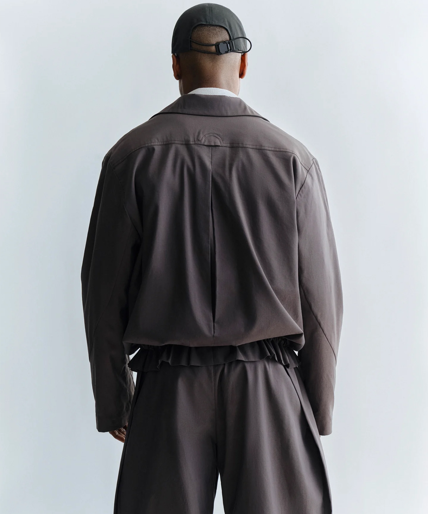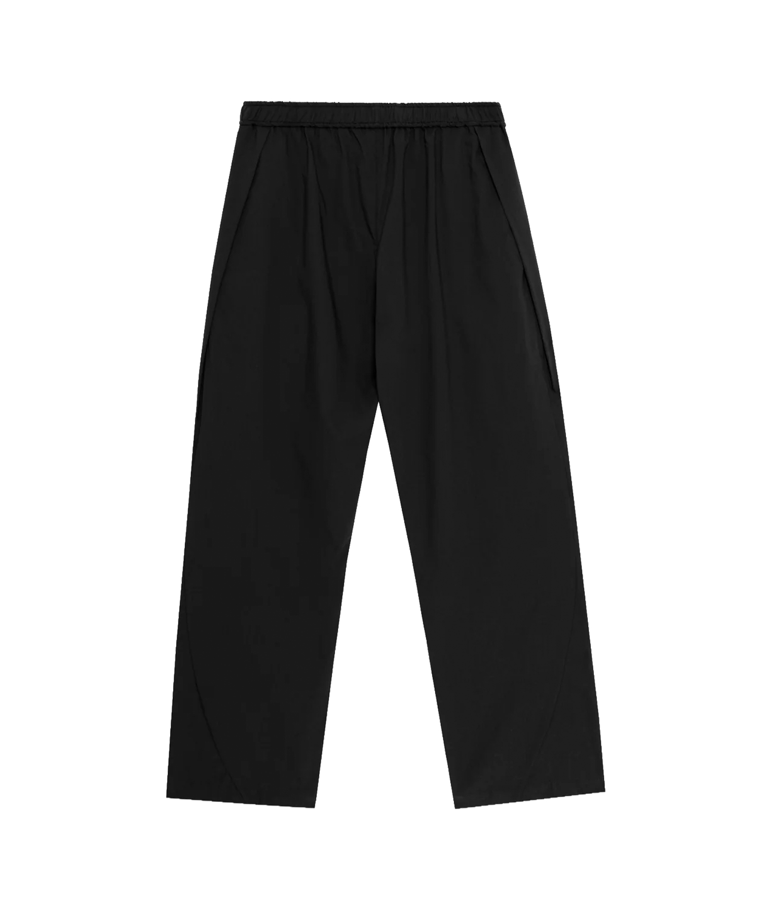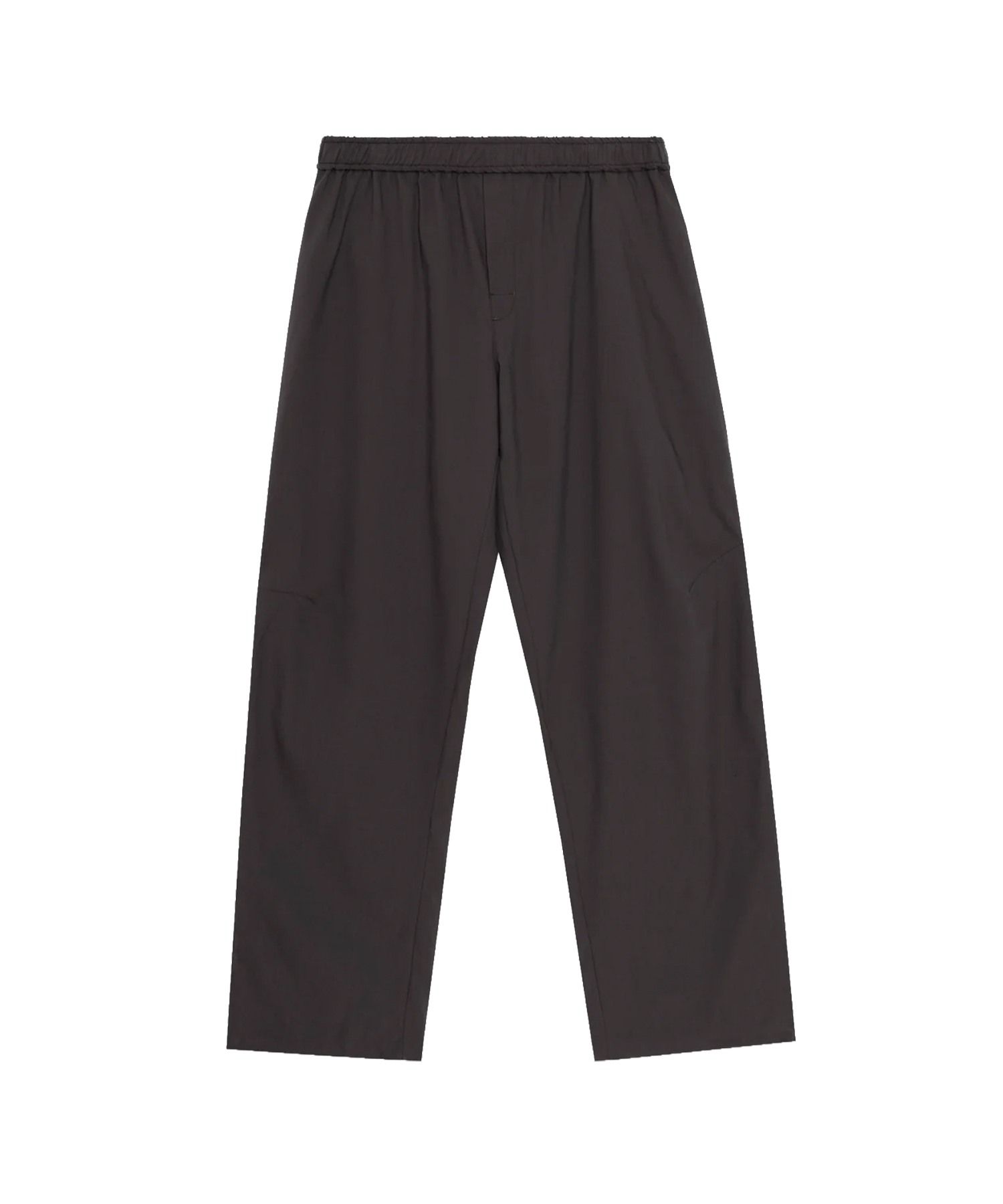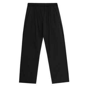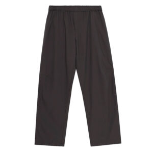 立体的な膝のアーティキュレーションと丁寧に配置されたダーツにより洗練されたシルエットを形成。フェイクフライとウエストゴム仕様で、快適性と上質な素材感を両立しています。