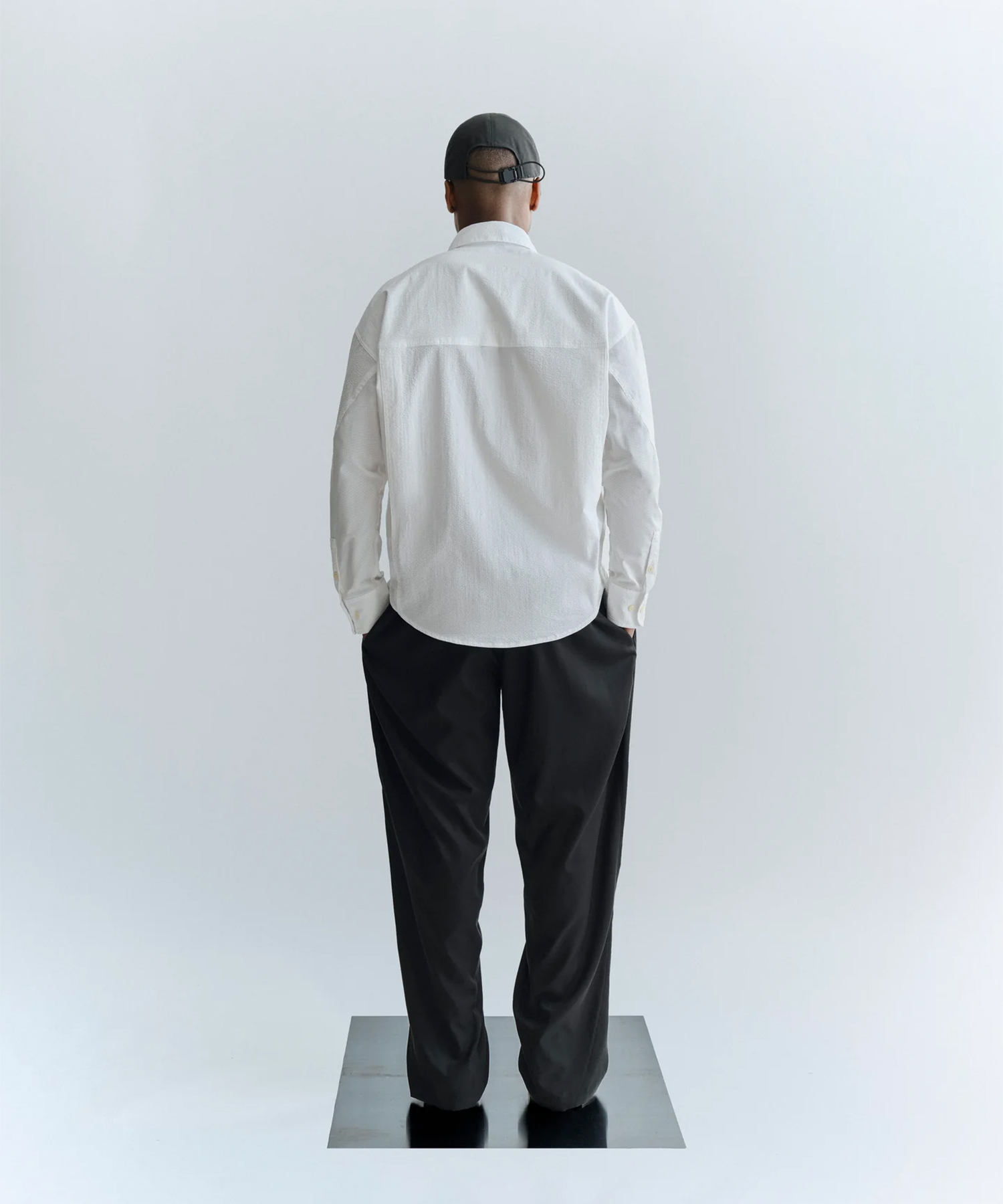 フレンチフラックス「Linopersempre」を使用し、ナチュラルなリネンの質感と上品なドレープが特徴のパンツ。エクスペリメンタルスタンダードパンツは、テーパードシルエットに深めのフロントプリーツを配したデザインです。