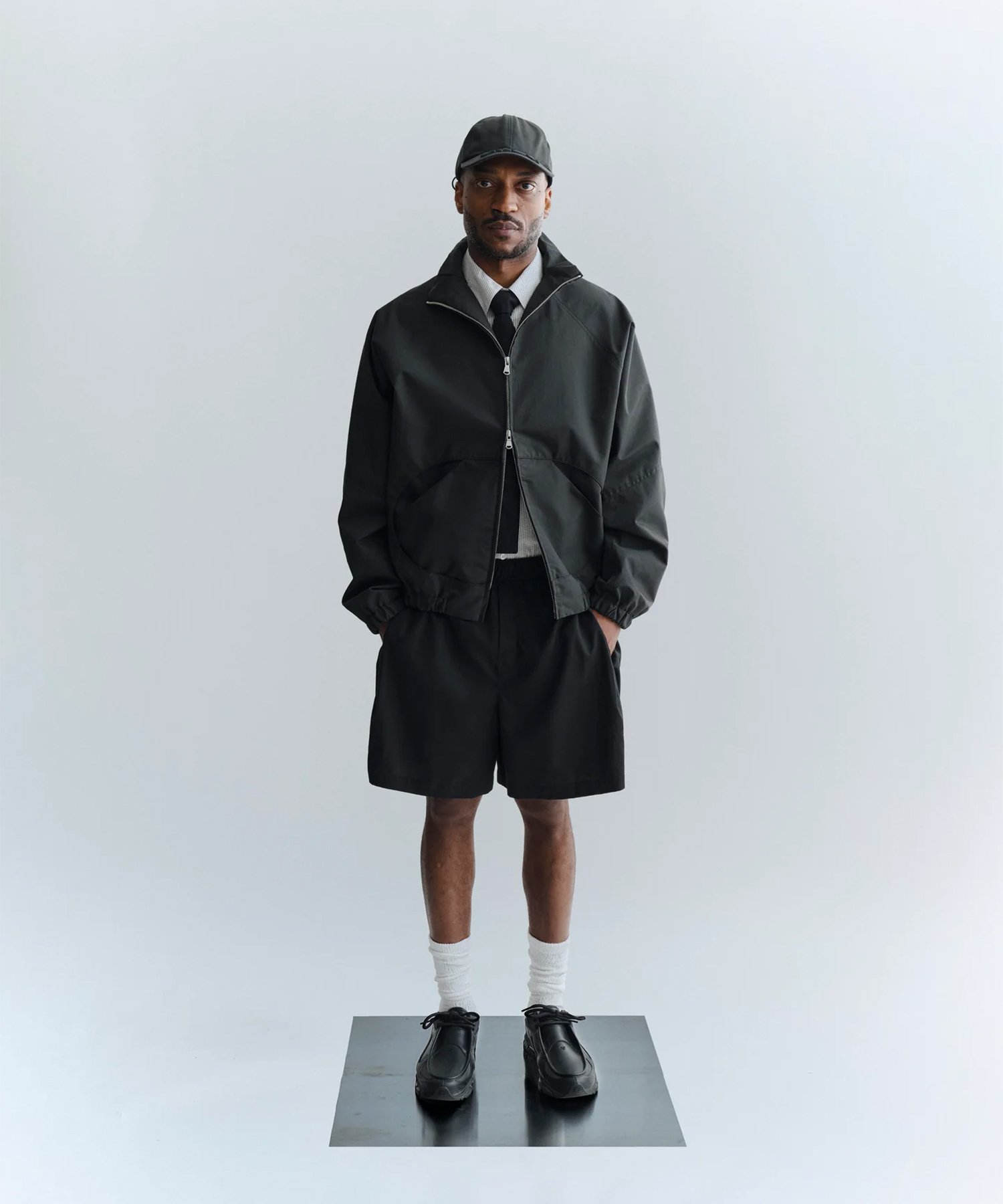 サステナブルなオーガニックコットンとリサイクルナイロンポプリンを使用し、C-zero撥水加工を施したテクニカルジャケット。裏地にはビスコース・ポリエステルのドビー生地を採用し、上質な肌触りを実現しています。