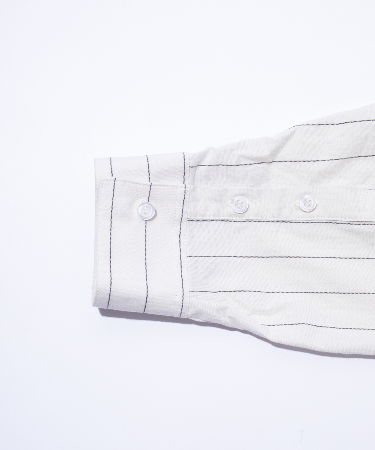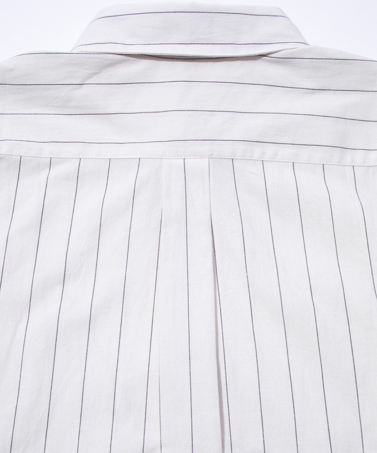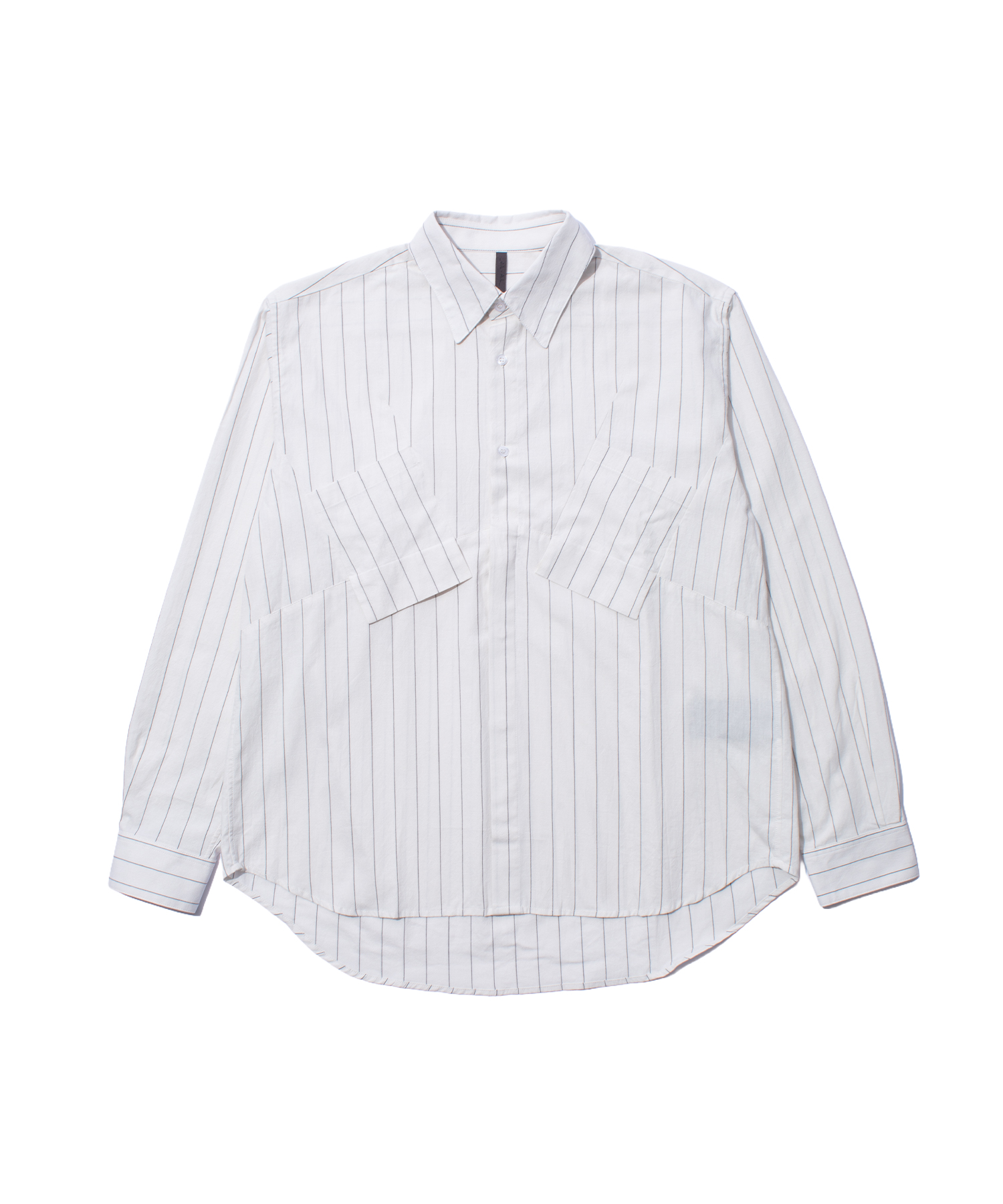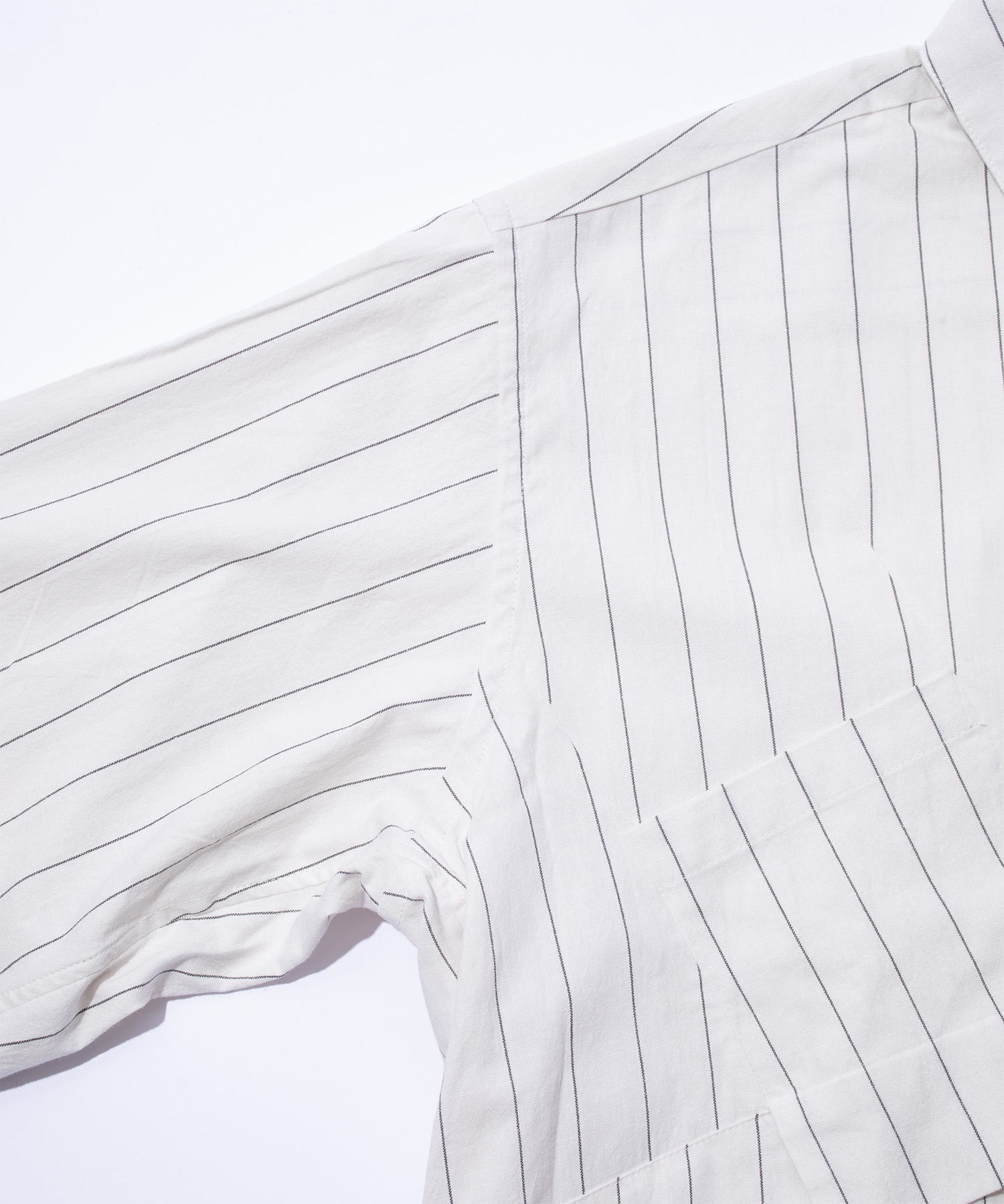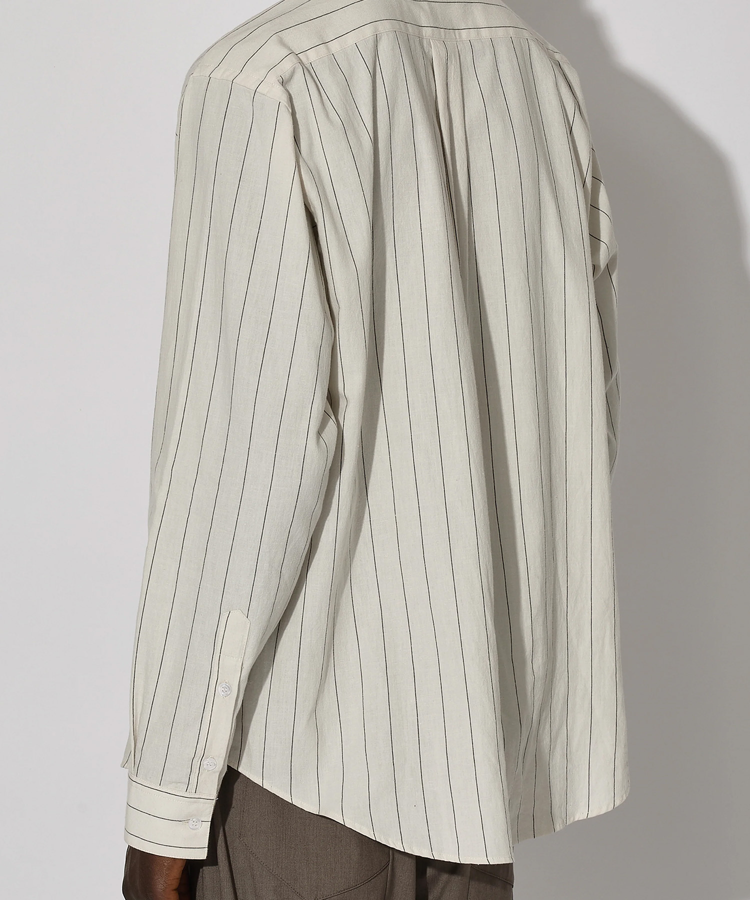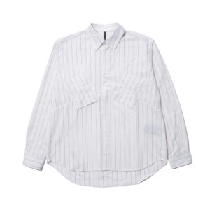 ストライプ柄とオールブラックのバリエーションで展開されるピエックシャツは、斜めに配されたヨークの上にダーツ入りポケットを重ねることで、ミニマルなシルエットにさりげない構造的な緊張感をもたらしています。