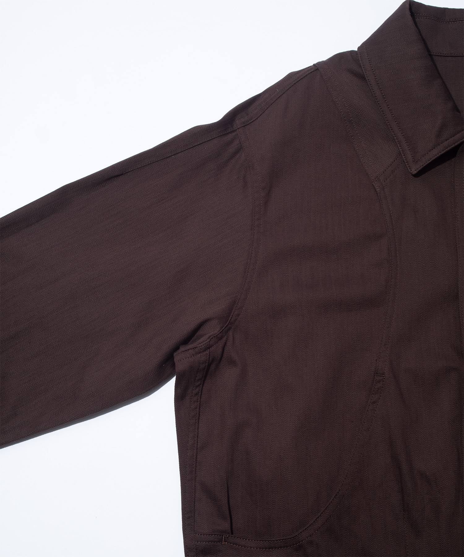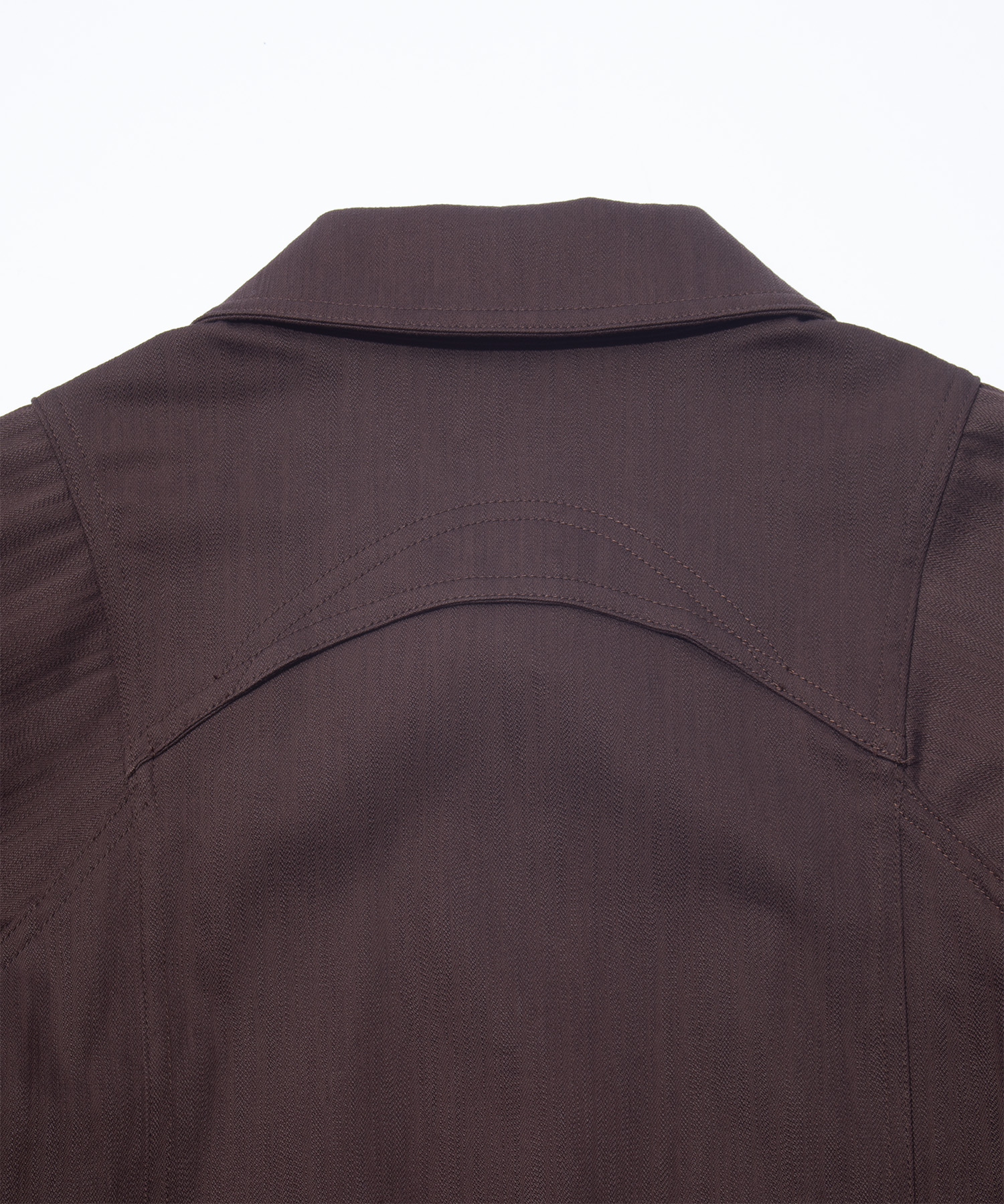 テクスチャードデニムを使用したトーネットジャケットは、立体的なパターンカッティングを採用し、鋭いダーツによって生地の表面を再構築。彫刻的な緊張感を生み出しています。