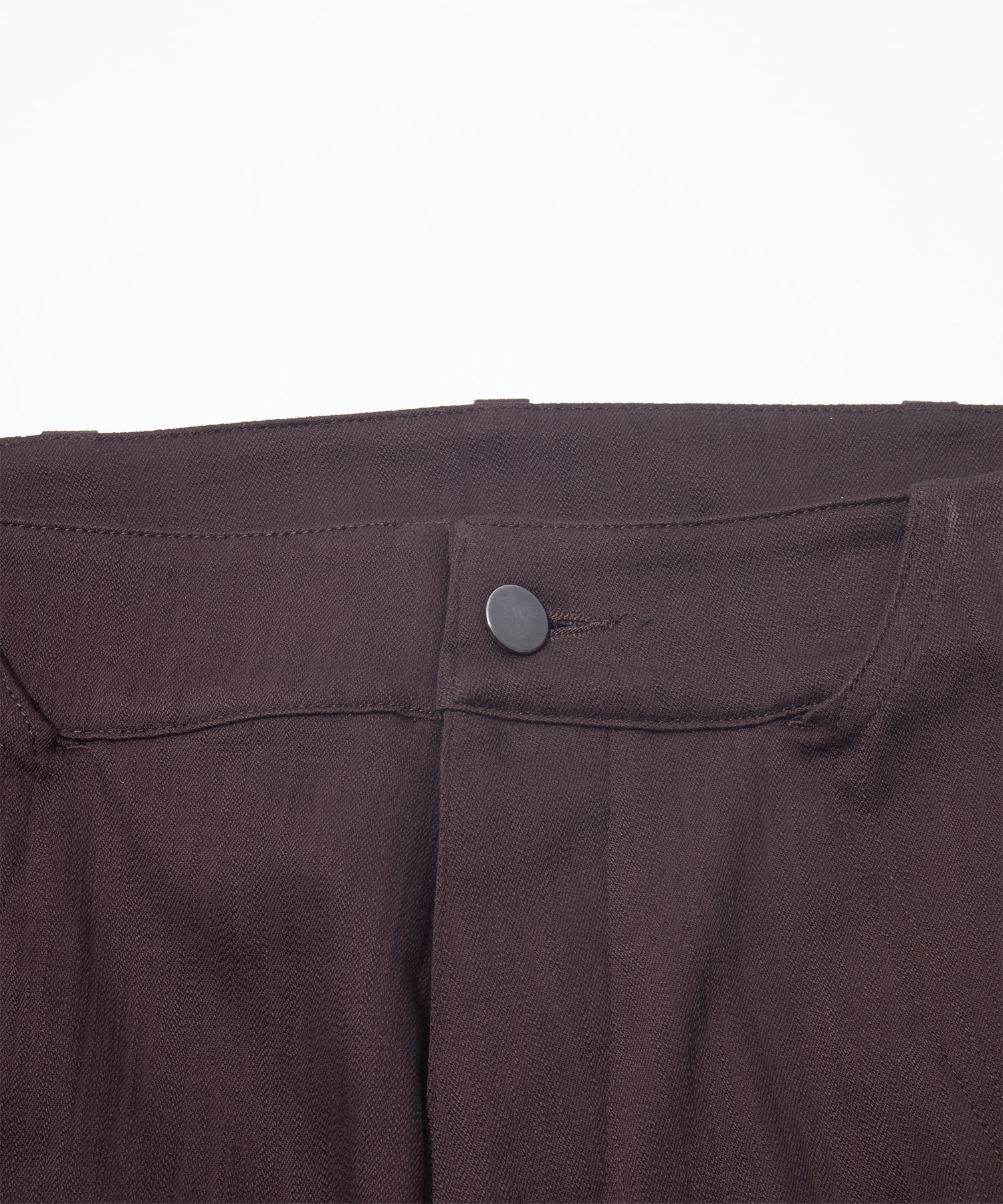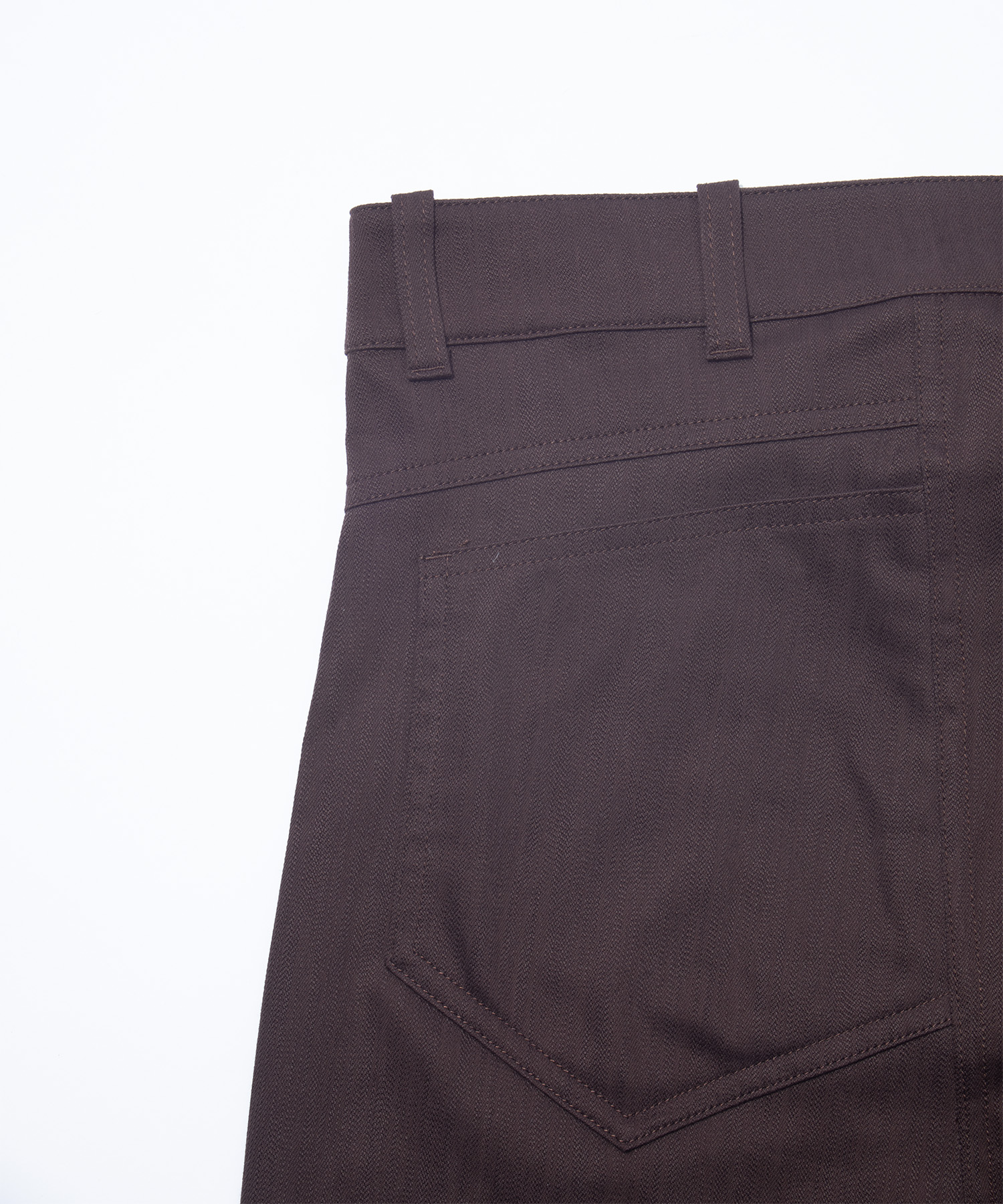 テクスチャードデニムで仕立てられたトーネットトラウザーズは、バックポケットにダーツを施して内側へテーパードさせることで、後ろ身頃のシルエットを整えています。