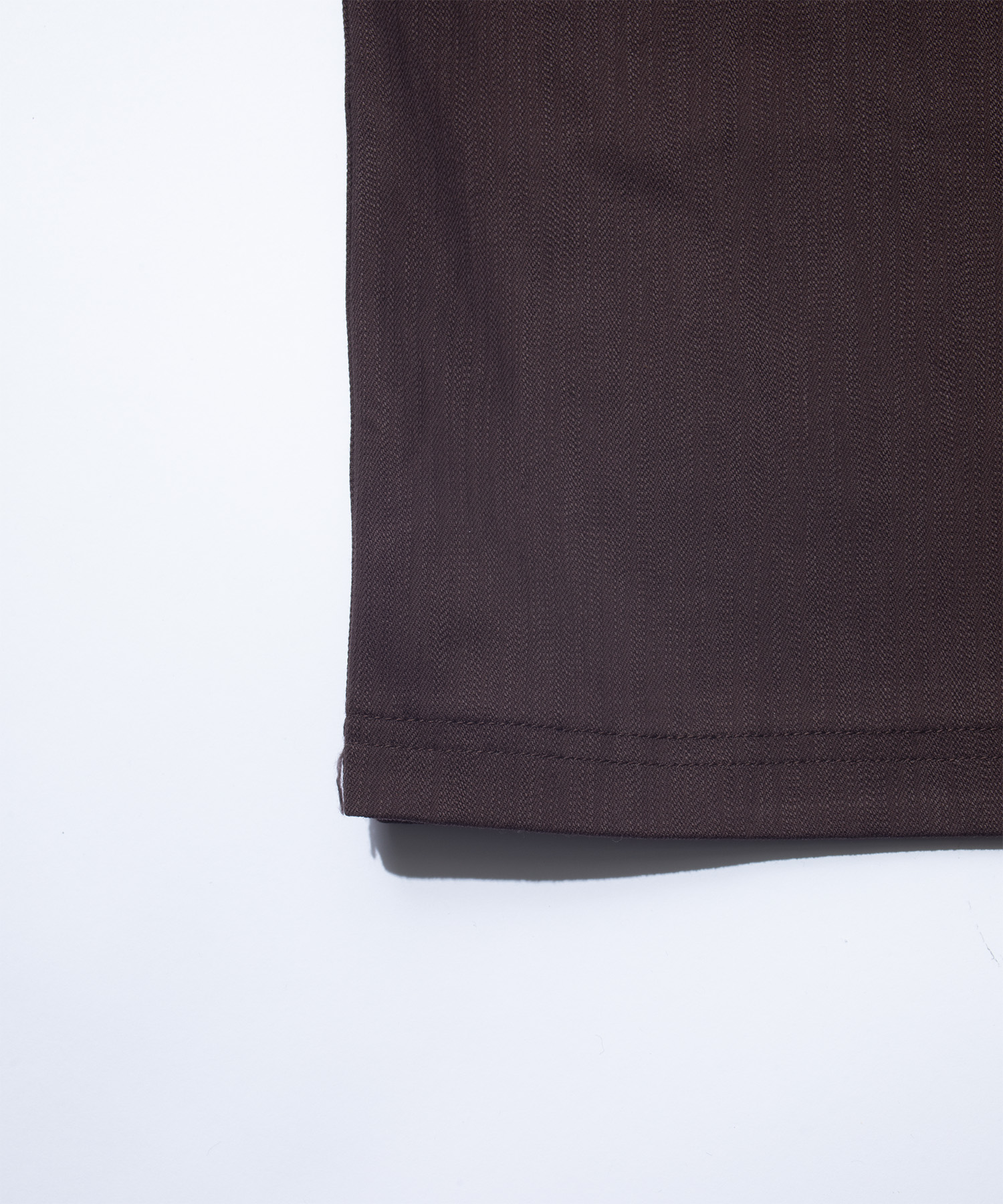 フロントには一体型のベルトループが身頃から立ち上がり、ウエストバンドをまたいでトップエッジで美しく仕上げられています。