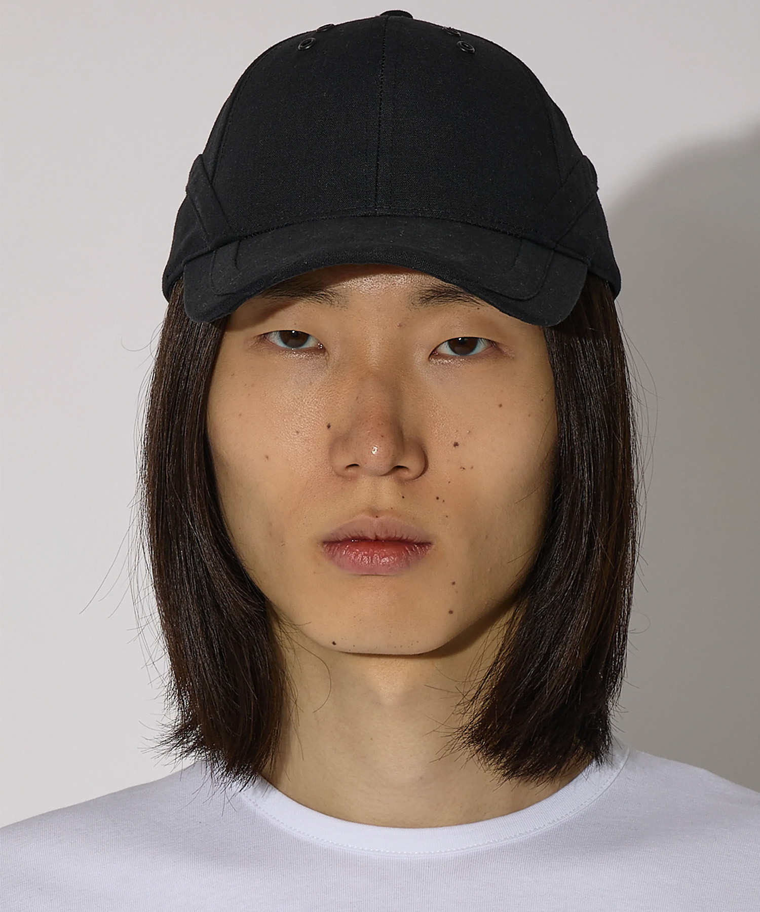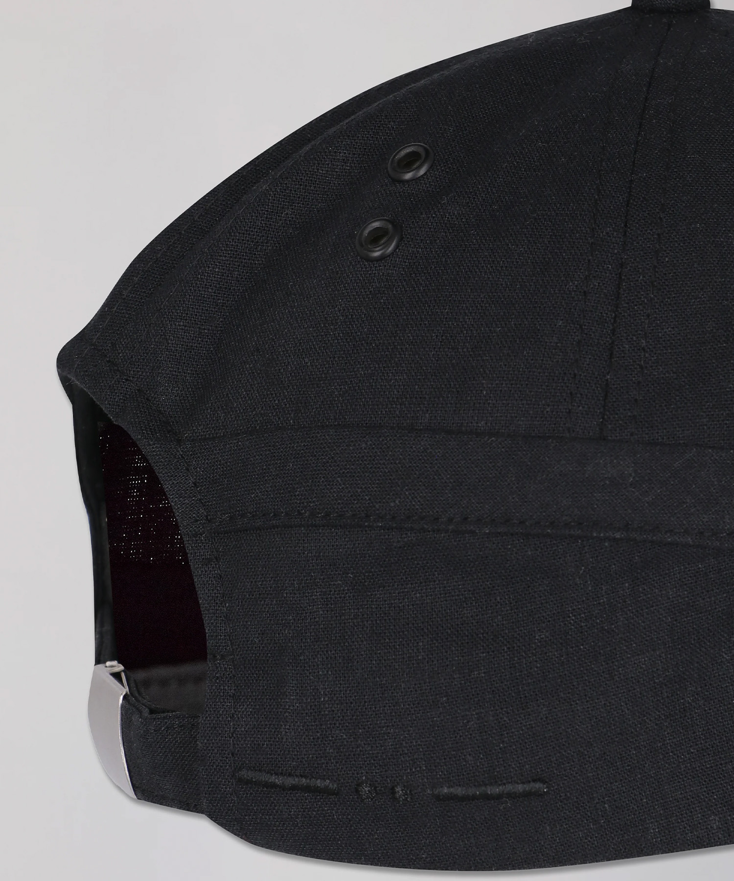 軽やかでドライな質感のリネン素材を使用したPieck Capは、つばから後部へと流れるように走るトロンプルイユ(だまし絵)風のバインディングが、クラウン全体にひとつの動きを描き出すデザインが特徴です。