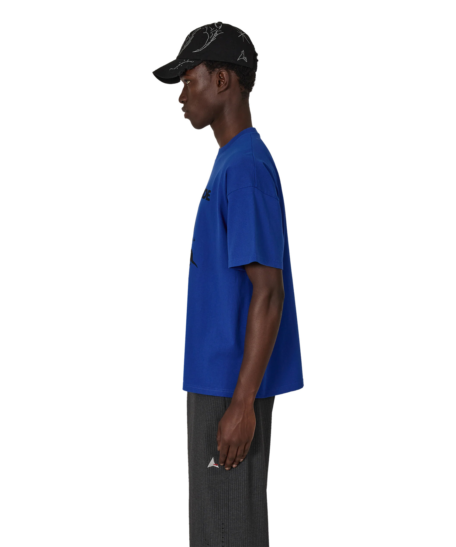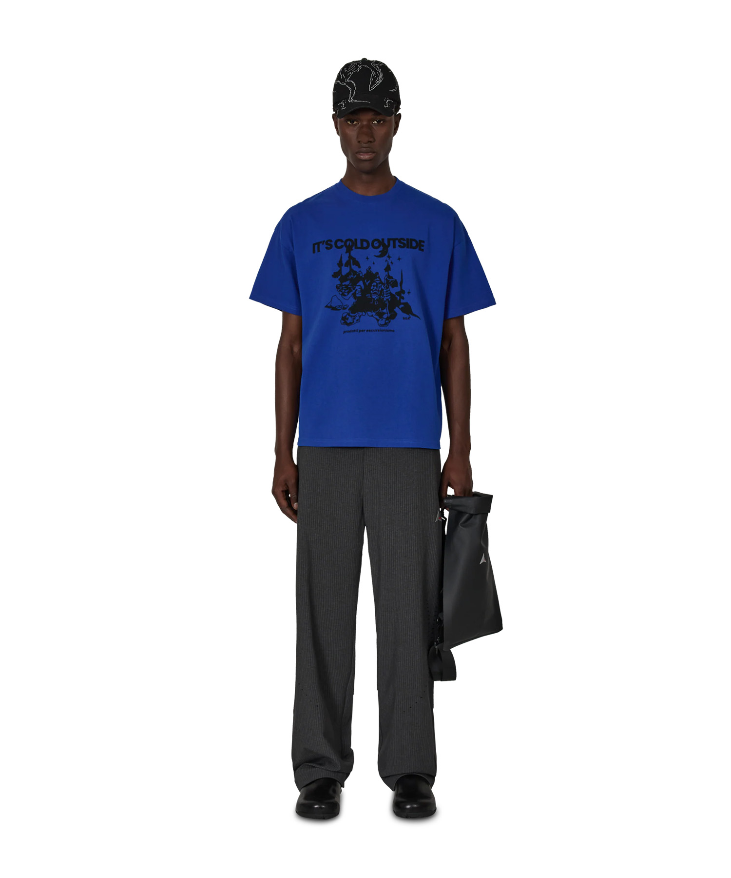 フロントにはコントラストの効いたグラフィックプリントを施し、シンプルながらも存在感のあるデザインに仕上げています。