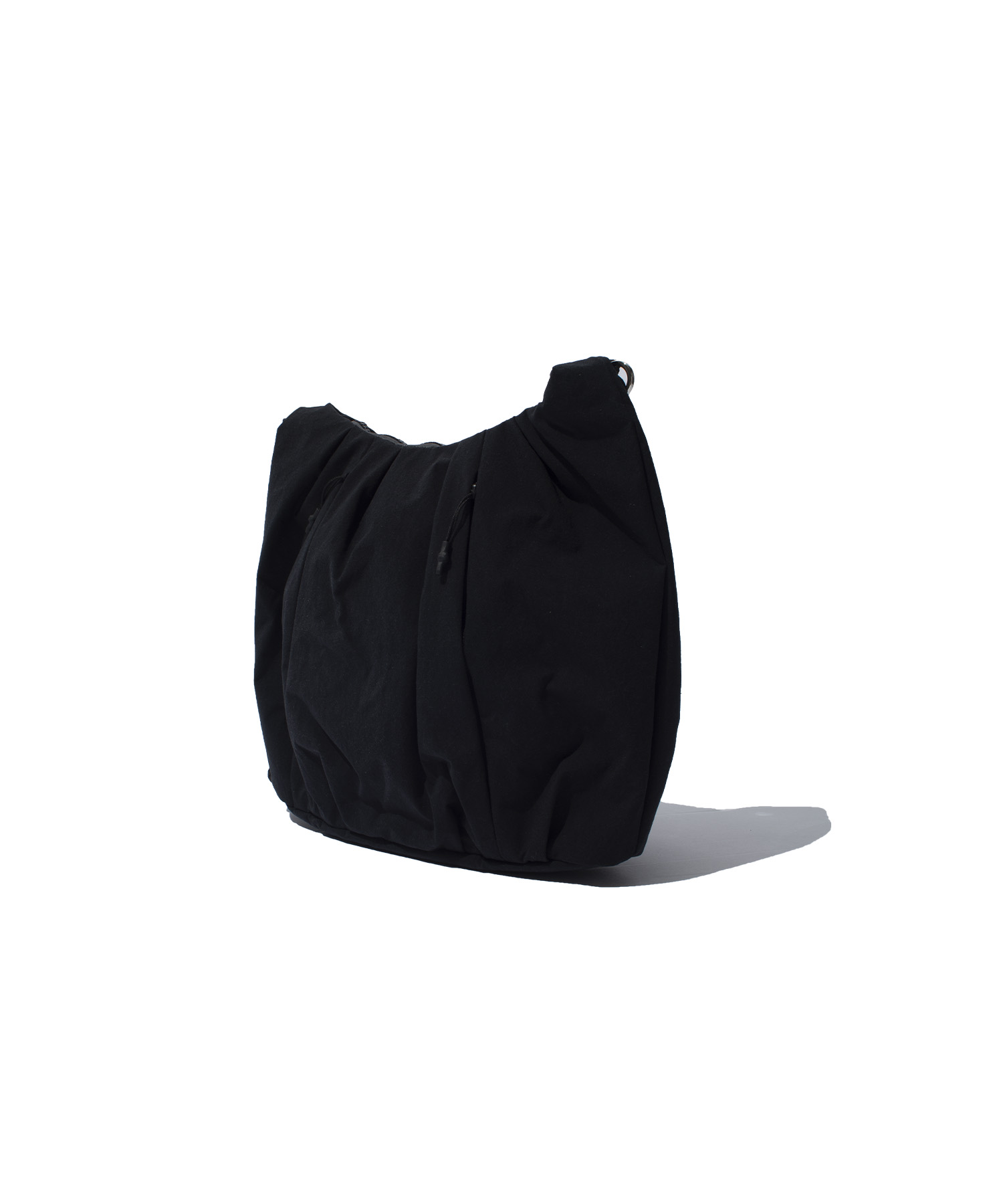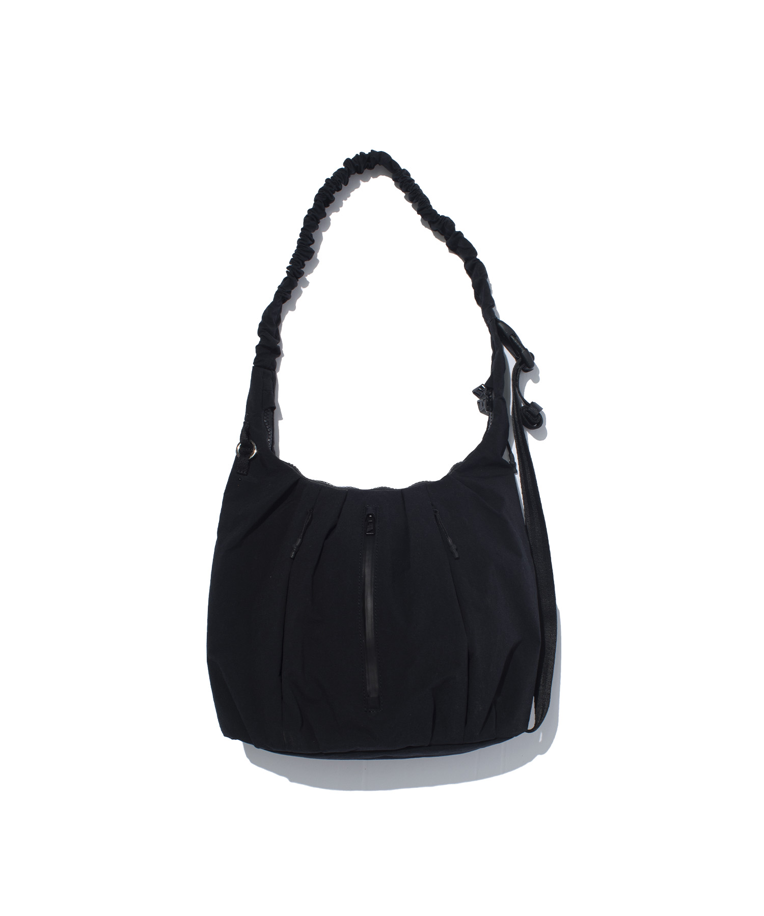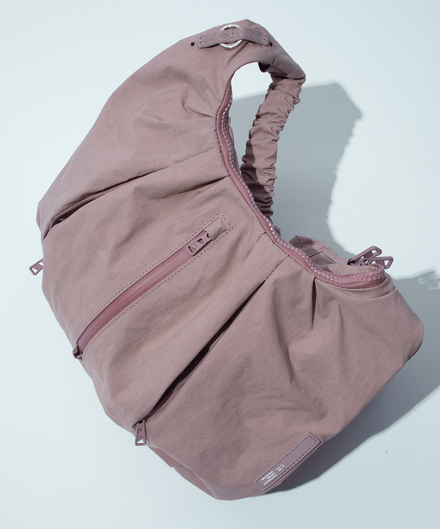 構造的なタックワークと、変化するシルエットが特徴のショルダーバッグ。