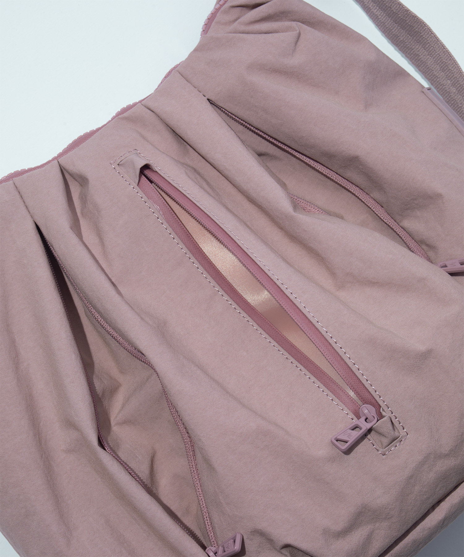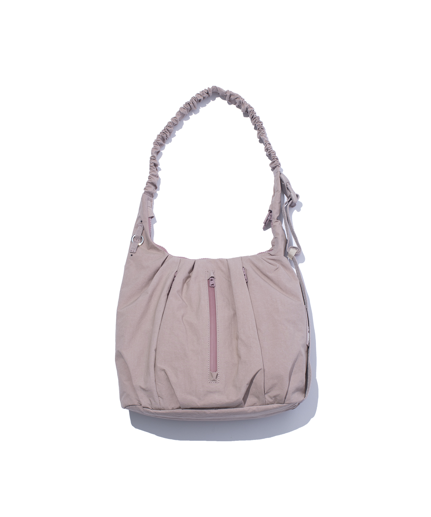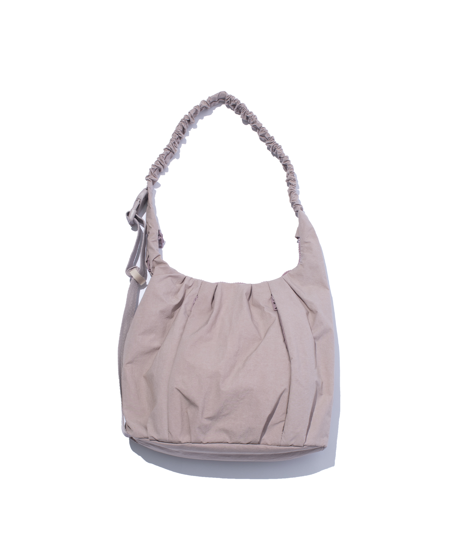 構造的なタックワークと、変化するシルエットが特徴のショルダーバッグ。