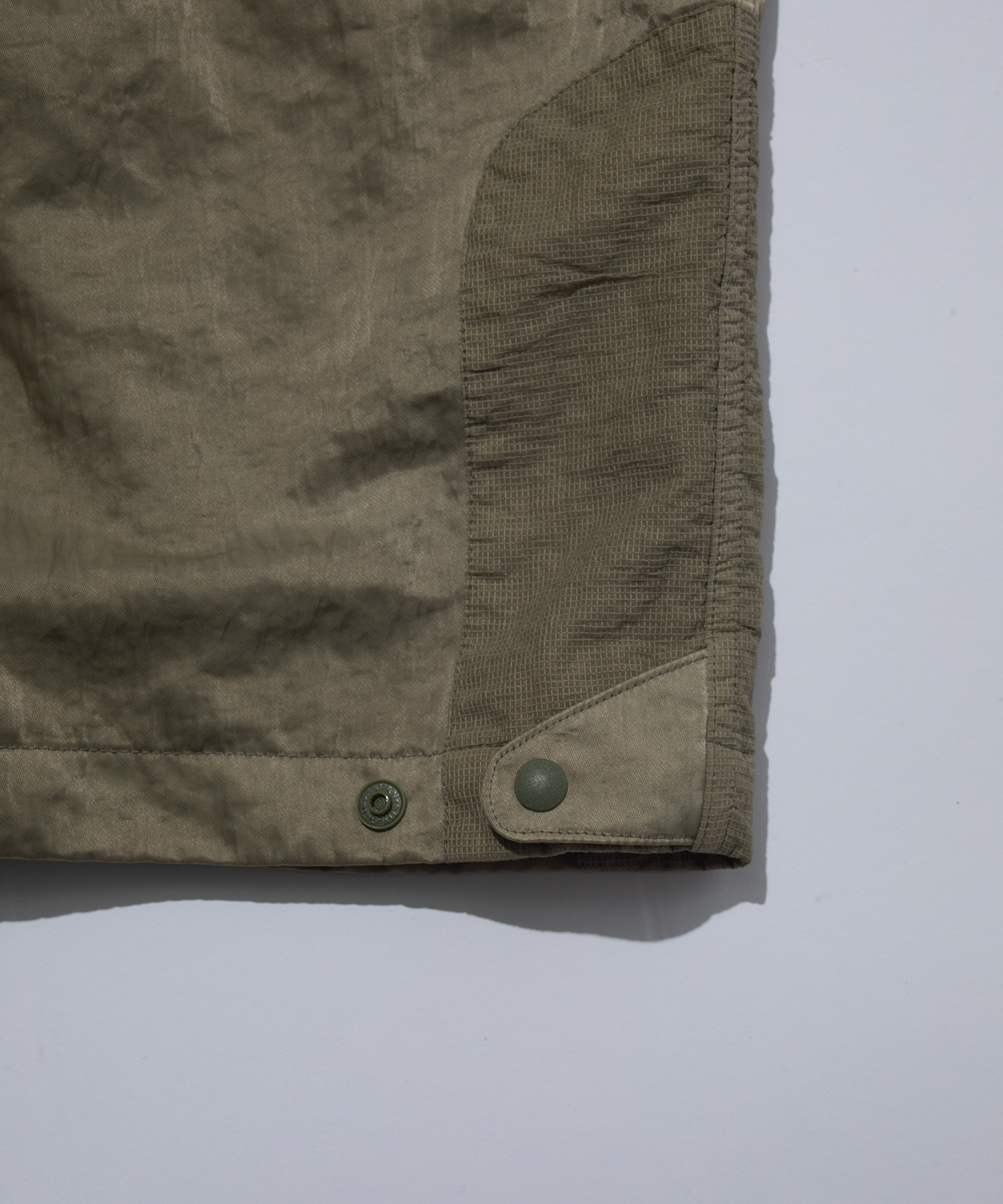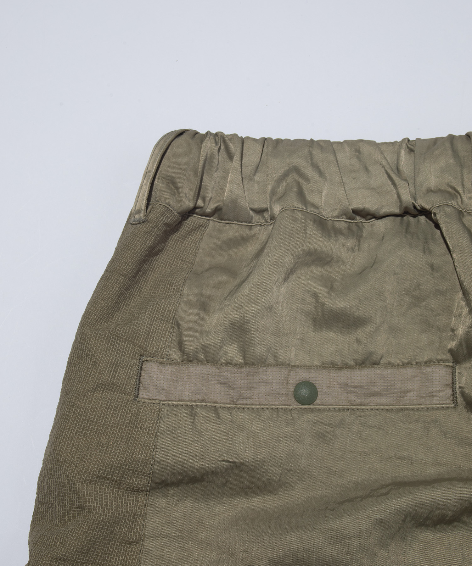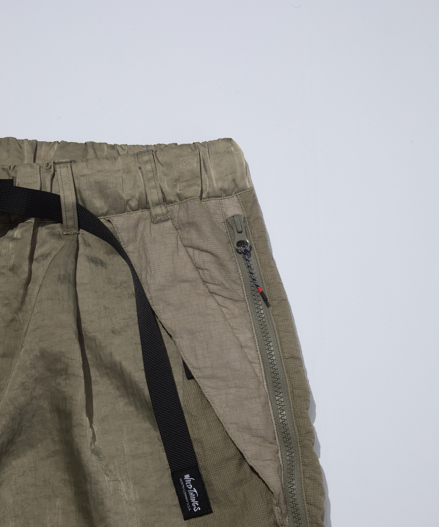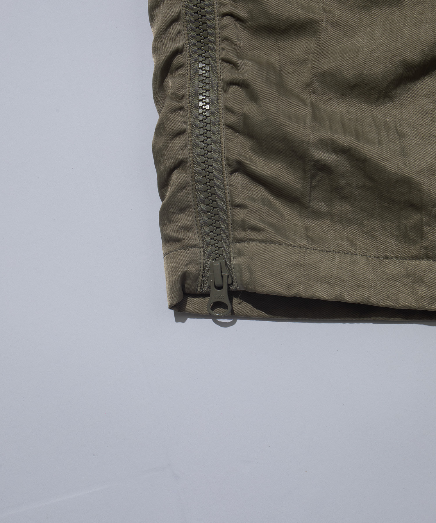 両サイドに配した縦長のジップは、ECWCSパンツから着想を得たディテールで、開閉によりシルエットの可変が可能です。