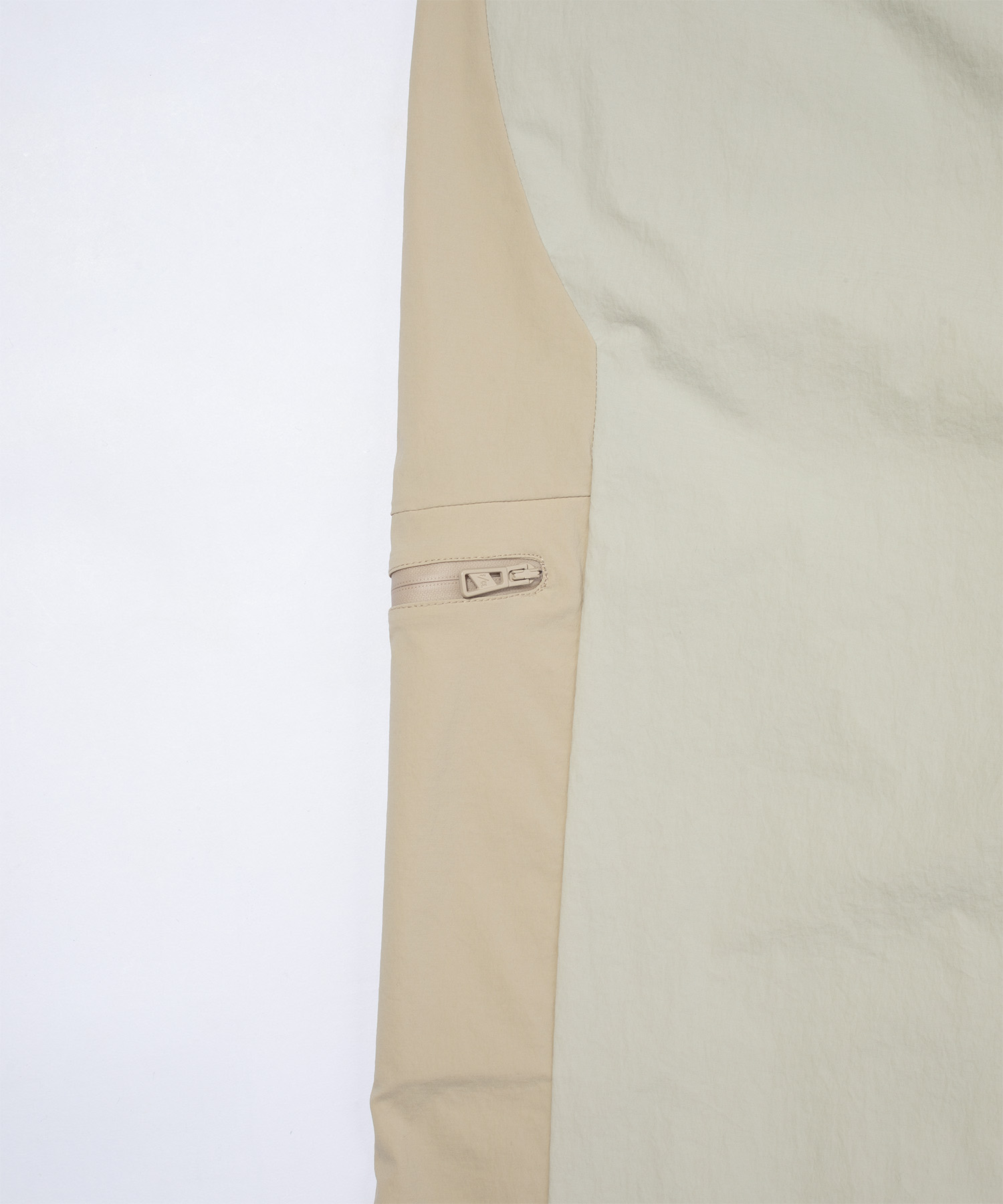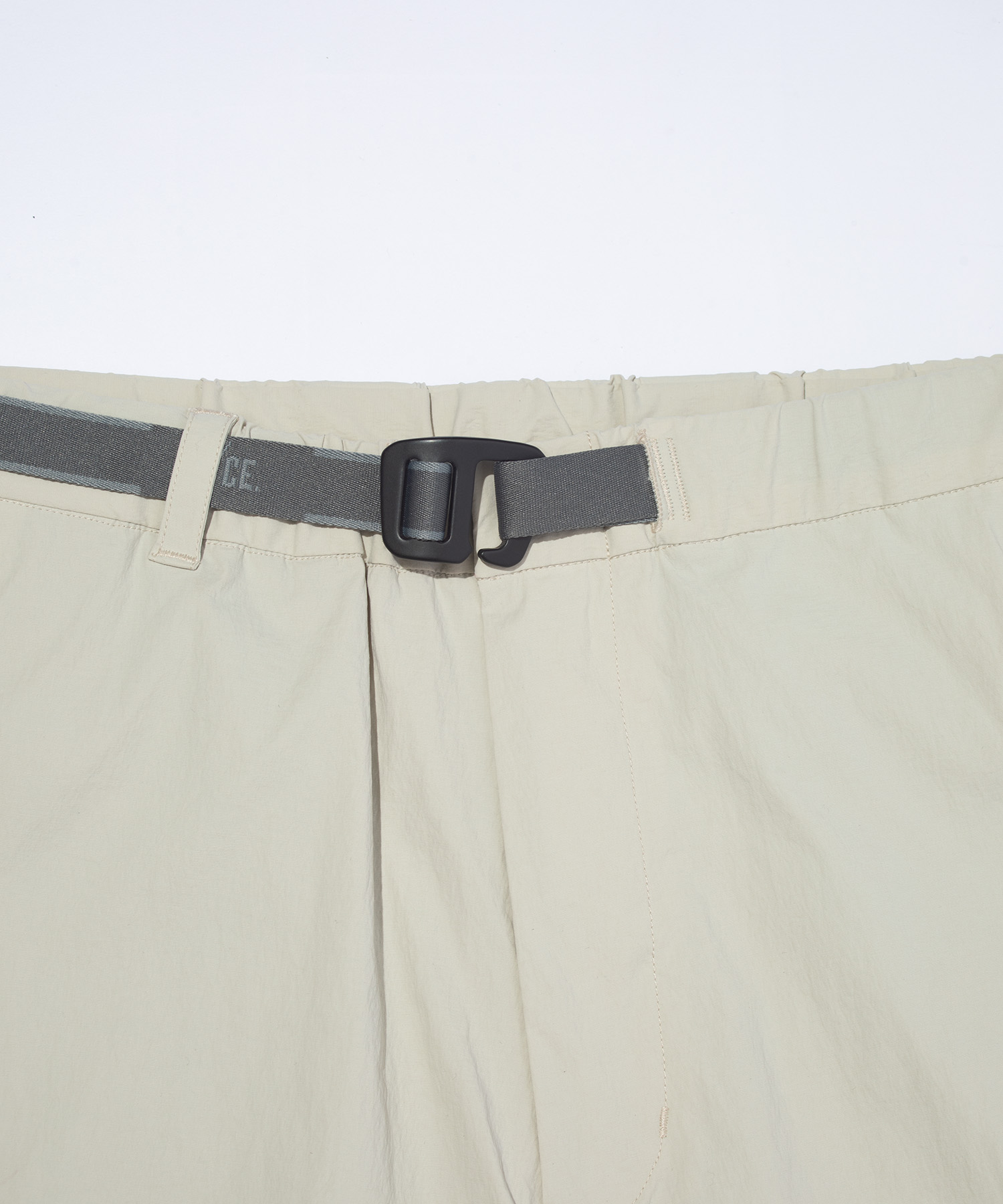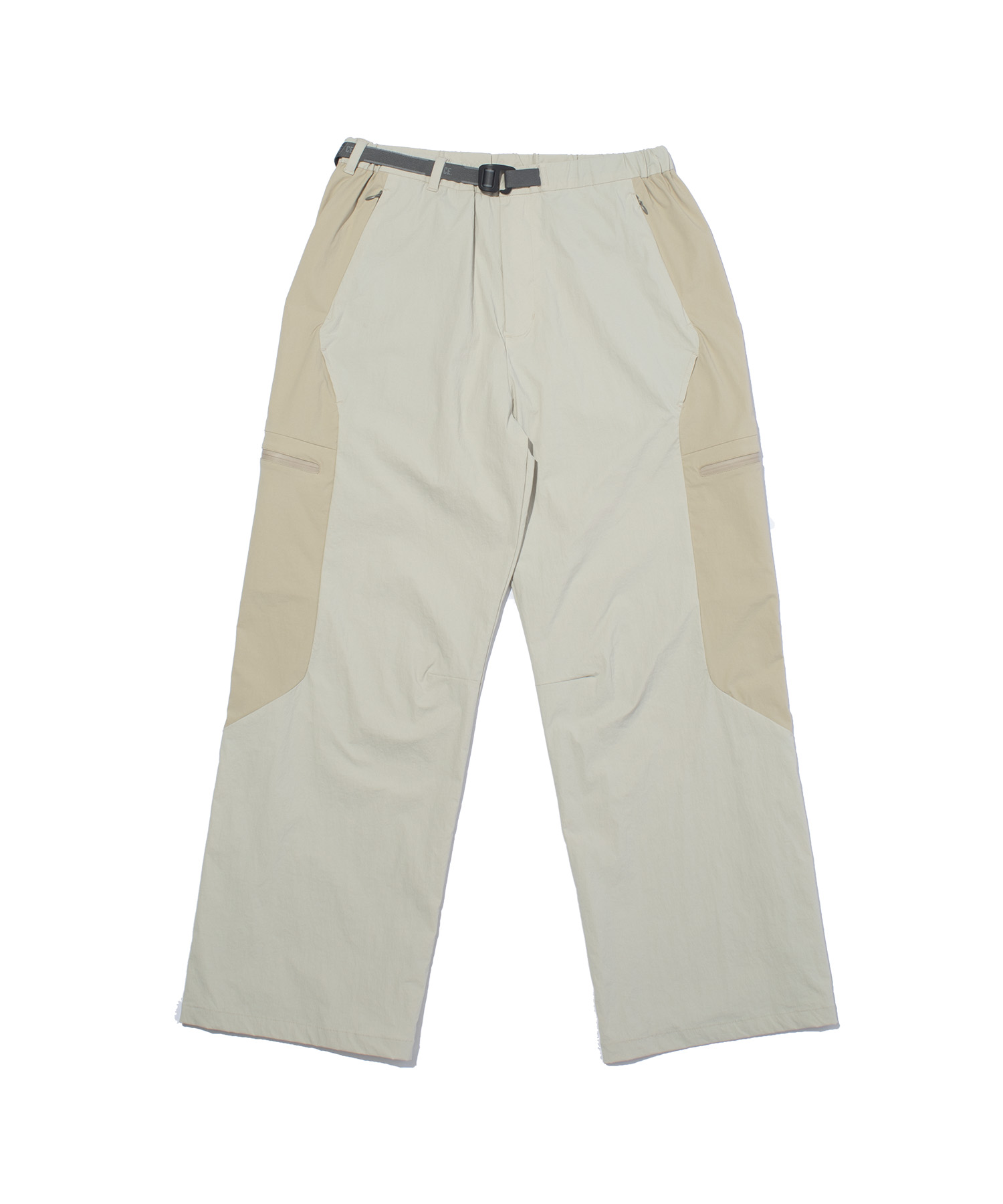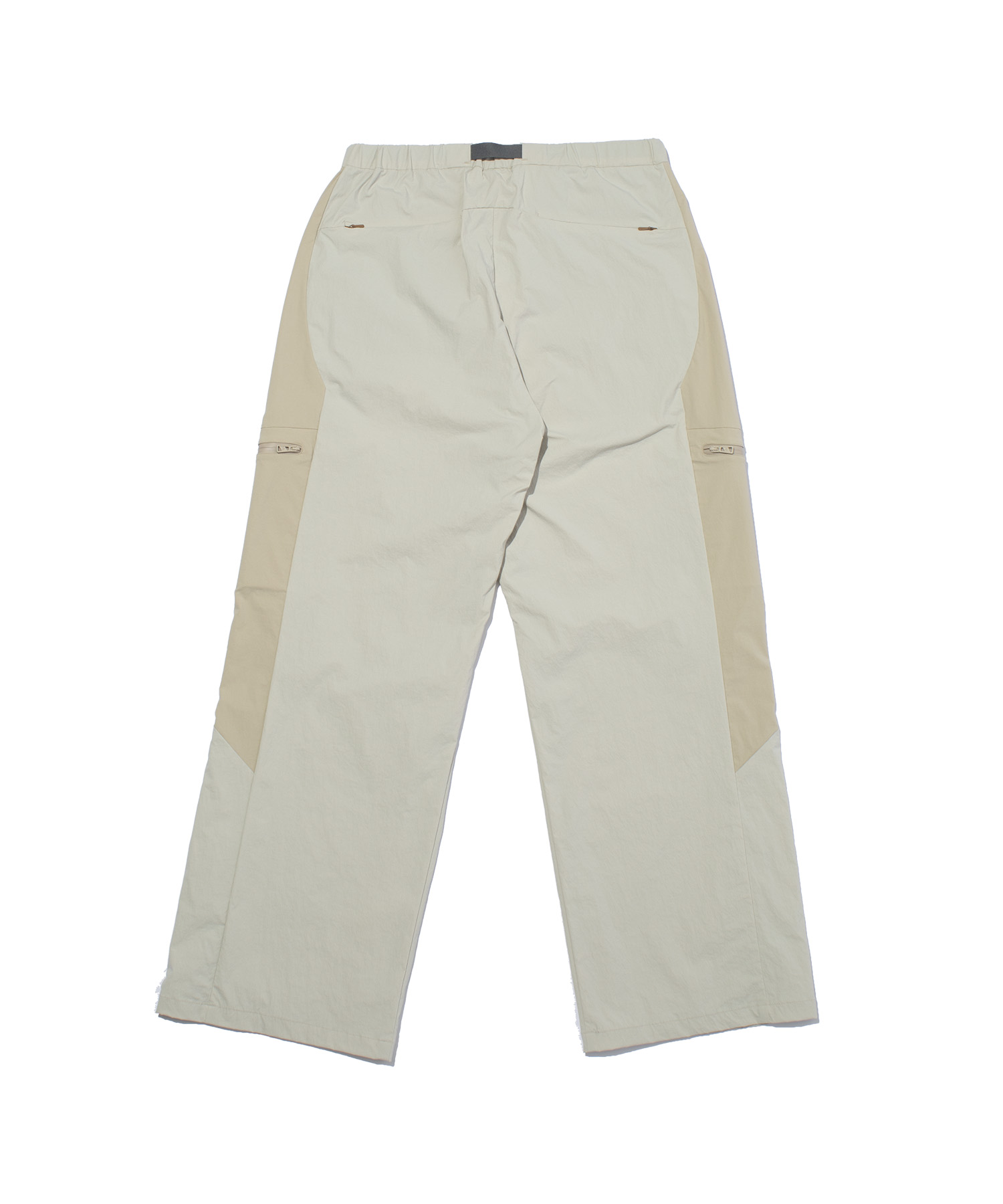 ミニマルな印象を損なうことなく収納力を持たせるため、 コンシールファスナーポケットを配置。 ウエストは内蔵ベルトでフィット感の調整が可能です。