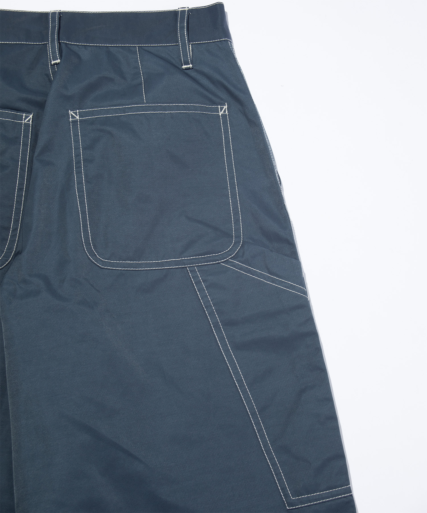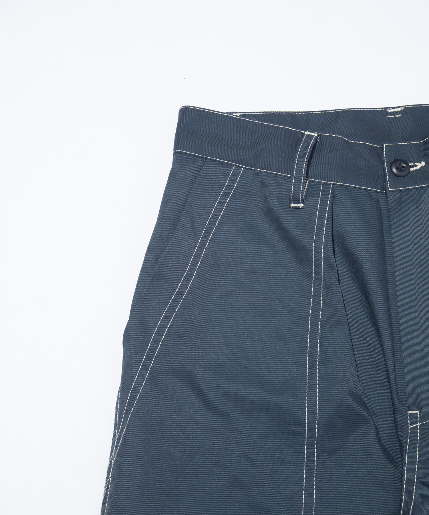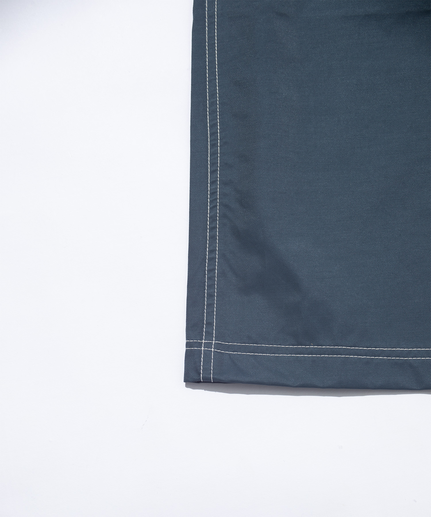 特殊塩縮加工で生地にハリ感と肉感を持たせ、さらに環境配慮型のフッ素フリー撥水加工を施すことで、機能性と風合いを両立した万能パンツに仕上げました。