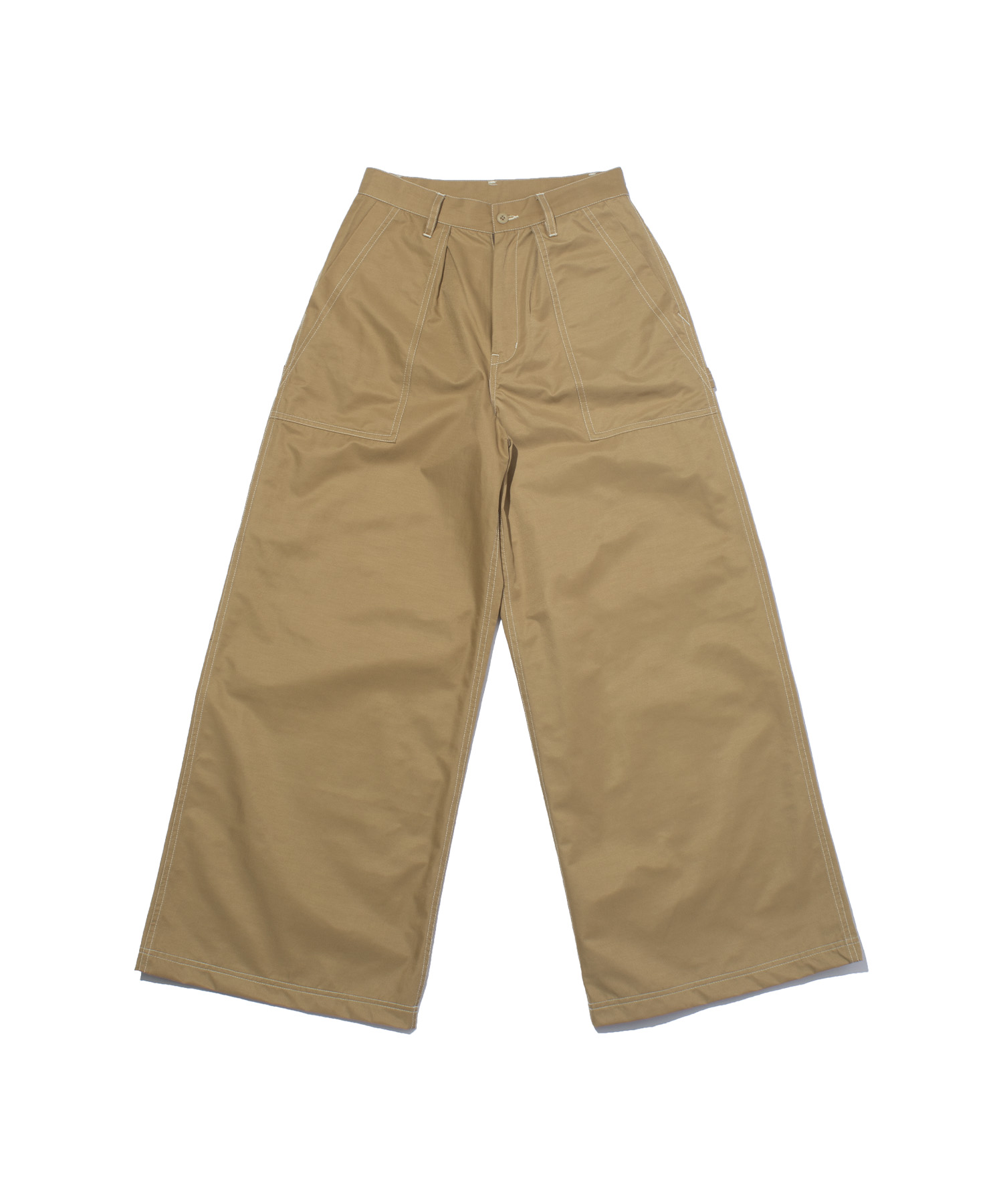 ウエストにはタックを取り、腰回りにゆとりを持たせたストレートなワイドシルエットが、動きやすく快適な履き心地を提供します。