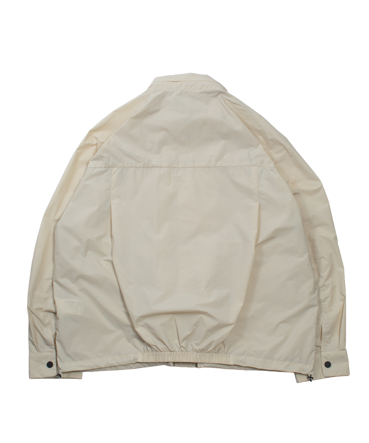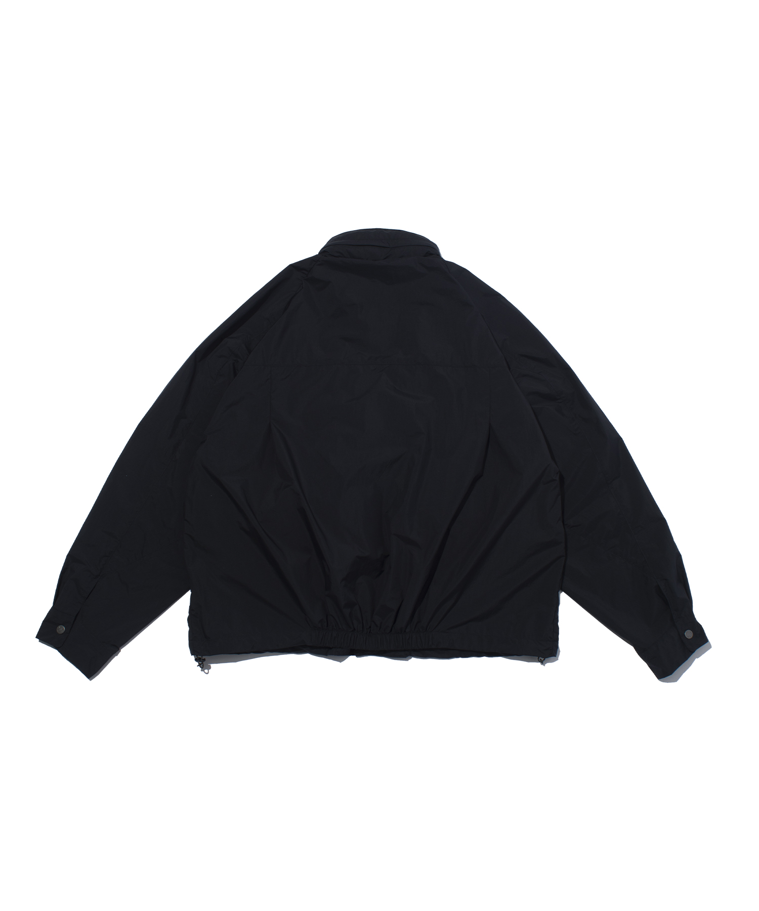 全体的にボックスシルエットで構成され、ラグランスリーブと腰のギャザーにより可動域と快適性を確保。