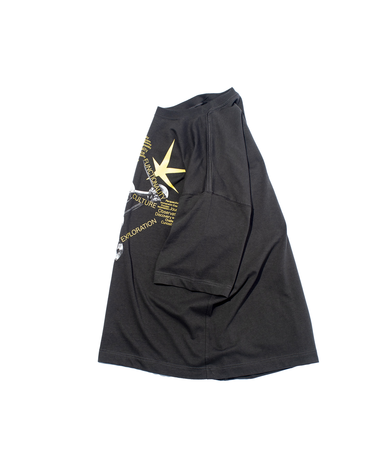 縫製工場で不要になった裁断くずや生地を回収し、再び糸へと生まれ変わらせた100%リサイクルコットンを使用した、F/CE.の理念を体現するグラフィックTシャツ。